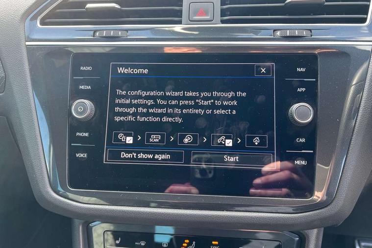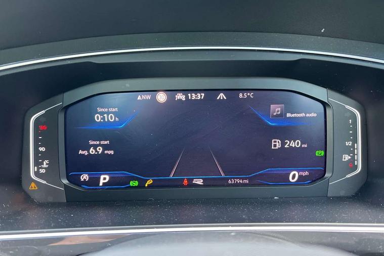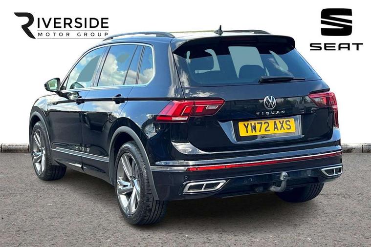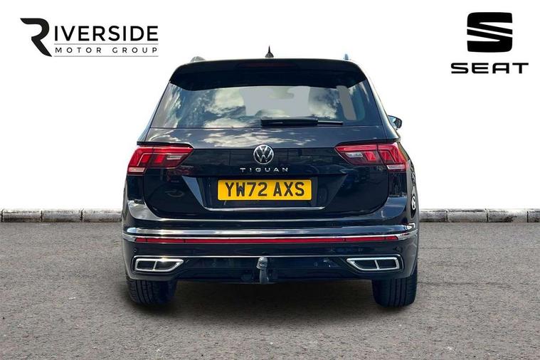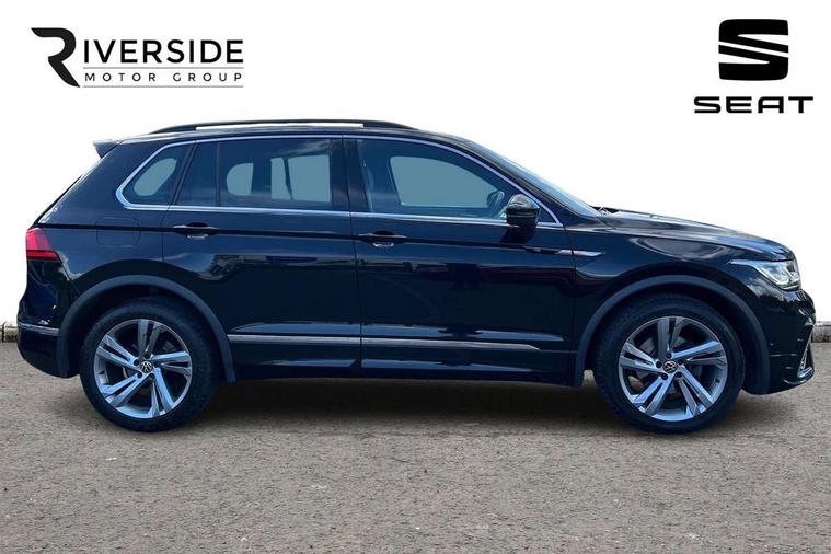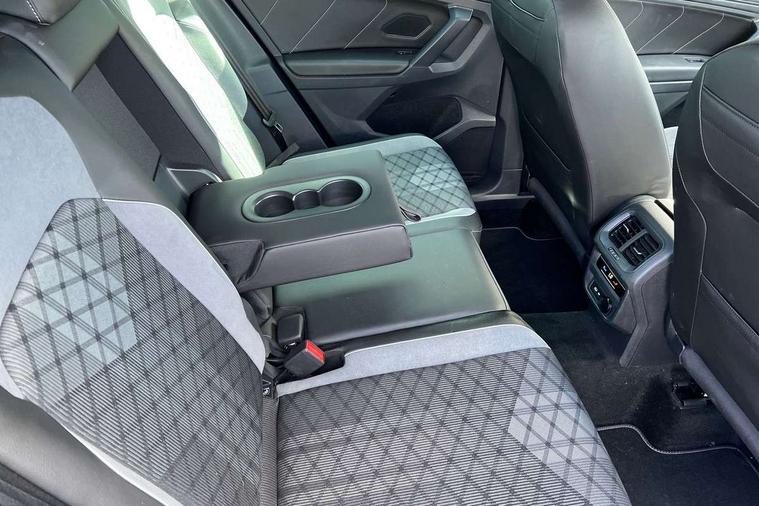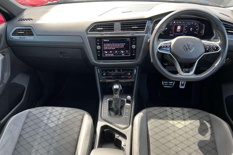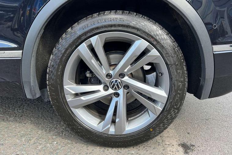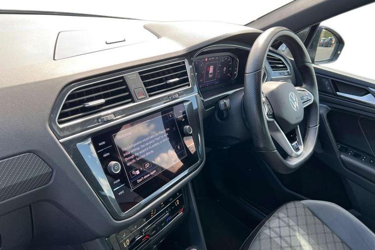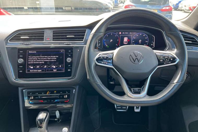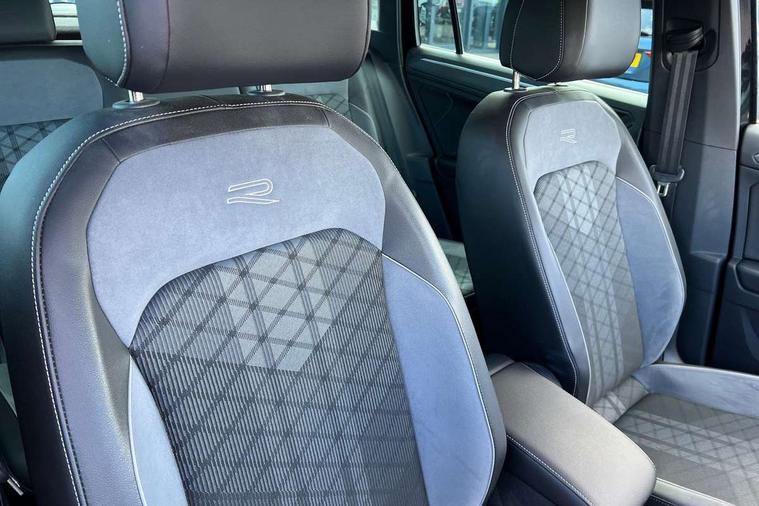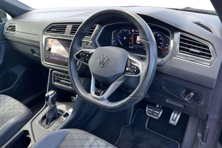 Adaptive cruise control ACC stop and go including speed limiter, App-Connect incl. App-Connect Wireless for Apple CarPlay and Android Auto, Bluetooth phone integration system, Comfort drive travel assist, Digital cockpit pro, Driver alert system, Driver profile selection, Dynamic road sign display, eCall emergency call system, Electromechanical speed sensitive power steering, Emergency assist, Front and rear parking distance sensors, Instrument cluster mph speedometer Great Britain, Lane keeping system Lane Assist, Lights on warning, Multifunction front facing camera, Outside temperature display, Premium multifunction display with multi colour display, Preparation for subsequent activation Navigation feature Discover Media includes Streaming and Internet, Remote control boot opening, Rev counter, Service interval indicator, Speed limit display, Start/stop system with regenerative braking, Tailgate/trunk lid unlocking from outside, Trip computer, Warning sound and light for doors and tailgate open, Battery regeneration during braking, Sports suspension, 8 Speakers, Digital radio reception DAB+, Diversity antenna for FM reception, Radio, Auto dimming interior rear view mirror, Automatic headlight control system, Body colored bumpers in R-Line style, Body colored exterior mirror housings, Body colour door handles, Chrome moldings on the side windows, Coming/leaving home lighting function, Dynamic headlight range control, Front and rear electric windows, Heated rear window, High level 3rd brake light, Laminated safety glass windshield, heat and sound insulating, LED headlamps with LED separate daytime running light and dynamic cornering light, LED rear combination lamps, LED rear number plate lights, License plate carrier in front and rear, Poor weather light and cornering light, Power adjustable, folding and heated door mirrors with surround lighting, front passenger exterior mirror lowering function, Privacy glass for rear side windows and rear window, R Line body kit, R Line side sills, Rain sensor, Rear exhaust tailpipe, Rear fog lamp, Rear side wing doors, Rear spoiler in R style, Rear windscreen washer and wiper with interval delay, Side and rear windows in heat insulating glass, Trailer Stability Programme, Unique R Line badging, Windscreen wipers/ intermittent wipe + 4 position delay, 12V outlet in center console rear and in luggage compartment, 12V outlet in front and tray, 2 LED front reading lights, 2 LED rear reading lights, 3 bench rear seats in 2nd row, 3 rear headrests, Air Care Climatronic 3 zone automatic climate control with enhanced air filter and controls in the rear, Art Velours greyson sports cloth upholstery, Backrest release for left front seat, Black headlining, Brushed stainless steel pedals and footrest, Carpet mats in front and rear with decorative stitching in Gray, Climate control unit rear with touch function, Door and side trim panel in foam film, insert in leatherette, Driver + front passenger lumbar support, Front footwell illumination, Front scuff plates in aluminum with R-Line logo, Front seats head restraints (x-adjustment), Height adjustable front seats, Height/reach adjust steering wheel, Isofix Preparation 2 Rear child seats, Leather gear knob, Rear bench seat asymetrically split folding, longitudinally movable and folding with load-through hatch and center armrest, Remote unlocking for rear seat backrest, Single front passenger seat, Sun visors with illuminated vanity mirrors, Top front comfort seats, Winter pack - Tiguan, 3 point seat belt for centre rear seats, 3 point seat belts with seat belt pretensioners for the outer rear seats, Curtain airbags for front and rear passengers, Driver/Front Passenger airbags, Drivers knee airbag, Electronic parking brake with auto hold, Electronic Stability Control with driver steering recommendation, ABS, ASR, EDL, EDTC and trailer stabilization, Front assist with autonomous emergency braking (for Adaptive Cruise Control ACC up to 130 mph), Front disc brakes, Front passenger airbag deactivation, Front side airbags, Height adjustable front 3 point seatbelts + pretensioners, Manual child proof rear door locks, Pedestrian monitoring system, Proactive passenger protection system in combination with front assist, Rear disc brakes, Two tone horn, Tyre pressure loss indicator, Warning sound and light for front seat belts if unfastened, Warning triangle, Anti theft alarm system with interior monitoring, backup horn and towing protection, Anti theft wheel bolts, Electronic engine immobiliser, Keyless locking and starting system keyless access with safelock, Chrome elements on the mirror switch power window switches and door pulls, Decorative inserts Carbon Gray for dashboard and front door trim panels, Interior door handle in matte chrome, 19" Valencia alloy wheels with AirStop tyres, Tool kit, Tyre mobility kit Includes 12V compressor and tyre sealant,