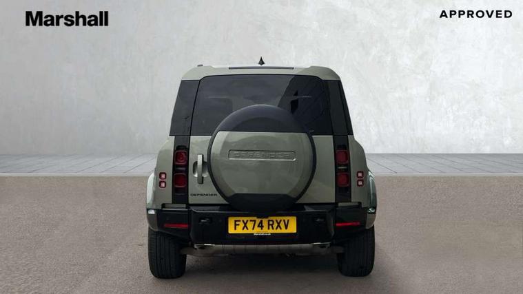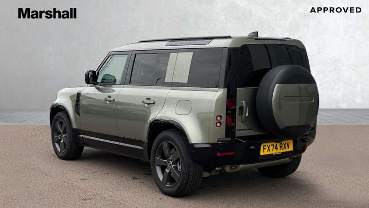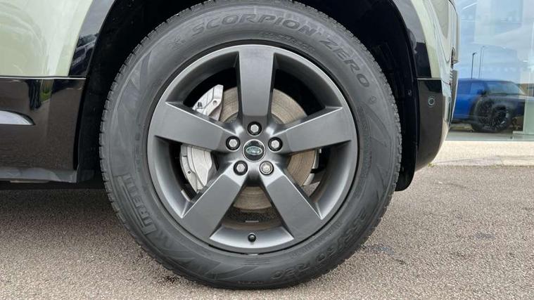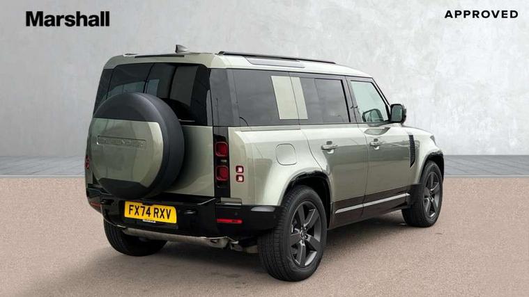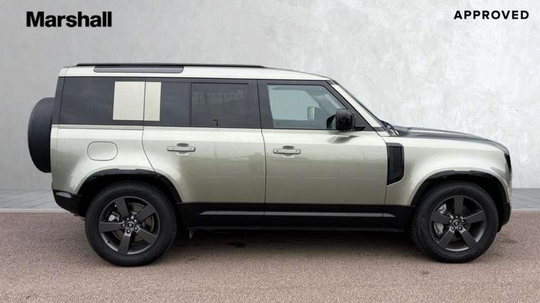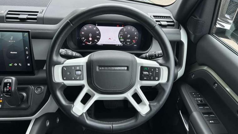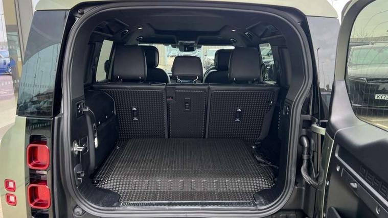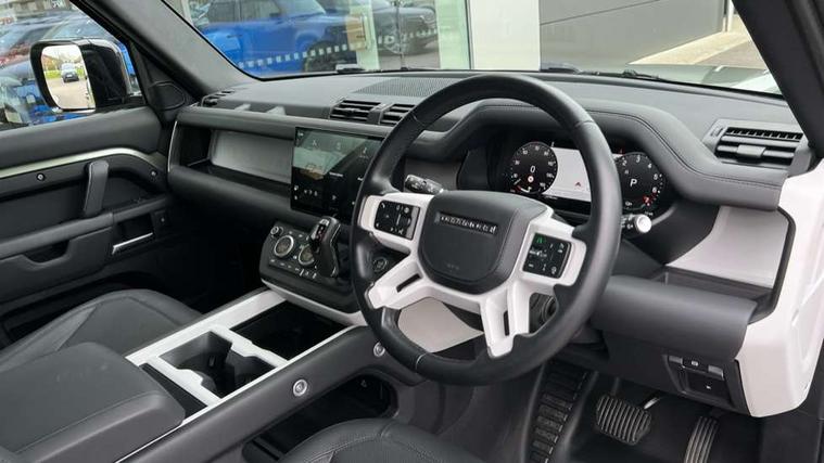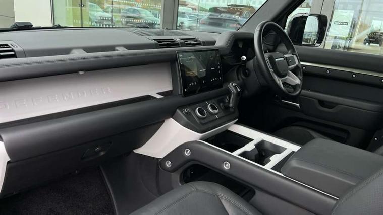 1 x USB-C (power only) & 1 x USB-C (power & data) in Row 1, 2 x USB-C in Row 2, 11.4" touchscreen, 360 degree parking aid, 3D Surround Camera with 360 View, 180 Rear View, Front Traffic Detection, Forward Vehicle Guidance, Tow Hitch Assist and clear sight Ground View, Adaptive cruise control, Android Auto, Apple CarPlay, Blind spot assist, Bluetooth system, Brake pad wear indicator, Clear exit monitor, Connected navigation pro, Driver condition monitor, Electric power assisted steering (EPAS), Interactive driver display, Lane keep assist, Push button start, Rear collision monitor, Rear traffic monitor, Traffic sign recognition with adaptive speed limiter, Trip computer, Wireless device charging, 8 speed automatic transmission, AC/DC charging, Adaptive dynamics, All wheel drive system, Electronic air suspension, Home charging cable mode 2 basic, Public charging cable, Twin speed transfer box, DAB Radio (Digital Audio Broadcasting), Meridian 700w surround sound audio system with 15 speakers, Pivi pro connected, Automatic headlight levelling, Automatic headlights, Black exposed rear recovery eyes, Body coloured bonnet, Centre high mounted stop light, Electric heated/power fold door mirrors with approach lights and auto dimming driver side, Electric windows with one touch open/close and anti-trap, Follow me home lighting, Front fog lights, Heated rear window with timer, Heated windscreen, Illuminated metal treadplates with brand name script, LED tail lights, Matrix LED headlights with signature DRL, Privacy glass, Puddle lights, Rain sensing windscreen wipers, Rear fog lights, Rear side wing doors, Rear wiper, Side hinged tailgate, Sliding panoramic roof, Standard tail door, Trailer stability assist, X-Dynamic badge, 12V power socket in loadspace, 3 seat bench in 2nd row, Alpine lights, Configurable cabin lighting, Durable rubber cabin flooring, Durable rubber loadspace flooring, Electric reach + rake adjustable steering column, Electrically adjustable steering column, Extended leather upgrade, Footwell lights, Front head restraints, Front passenger isofix child seat attachment, Heated steering wheel, Loadspace cover, Loadspace Hook, Multifunction steering wheel, No flat load floor storage, Overhead stowage for sunglasses, Rear headrests, Rear ISOFIX, Rear reading lights, Single front passenger seat, Soft close tail door, Standard seat configuration, Storage glovebox, Sunvisors with illuminated vanity mirrors, Twin front cupholders, Non-smoker package, Online pack with data plan - Defender, 5 x 3 point seatbelts, ABS, Brake hold function, Cornering brake control (CBC), Customer configurable autolock, Driver and passenger airbags, DSC - Dynamic Stability Control, EBD - Electronic brakeforce distribution, Electric parking brake (EPB), Emergency brake assist, Emergency braking, ESP + traction control, Front airbags with passenger seat occupant detector, HDC - Hill descent control, Hill launch assist, Low traction launch, Power operated child locks, Remote for (e-Call, Optimised assistance call, InControl app, Climate, beep and flash and door), RSC - Roll stability control, Seat belt reminder, TPMS (Tyre pressure monitoring system), Alarm, Immobiliser, Intrusion sensor, Keyless entry, Locking wheel nuts, Secure tracker pro,