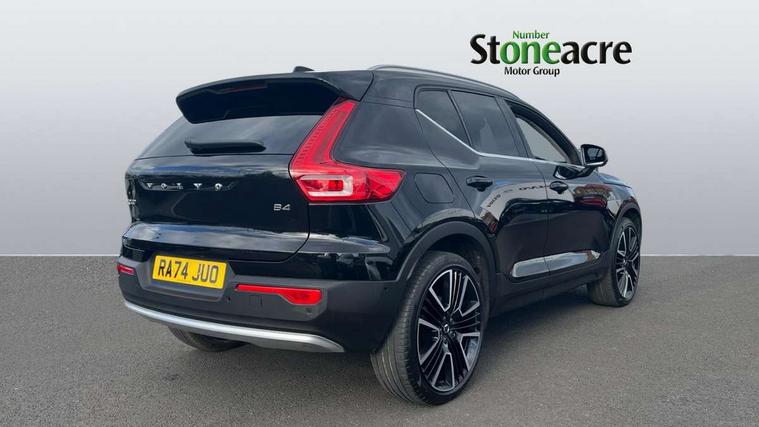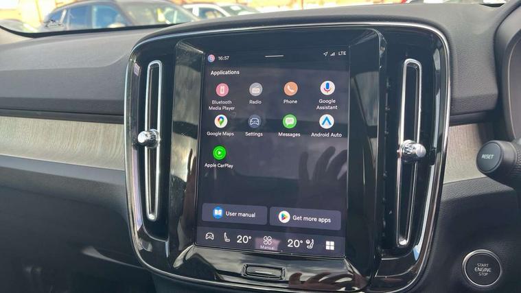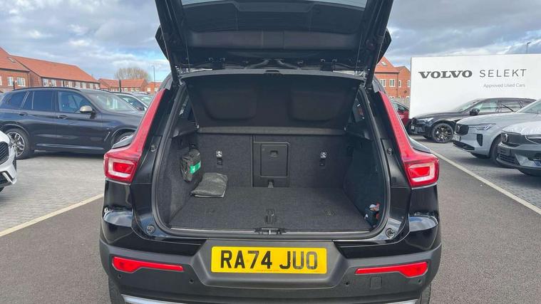 12.3" Progressive Driver Display, 360 degree surround view parking camera with side proximity sensors, 9" centre console portrait touch screen, Adjustable steering wheel force, Android auto (Wired), Apple carplay (wired), Bluetooth handsfree system, Driver alert control, Driver assistance (pilot assist and adaptive cruise control), Driver awareness - Blind spot information system with steer assist, cross traffic alert with autobrake and rear collision warning and mitigation, E-call, Front park assist, Google automotive services - Enabled entertainment apps, navigation with google maps, voice recognition with google assistant, Hands free power tailgate, Intelligent speed assistance, Lane keeping aid, Oncoming Lane Mitigation, Rear park assist, Speed sensitive steering, Volvo cars services with app - Driving journal, engine remote start, remote door locking/unlocking and vehicle dashboard, Wireless/Inductive Mobile Phone Charging, Automatic transmission with start/stop and manual change functions, Dynamic chassis, DAB Digital radio, Premium Sound by Harman Kardon, Dolby Pro Logic II Surround Sound, Dirac Unison, 12 speakers/600W and subwoofer, Steering wheel mounted remote controls, Active bending pixel LED headlights with adaptive shadow technology, Active high beam incorporating daytime running lights, Adaptive brake lights with high level LED brake lights, Auto dimming feature for exterior door mirrors, Auto dimming interior mirror, Automatic headlamp levelling, Dark tinted windows - rear side windows and rear screen, Front aluminium tread plates, Front and rear electric windows, Headlight cleaning system, High gloss black front and rear skid plate, High gloss black front bumper deco, High gloss black mesh front grille with high gloss black surround, High gloss black window trim, Home safe and approach lighting, Integrated roof rails in high gloss black, LED front fog lights with cornering function, Power glass tilt and slide panoramic sunroof with sun curtain, Puddle lights, Rain sensor with automatic windscreen wiper activation, Rear side wing doors, Rear wiper, Roof antenna, Roof spoiler, Visible VIN plate, 12V socket in front tunnel console and luggage compartment, 2-Zone electronic climate control with CleanZone air quality system and pollen filter, 3 seat bench in 2nd row, 3 Spoke tailored steering wheel with chrome trim, 60/40 versatile split folding rear seat, Centre console cupholders and storage, Flexible load floor and grocery bag holder, Floor mats, Front cabin courtesy lights, Front door pocket, front cupholder, ambient front door, rear reading, rear courtesy, instrument panel and tailgate lighting, Front footwell illumination, Front headrests, Front reading lights, Front seat cushion extensions, Front side step illumination (under door), Glovebox bag hook, Heated front seats, Height/reach adjustable steering column, High gloss centre tunnel deco, Illuminated glovebox, Illuminated luggage compartment, Illuminated vanity mirrors + ticket holder, Integrated waste bin, Isofix attachments on outer rear seats, Load cover, Load protection net, Multi directional lumbar support for driver and passenger seat, Power driver seat with memory + exterior mirrors memory, Power folding rear headrests, Power passenger seat, Rear armrest with cupholders, Single front passenger seat, Underfloor cargo storage, Climate pack without heated front seats - XC40, 3x3 point rear seatbelts, City safety with steering support with Pedestrian + cyclist + front collision warning with full auto brake and rear auto brake, Driver and passenger airbags, Drivers knee airbag, Electronic parking brake with auto hold, First aid kit, Front and outer rear seatbelt reminder and pretensioners, Front seats SIPS airbags, Hill descent control, Hill start assist, Inflatable curtain, Passenger airbag cut-off device, Power child locks on rear doors, Road sign information display, Run off Road Protection, SIPS (Side Impact Protection System), Slippery road and hazard light alert, Stability and Traction Control with Spin control, Engine Drag Control and Corner Traction Control, Tyre pressure monitoring system, Vehicle deceleration control with Anti-lock Brake System, Electronic Brake Distribution and Emergency Brake Assist, Warning triangle, WHIPS whiplash protection system - front, 2 x Key integrated remote control central locking including with deadlocking system and auto open/close windows and sunroof, Anti-theft alarm including immobiliser/volume sensor + level sensor, Keyless drive includes keyless entry and keyless start, Locking wheel nuts,
