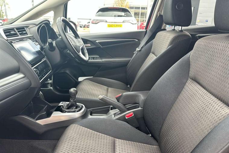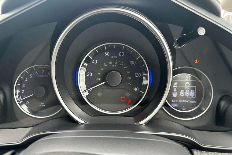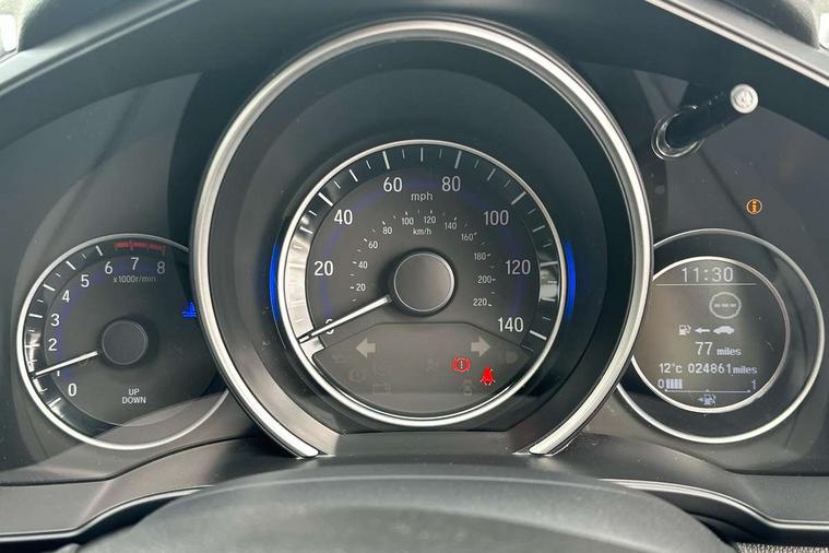 Adaptive motion for electric power steering, Bluetooth hands free telephone connection, Connect Navigation with 7" touchscreen, Digital Radio, Radio/CD/Mp3, Aha app integration, internet browsing, Cruise control with speed limiter, Emergency stop signalling system, Forward collision warning, Front and rear parking sensors, Idle stop, Intelligent speed assist, Lane departure warning system, Multi-information display, Rear view camera, Traffic sign recognition, Vehicle stability assist, 'Shark fin' mobile antenna, 2x USB and HDMI, 6 speakers, Steering wheel mounted audio controls, Automatic coming/leaving home lighting function, Automatic headlights with dusk sensor, Automatic rain sensing wipers, Body colour door handles, Body colour door mirrors, Body coloured bumpers, Drivers one touch power window up/down, Electric heated + adjustable door mirrors, Electrically retractable door mirrors, Front and rear power windows, Front fog lights, High beam assist, LED daytime running lights, LED Headlights, LED high level brake lights, One touch passenger power window up/down, Rear privacy glass, Rear wiper with intermittent and reverse linked, Automatic climate controlled air conditioning, Centre console accessory socket, Cloth upholstery, Driver seat back pocket, Driver's seat height adjustment, Driver/passenger sunvisors and vanity mirrors, Front accessory power socket, Front map lights, Front/rear courtesy lights, Gear shift indicator, Height adjustable passenger seat, Isofix child seat restraint mechanism, Leather gear knob, Leather steering wheel, Luggage area under floor storage box, Magic seat flexibility system, Passenger seat back pocket, Rear head restraints, Rear parcel shelf, Reclining rear seats, Tilt/telescopic adjustable steering wheel, Trunk light, 3x3 point rear seatbelts, ABS/EBD, Active city braking, Anti-whiplash front headrests, Brake assist function, Deflation detection system, Driver's side SRS airbag, Dual front SRS airbags, Front and rear curtain airbags, Front and rear seat belt with emergency locking retractor, Front side airbags, Hill start assist, Passenger SRS airbag cut-off device, Honda super locks, Immobiliser, Security alarm, Smart entry + Smart start, 16" alloy wheels, Tyre repair kit,