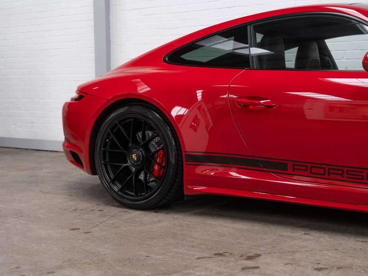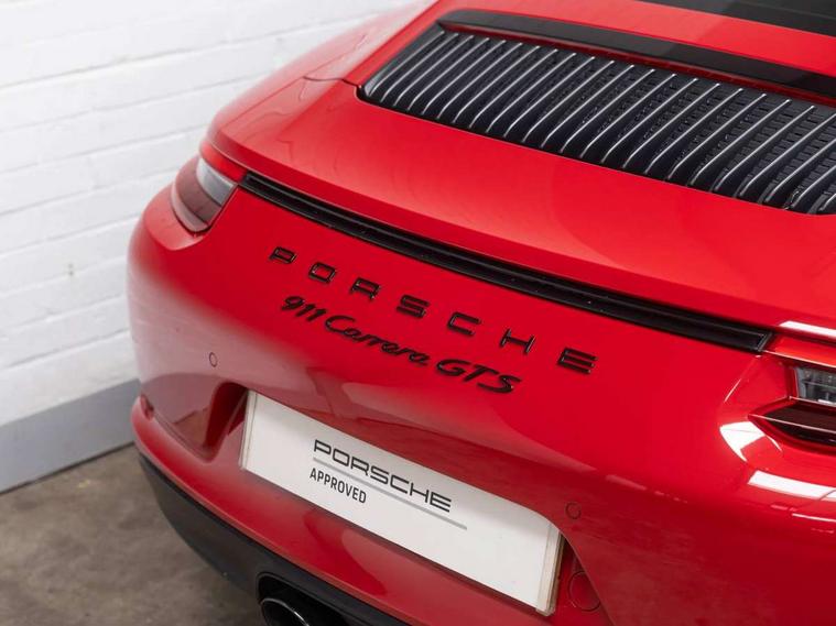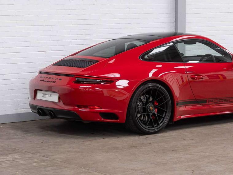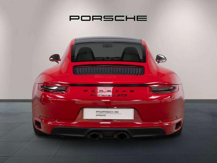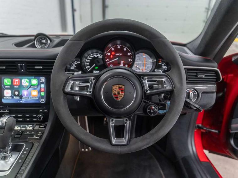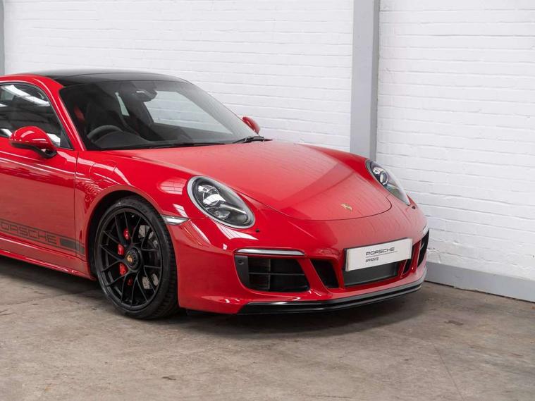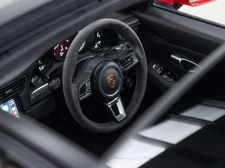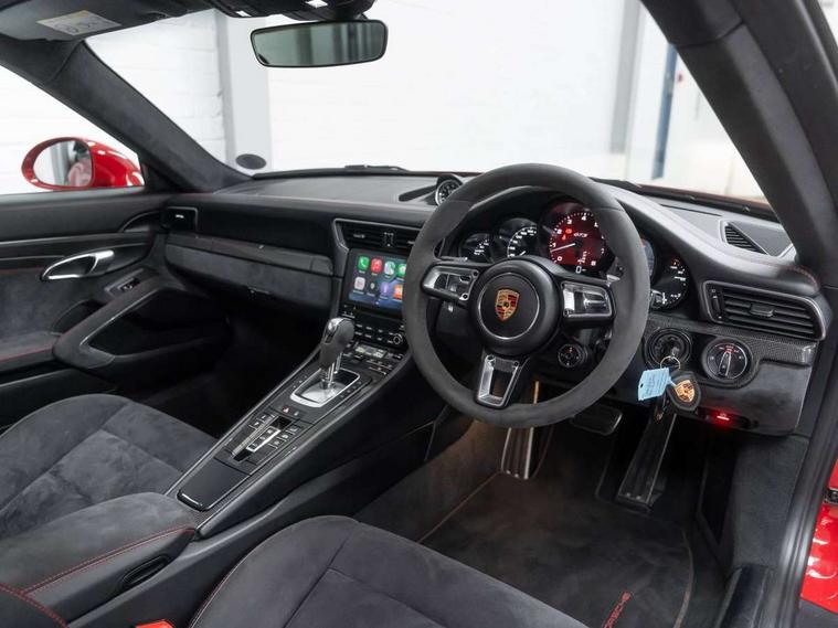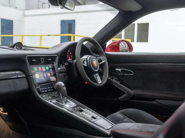 Black rev counter, Instrument cluster with high-resolution 4.6-inch TFT colour display, Mobile telephone preparation, On board computer, PCM voice control, Porsche communication management including navigation, Telephone module for PCM, Porsche stability management (PSM), Porsche TORQUE Vectoring (PTV) with mechanical rear differential lock, 2 USB ports, Auxiliary input socket, Connect Plus with Apple CarPlay, wireless internet access, Carfinder, Remote Vehicle Status and Remote Services, DAB Digital radio, SD card slot, Air blades with active cooling air flaps, Aspherical driver's exterior mirror, Automatic headlamp levelling, Automatic headlights, Automatically extending rear boot spoiler, Body coloured bumpers, Dynamic cornering light with headlamp levelling and speed sensitive driving light control, Electric windows + one touch open/close + door seal protection function, Electrically adjustable and heated door mirrors, Front lip spoiler, Green tinted heat insulating glass, Headlight range control, Headlight washers, Heated rear window, Heated windscreen washers, LED daytime running lights, Sports exhaust system, Tinted LED tail lights, Trim strips in high gloss finish, Welcome home function, Windscreen with grey top tint, 12V socket in front passenger footwell, 2 in-dash cupholders above glove compartment, Air quality sensor, Air recirculation system, Alcantara centre console main storage compartment, Alcantara door handle, Alcantara door panel armrest, Alcantara roof lining, Alcantara seat centre panels, Alcantara steering wheel rim, Centre console storage, Clothes hooks on front seat backrests, Continuously variable dimming interior light, Dual zone automatic climate control, Footwell illumination, Glovebox illumination, Ignition Lock illumination, Illuminated vanity mirrors, Illumination of luggage compartment, Interior orientation lighting, Isofix child seat preparation, LED reading lights, Manual height/reach adjust steering wheel, Pollen/active carbon filters, Rear centre armrest, Split folding rear seats, Sport design steering wheel, Steering wheel gearshift paddles, Storage compartments in doors, Sport chrono package - 911 [991] PDK, ABS, ASR + ABD, Driver/Front Passenger airbags, Electronic parking brake, Front head airbags, Front passenger airbag deactivation, Front seat thorax airbags, Front seatbelt pretensioners with force limiters, Height adjustable front seatbelts, POSIP, Red brake calipers, Tyre pressure monitoring system, Alarm system with interior radar surveillance, Anti-theft wheel bolts, Porsche vehicle tracking system (VTS), Remote control central locking, Transponder engine immobiliser, Brushed aluminium dash trim and centre console inserts, Sealing compound and compressor kit,