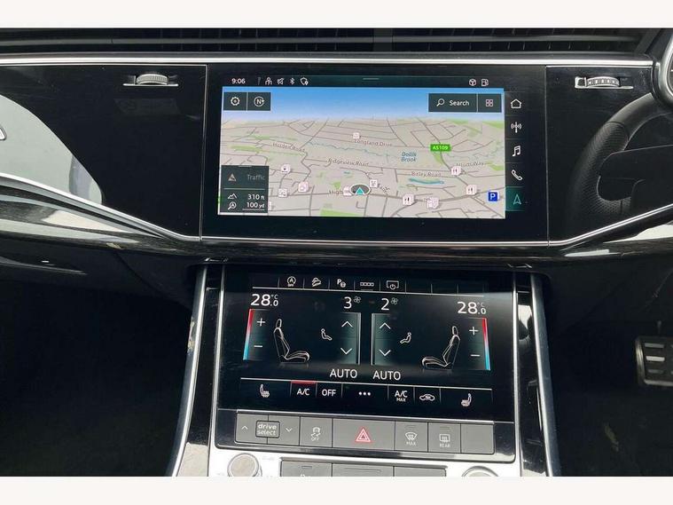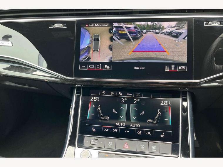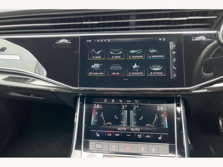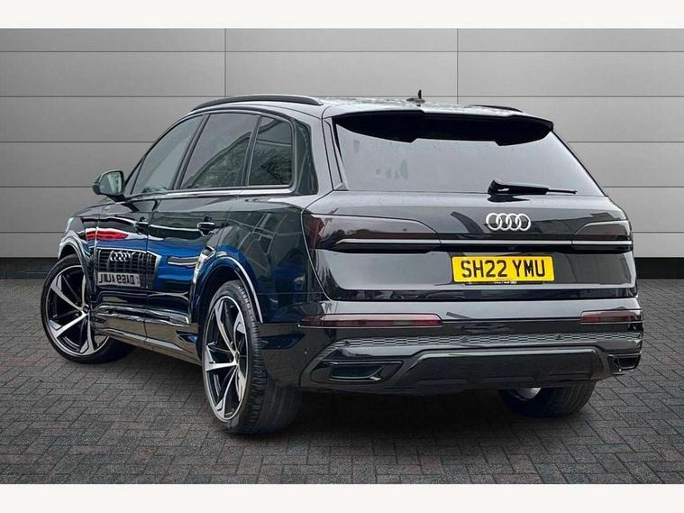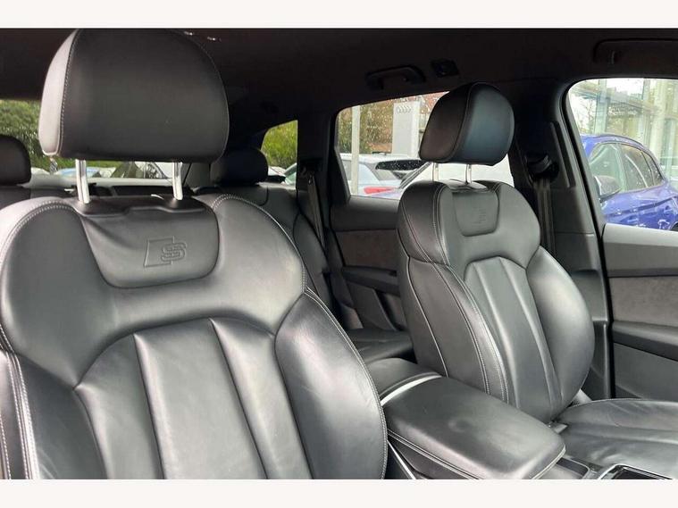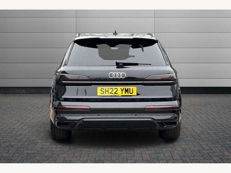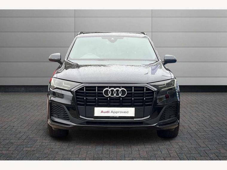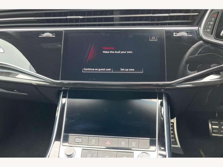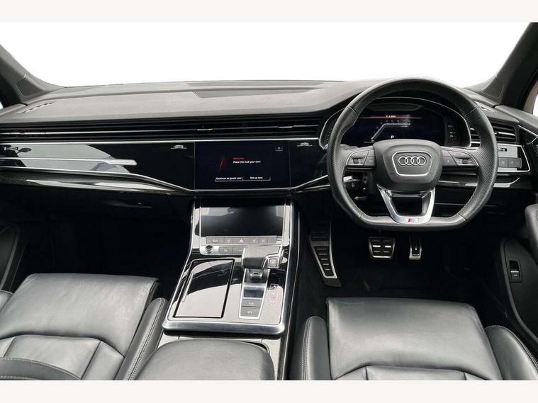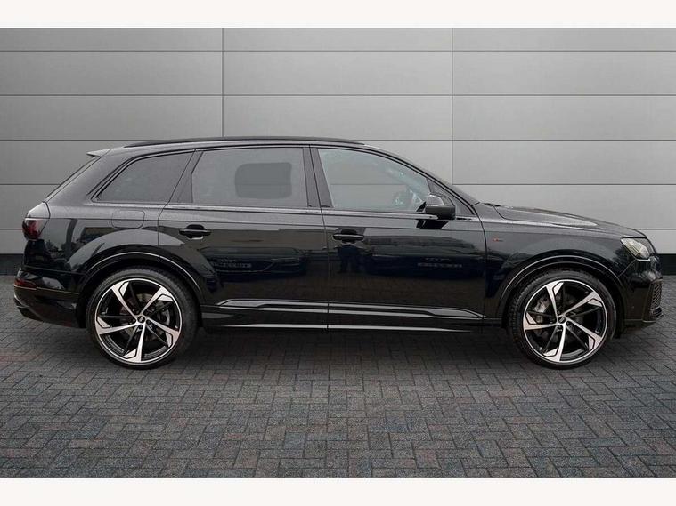 Audi connect safety and service (e-call), Audi connect with Amazon Alexa Integration, Audi drive select (Auto, Comfort, Dynamic, Efficiency, Individual, Off-road and All road), Bluetooth interface, Camera based traffic sign recognition, Electromechanical steering, MMI navigation plus with MMI touch screens includes 10.1" and 8.6" screens with haptic feedback, Natural voice recognition, Parking system plus with 360 degree display (front, rear and side sensors) - acoustic and visual park assist system, Power operated tailgate, Rear view camera, Smartphone interface includes wireless Apple carplay/Android Auto, Start/stop system, 48V Mild hybrid technology, 85 litre fuel tank, Adaptive air sports suspension, Quattro all wheel drive with self locking centre differential, Audi music interface - front 2 USB-C ports with charger and data functions, Audi sound system with 6 channel amplifier, 180 watt amplifying capacity and 10 loudspeakers including subwoofer, DAB digital radio module, 3rd brake light, Audi matrix LED headlights with dynamic front and rear indicators, Auto dimming frameless rear view mirror, Black roof rails, Bumpers in contrast paint scandium grey finish includes door trim and wheel arch trim strips, inlays in door strip contain quattro embossing, Electrically adj heated/folding + automatically dimming exterior mirrors with memory + automatic kerb side function for passenger side exterior mirror, Heat insulating glass in windshield, Integrated LED indications in door mirrors, LED daytime running lights, LED rear tail lights, Privacy glass - dark tinted rear and rear side windows from B-pillar backwards, Rear side wing doors, Rear wiper, 2 seat bench in 3rd row, 3 seat bench in 2nd row, 4 zone deluxe automatic climate control, 7 seat layout with ISOFIX points for the front passenger seat and rear passenger seat, Black cloth headlining, Comfort front centre armrest, Electric adjustable front seat with 4 way lumbar support, driver memory functionality, Folding rear seats, Front head restraints, Front/rear floor mats, Heated front seats, Illuminated door sill trims with S logo, LED interior ambient lighting, Luggage compartment cover, Luggage compartment sill protection in stainless steel, Rear head restraints, Single front passenger seat, Stainless steel pedals, Sunvisors with illuminated vanity mirrors, Titanium black styling pack - Q7/SQ7, 3 point seatbelts on all rear seats, Audi pre sense front, Child locks on rear doors, Driver and front passenger, front side and curtain airbags, Electromechanical parking brake, Electronic Stabilisation Control (ESC) including ABS, ASR and EDL, Extended pedestrian protection measures, Hill hold assist, Seatbelt monitoring, Tyre pressure loss indicator, Warning triangle and first aid kit, Anti theft alarm, Anti-theft wheel bolts and wheel loosening detection, Keyless Go, Remote central locking, Polished oak trim with grey finish inlay, Tool kit, Tyre repair kit,