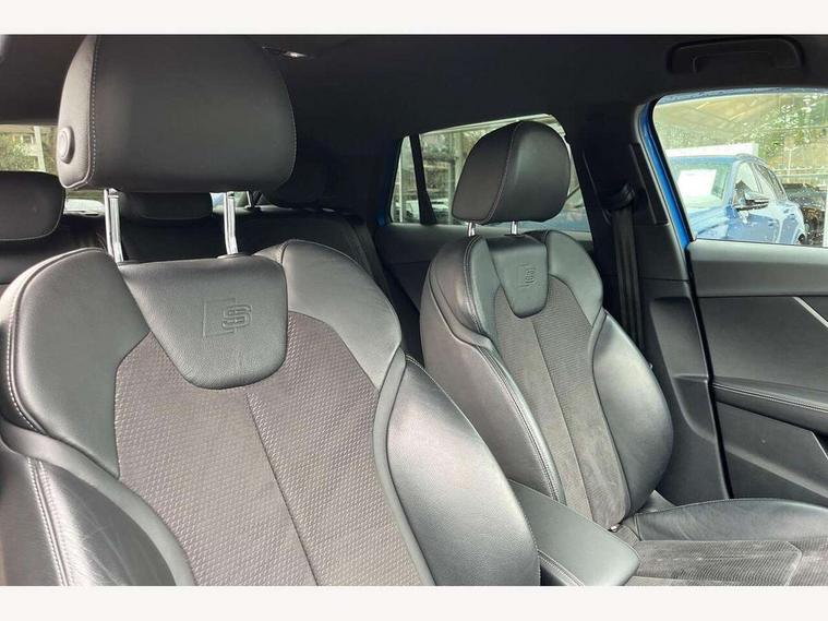Audi drive select, Audi smartphone interface, Automatic start/stop system with recuperation, Bluetooth interface includes bluetooth audio streaming, Cruise control, Driver's information system - 3.5" colour display, Instrument dials with S logo, MMI SD card integrated nav with 3D map display, dynamic route guidance with TMC, MMI search, natural voice recognition and myAudi special destinations, Power operated tailgate, Progressive steering, Service interval indicator, S sports suspension with lowered by 20mm, 2 x SDXC card reader, Audi music interface - apple iPod, apple iPhone, USB storage media, compatible MP3 players, 2 x USB charging points and 1 x Aux-in, CD Drive, DAB digital radio and AM/FM radio, MMI radio plus with 7" colour MMI screen and MMI controller, Black window trims, Electrically adjustable and heated door mirrors with integrated LED side indicators, Front and rear electric windows, Front windscreen with grey tinted sunband, Headlight washers, Interior mirror, LED headlights with LED rear lights + dynamic rear indicators, LED indicator lights, Manual folding door mirrors, Rain and light sensors, Rear wiper, S design body styling - underbody protection, SQ2 - front bumper with S design inlets, rear diffuser in silver and roof spoiler, S design radiator grille with horizontal struts and SQ2 logo, S specific dual branch tailpipes on left and right in chrome finish, 3 spoke flat bottomed high multi-function leather sport steering wheel with gearshift paddles, 60/40 split folding rear seat bench, Black cloth headlining, Dual zone electronic climate control, Floor mats with contrast stitching, Front centre armrest, Front headrests, Front sport seats with S embossed logo, Height/reach adjust steering wheel, Illuminated door sill trims with S logo, ISOFIX child seat mounting for front passenger with airbag deactivation and outer rear seat including top tether attachment point for outer rear seats, Manual seat adjustment including seat height adjustment for front seats, Stainless steel pedals, Storage compartments - Glovebox, cupholder compartment in centre console, storage compartment in rear centre console, front and rear door pockets, Three rear headrests, Extended interior upholstery pack - Q2, Non smoking pack - Q2, 3x3 point rear seatbelts, 6 airbags - Front, curtain and front side airbags, Electromechanical parking brake, Electronic stabilisation control including ABS, ASR and EDL, Extended and proactive pedestrian protection, Hill hold assist, Multi collision brake assist, Pre-sense front with pedestrian recognition, S model enhanced braking system, Seatbelt monitoring, Tyre pressure warning light, Warning triangle and first aid kit, Anti theft alarm, Anti theft wheel bolts, Central locking system with remote control key, Electronically operated child locks, Aluminium interior element,