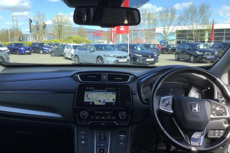Adaptive cruise control, Agile handling assist, BLIS (Blind Spot Information System) with dual power heated blind spot mirrors, Bluetooth hands free telephone connection, E-call, Economy mode, Electric power steering, Emergency stop signalling system, Forward collision warning, Front parking sensors, Hands free tailgate, Head up Display, Honda CONNECT with GARMIN Navigation + 7" touchscreen, DAB radio, Apple CarPlay, Android Auto, Aha app integration and internet browsing, Intelligent multi info display, Lane departure warning system, Lane keep assist system, Low speed following, Rear parking sensors, Rear view camera, Road departure mitigation, Speed limiter, Traffic sign recognition, Wireless charging, Drive mode (Econ, Sport, EV), Vehicle stability assist, 2 USB sockets in rear, 2x USB sockets in front, 9 speakers, DAB Digital radio, Dashboard centre speaker, Front tweeters, Steering wheel mounted controls, Subwoofer, Aspheric door mirrors, Auto dimming rear view mirror, Auto wipers, Automatic headlights with dusk sensor, Body colour bumpers, Body colour door handles, Body colour door mirrors, Chrome grille, Cornering light, Door mirrors tilt when reversing, Electric front windows/one touch facility, Electric rear windows + one touch facility, Electrically adjustable and heated door mirrors, Electrically retractable door mirrors, Front LED Indicator lights, Front windscreen de-icer, High beam assist, LED daytime running lights, LED front fog lights, LED Headlights, LED rear lights, Panoramic opening glass sunroof, Rain sensor, Rear privacy glass, Rear side wing doors, Rear wiper, Roof rails, Shark fin roof aerial, Tailgate spoiler, Third brake light, Welcome home function, 3 seat bench in 2nd row, 60/40 split folding rear seat, 8 way electrically adjustable drivers seat + mirror memory, Accessory sockets, Ambient interior lighting, Ambient light in roof, AWD emblem rear, Cargo hooks, Courtesy lights, Driver's electric adjustable lumbar support, Driver/passenger front seatback pockets, Driver/passenger sunvisors with illuminated vanity mirrors, Dual zone automatic climate control, Electric lumbar adjustment on passenger's seat, Footwell ambient lighting, Front centre armrest, Front map lights, Front passenger seat height adjust, Heated front seats, Heated rear seats, Heated steering wheel, Hybrid emblem, Illuminated glovebox, Instrument panel with garnish wood film, Isofix child seat preparation, Leather steering wheel, Leather upholstery, Paddle shift controls, Rear air vents, Rear centre armrest, Rear headrests, Rear reading lights, Silver interior door handles, Silver interior panels, Single front passenger seat, Sunglasses holder with mirror, Tilt/telescopic adjustable steering wheel, Tonneau cover, Trunk light, 5 x 3 point seatbelts, ABS/EBD, Anti-whiplash front headrests, Brake assist function, Collision mitigation braking system, Deflation detection system, Driver airbag, Electronic parking brake with auto hold, Front and rear curtain airbags, Front and rear seat belts with emergency locking retractor (ELR), Front centre airbag, Front passenger airbag, Front side airbags, Hill start assist, Manual child lock in rear doors, Passenger airbag deactivate switch, Honda super locks, Immobiliser, Security alarm, Selectable door unlock, Smart entry + Smart start, Ultrasonic security sensor, Tyre repair kit,