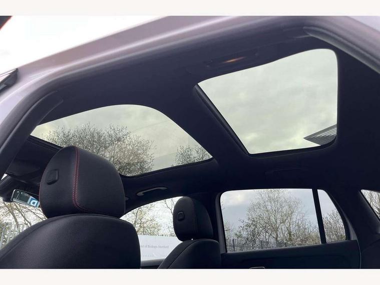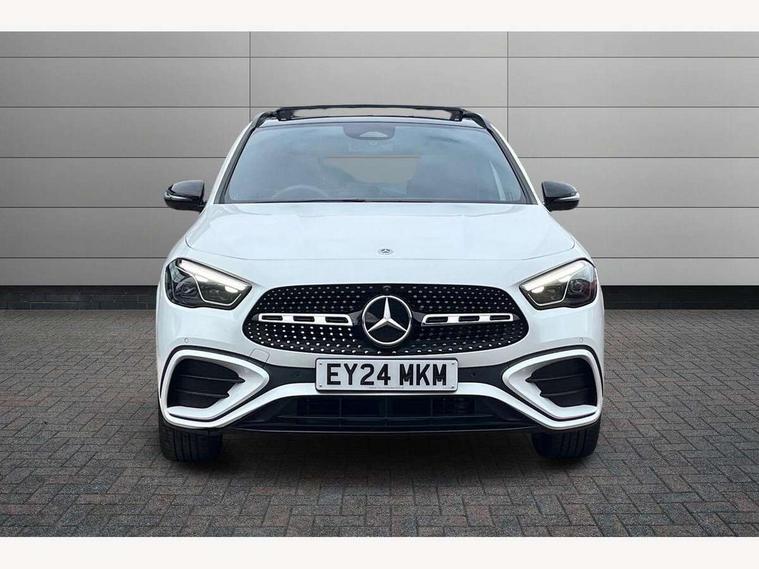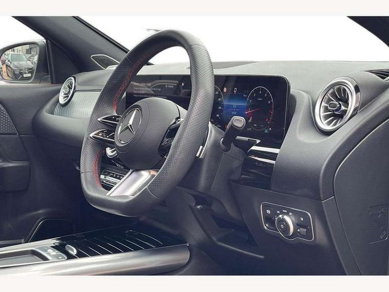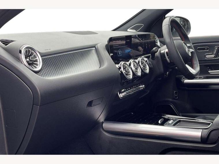 10.25 inch touchscreen central media display, 10.25" Digital instrument cluster display screen, Attention assist, Direct steering, DYNAMIC SELECT with a choice of driving modes (ECO, Comfort, Sport and Individual), ECO start/stop function, Fluid level warning indicator for fuel, oil, coolant and washer fluid, Hard-disk navigation, Hey Mercedes Voice activation, Lamp failure indicator, Lane keeping assist (LKA), MBUX augmented reality for navigation, Mercedes me connect including emergency call system, accident recovery, breakdown and maintenance management, Mercedes me remote services, Multi function trip computer, Outside temperature gauge, Owners manual and service booklet in English, Pre-installation of private car share, Radio aerial integrated into front and rear windshields, Service indicator (ASSYST), Smartphone integration with Apple CarPlay and Android auto, Status display for rear seat belts in instrument cluster, Traffic sign assist, Wireless charging, Rear axle multi-link, Bluetooth connectivity including audio streaming, Burmester surround sound system, DAB Digital radio, MBUX multimedia system, Media interface, Pre installation for Mercedes Benz Link, Adaptive brake lights, Aerial for GPS, AMG front apron with front splitter in the colour of the vehicle with chrome trim element, AMG rear apron with visible tailpipe trim and chrome trim element, AMG specific/dual flow exhaust pipes in chrome (non-functional), Automatic headlamp activation, Beltline trim and window line trim strip in high gloss black, Black grained side sill trim with chrome inlay, Black roof rails, Body coloured door handles with chrome insert for keyless entry, Car wash function, Dark privacy glass from B-pillar backwards, Electric front windows, Electric rear windows, Electrically adjustable and heated door mirrors with integrated LED indicators, Exhaust system with 2 Visible tailpipe trim elements and rear apron with trim in chrome, Heat insulating dark tinted glass, Heated glass rear windscreen + timer control, Heated windscreen wash system, Illuminated door sill panels with Mercedes-Benz lettering, Interior mirror with black reading lamps and frameless, LED daytime running lights, LED tail lights, LED third brake light, Multibeam LED headlamps with adaptive highbeam assist and cornering function, Panoramic sunroof, Radiator diamond grille with chrome pins, central Mercedes star, single louvre in high-gloss black with chrome inserts+highlights in high-gloss black, Rain sensor windscreen wipers, Rear fog lights, Rear side wing doors, Rear wiper, Roof spoiler, Wheel arch liners in the colour of the vehicle, 12V power socket in centre console, 3 seat bench in 2nd row, 3 spoke flat bottom multifunction nappa leather steering wheel, 40:20:40 split folding rear seat backrests, Adjustable head restraints, Air conditioning - air vents with silver chrome surround, Air conditioning - Two zone thermotronic luxury automatic climate control with display, AMG floor mats, Artico man-made leather/Microcut microfibre upholstery with red contrast stitching, Auto Mercedes-Benz child seat recognition sensor, Black roof lining, Courtesy light in boot, Electrically adjustable front memory seats with four way lumbar support, Front centre armrest with stowage, Galvanished gear shift paddles on steering wheel in silver chrome, Heated front seats, Illuminated glovebox, Interior lighting - 64 colour Ambient lighting, Luggage net on driver/front passenger seat backrest, Manually height and reach adjustable steering column, Single front passenger seat, Sports pedals in brushed stainless steel with black rubber studs, Sports seats, Sports steering wheel, Stowage compartment in centre console, Stowage compartment with retractable cover, Sunvisors with illuminated vanity mirrors, Twin front cup holders, Two outer rear seat isofix and top tether child seat fixing points, Comfort seat pack - GLA Class, Interior lighting with light and sight pack - GLA, Keyless go comfort package - GLA, Mirror pack - GLA Class, Night package - GLA, Parking package with 360-degree camera - GLA, USB package plus - GLA, 3 rear 3 point seatbelts, ABS with Brake Assist, Active bonnet pedestrain safety measure which detects an impact and raises bonnet by 65mm, Adaptive brake assist with hold function and hill start assist, Bonnet with power domes, Brake pad wear warning indicator, Childproof locks manually operated for rear doors and electrically operated for rear power windows, Crash responsive emergency lighting, Driver and passenger head and side airbags, Drivers knee airbag, Dual stage driver/passenger airbags, Electronic parking brake, ESP curve dynamic assist, ESP with ASR, Exit warning, Front and rear seatbelt reminder, Front brake callipers with Mercedes Benz logo lettering on front, Front brake discs internally ventilated and perforated, Front passenger seat occupancy sensor, Sports braking system, Tyre pressure monitoring system, Warning triangle and first aid kit, Window airbags, Alarm system with immobiliser and interior protection -Thatcham category 1, Guard 360 degree vehicle protection, Keyless Go starting function, Remote central locking and crash sensor with emergency opening function, Vehicle key with decorative surround in chrome, Black seatbelts, Star pattern trim illuminated, 20" AMG multi spoke light alloy wheels aerodynamically optimised and painted in black with a high-sheen rim flange RVT, Summer tyres, Tirefit tyre sealant kit,