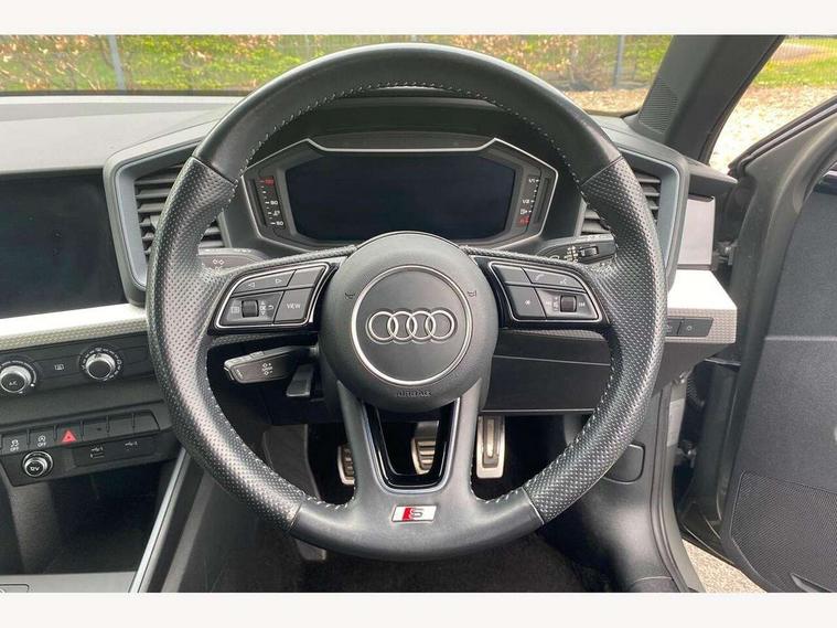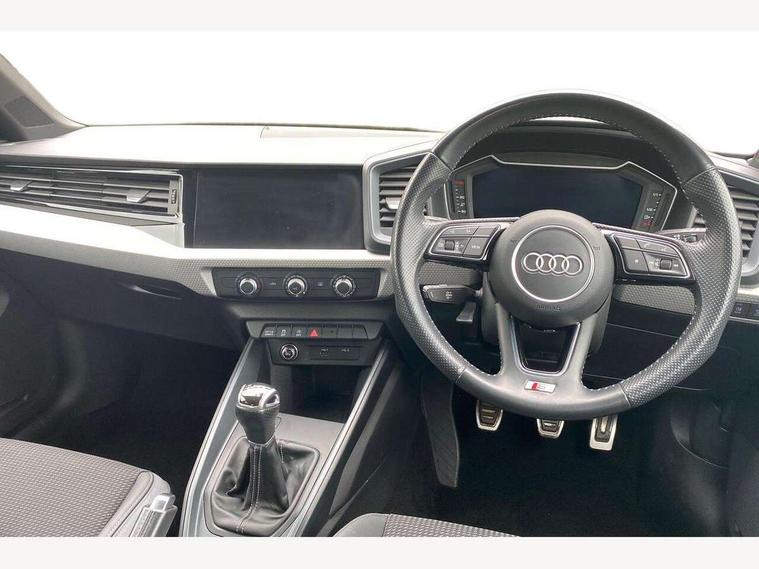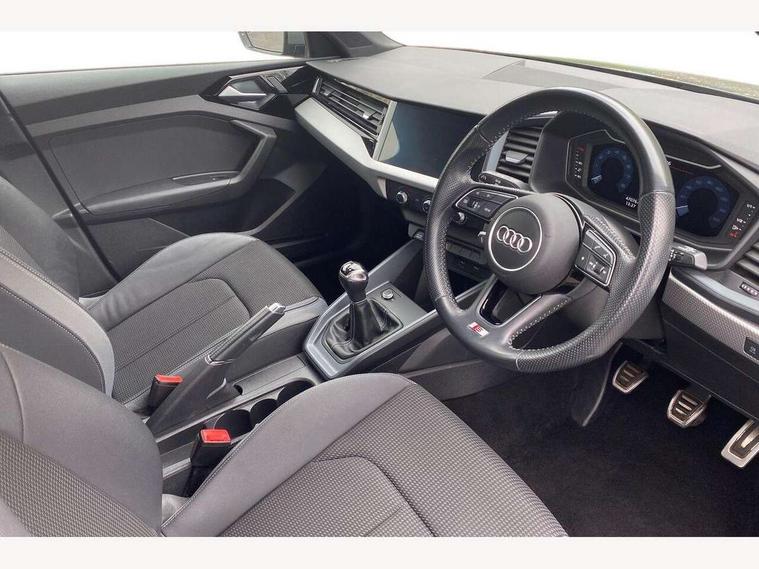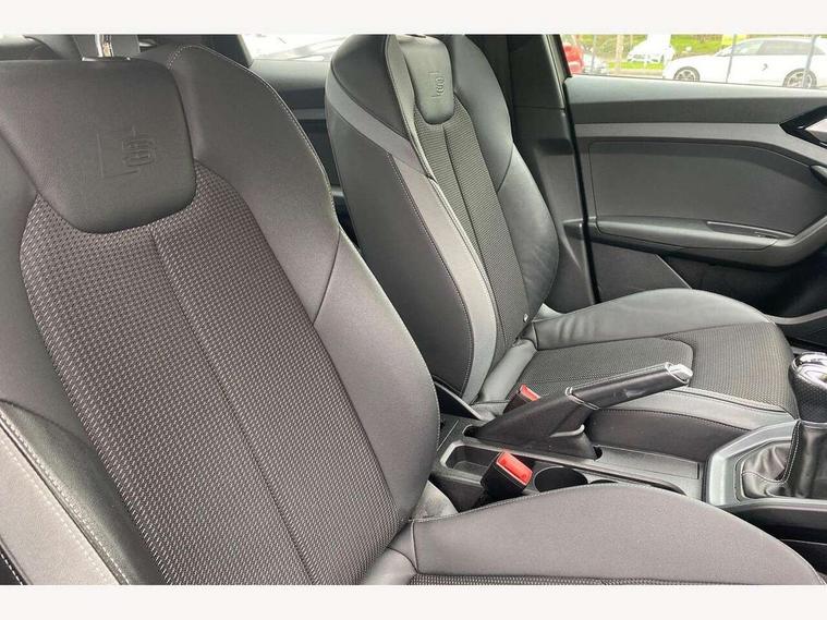 10.25" Digital instrument cluster display classis style instrument dials + speed, odometer, time, outside temperature, telephone menu + fuel level warning, Audi connect safety emergency and service including E-call, Audi drive select - power steering assistance + engine, Audi smartphone interface with connect compatible smartphone via USB directly MMI display + Nav, music, third party apps controlled via MMI controller, Automatic start/stop system, Bluetooth interface, Cruise control, Driver's information system, Electromechanical power steering, Lane departure warning system, Rear parking sensor, Service interval indicator, Speed limiter, Voice control system, Washer fluid level indicator, Sports suspension, 1 x SDXC card reader, 1 x USB type C and 1 USB type A charging points, DAB Digital radio, MMI radio plus with 8.8" colour MMI display screen and MMI touch, Auto dimming rear view mirror, Body coloured door mirrors, Door sills with aluminium inlays and S Line logo, Electric front and rear windows, Electrically adjustable, heated, folding door mirrors with integrated LED side indicator, Front side air inlets in grained matt black and C frame in titanium black, Heat insulating glass windscreen and side windows, Heated rear windscreen, LED headlights with LED rear lights + dynamic rear indicators + headlight adjustment and high beam, turning light + LED daytime running lights, Radiator grille and rear diffuser in matt titanium black, Radiator protective grille frame in matt aluminium silver, Rain and light sensors, Rear fog lights, Rear wiper, S line badges on front wings, Side front spoiler lips in grained matt black, 12V socket in centre console with two cup holders, 3 rear seats with headrests, 40:60 Split folding rear seat or folded fully, Black cloth headlining, Driver and passenger seat with manual height adjust with forward and backwards adjustment, Front and rear black floor mats with contrast stitching in fine silver, Front head restraints, Height and reach adjustable steering wheel, ISOFIX child seat mounting for front passenger and outer rear seats including top tether attachment point of outer rear seats, Leather gear knob with aluminium trim, Luggage compartment light with front and rear reading lights, Manually adjustable lumbar support in front seats, Stainless steel pedals, LED interior lighting pack - A1, Luggage compartment pack - A1, S line exterior styling pack - A1 Sportback, 3x3 point rear seatbelts, Audi pre-sense front with pedestrain and cyclist recognition, Brake assist function, Driver and front passenger airbag with front side and head airbags, Electronic Stability Control including ABS, EBD, ASR and EDL, Front and rear seatbelt reminder, Front passenger airbag deactivation switch, Hill hold assist, Seatbelt height adjustment for front seats, Seatbelt monitoring, Tyre pressure warning light, Warning triangle and first aid kit, Anti theft alarm, Anti theft wheel bolts and loose wheel warning, Immobiliser, Remote central locking with 2 foldaway keys, Aluminium trim for control switches, air vents and digital instrument cluster, Silver grey inlays polygon structure in diamond paint finish, Structured grey accent areas including air vents, door handle recesses and centre console in quartz paint finish,