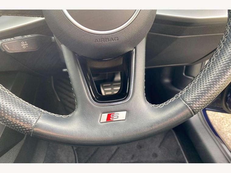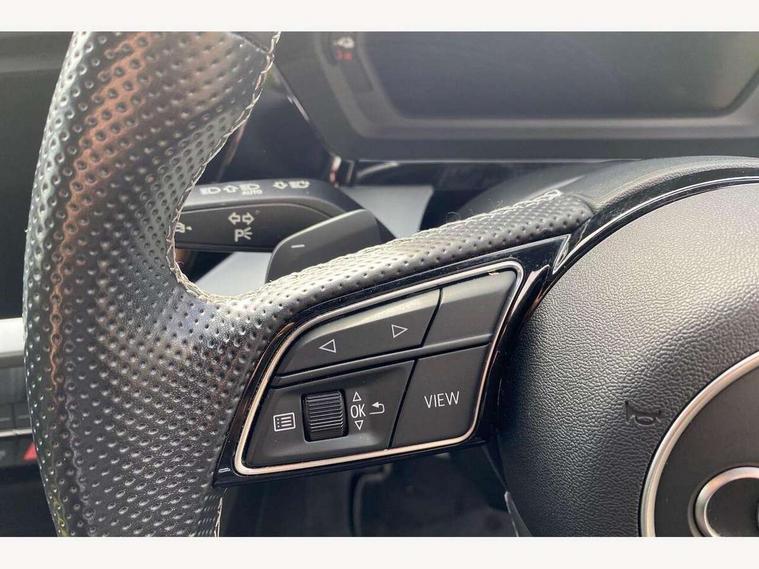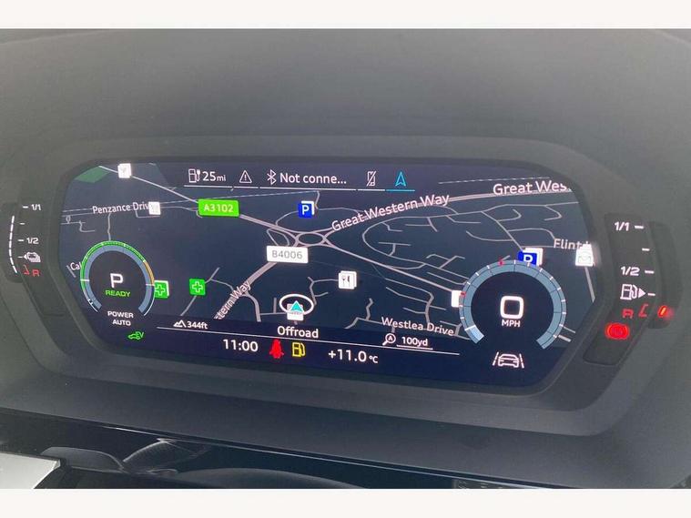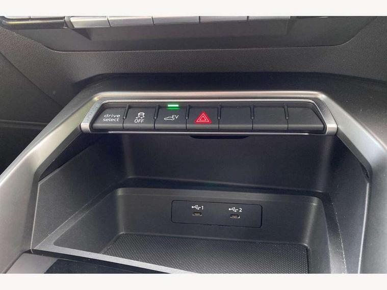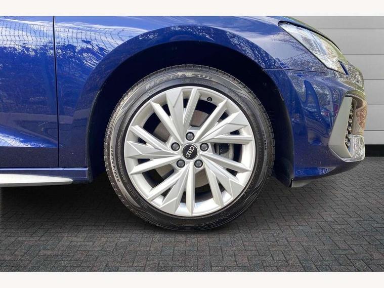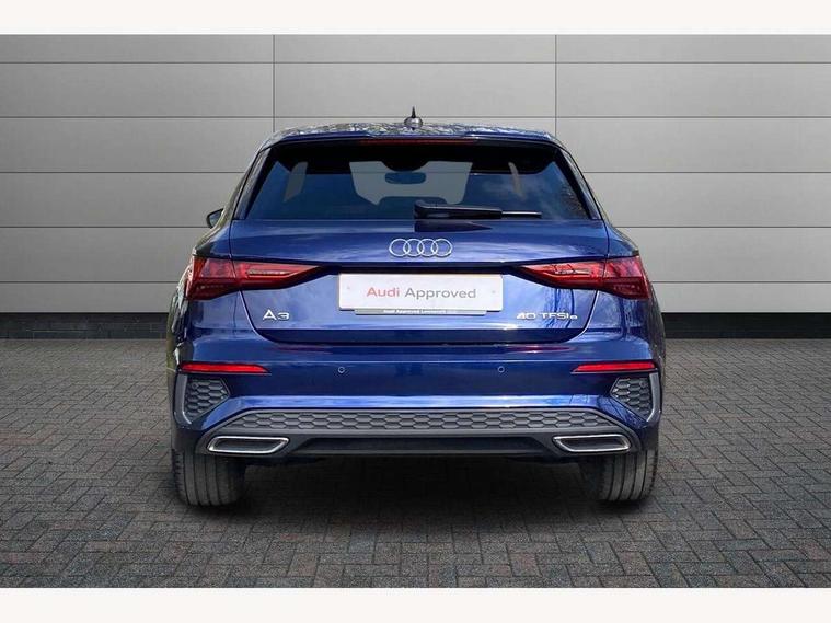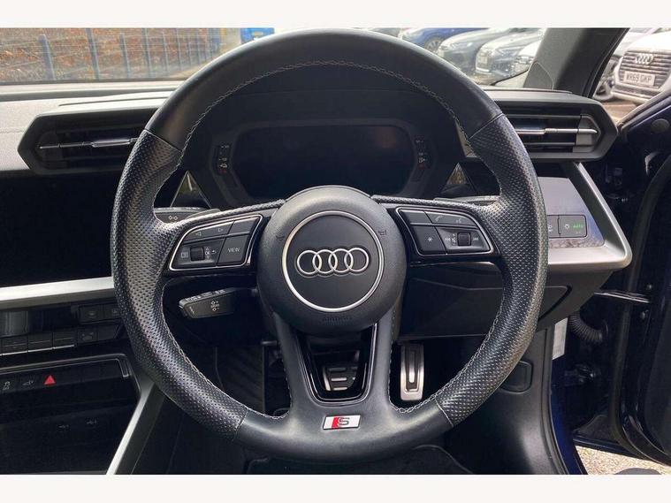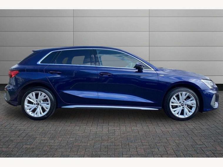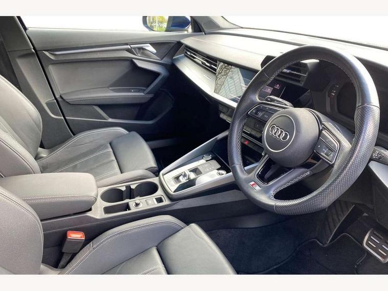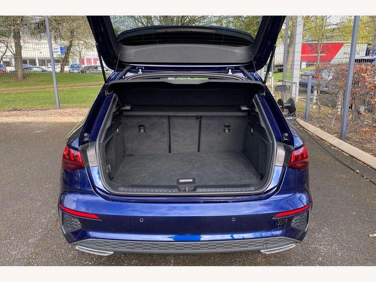 Audi connect emergency call and service, Audi drive select (Auto, Comfort, Dynamic, Efficiency and Individual), Audi smartphone interface, Audi Virtual Cockpit - 10.25" digital and colour instrument cluster, Automatic start/stop system with recuperation, Bluetooth interface, Collision avoidance assistant, Electromechanical power speed sensitive steering, Lane departure warning system, MMI Navigation Plus with high resolution 10.1" colour touch screen display, Service indicator, Trip computer, Voice control system with natural language interaction, 3 pin 10 amp domestic charging cable, Type 2 mode 3 32 amp charging cable, Type 2 socket for AC charging, 2xUSB-C connection with data and charging functions, 6 passive loudspeakers, DAB Digital radio, 3rd brake light, Acoustic glass windscreen, Aluminium window trim, Auto dimming frameless rear view mirror, Electrically adjustable/heated/folding/dimming door mirrors with kerb view includes integrated LED indications + kerb view function for passenger side, Front electric windows, Illuminated aluminium inserts front door sills with S logo, LED daytime running lights, LED headlights with LED rear lights and dynamic rear indicators, Light and rain sensors, Privacy glass - dark tinted rear window, rear door and side windows, Rear electric windows, Rear side air outlets in grained matt black, Rear wiper, S line bumpers, S roof spoiler, 12V socket and storage compartment in front centre console, 40/20/40 split folding rear seat bench with cupholder, Black cloth headlining, Dual zone electronic climate control, Front and rear centre armrest in leather, Front and rear headrests, Front/rear floor mats, Height and reach adjustable steering wheel, Interior lighting - glove compartment light and right hand side, Luggage compartment floor covering, Manual boot compartment lid, Manually adjustable front seats, Seat side bolsters, Stainless steel pedals and front footrest in black, Twin leather upholstery with front sports seats S embossed logo, Aluminium interior elements pack - A3 Sportback, S line styling pack - A3 Sportback, 3x3 point rear seat belts, Driver and front passenger airbag with passenger airbag deactivation, Electronic Stabilisation Control (ESC) including ABS, ASR and EDL, First aid kit with warning triangle and 2 safety vests, Front side airbags with head airbags and interaction airbag, Hill hold assist, Pre-sense front with pedestrian and cyclist detection, Seatbelt monitoring, Tyre pressure loss indicator, Anti theft alarm, Anti-theft wheel bolts, Electronically operated child lock, Immobiliser, Remote control central locking, Accent surfaces in the dashboard and centre console in platinum grey silk effect paint finish, Dark spectrum aluminium inlays, Tool kit, Tyre repair kit,