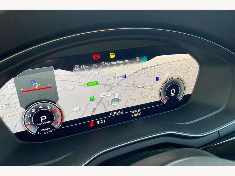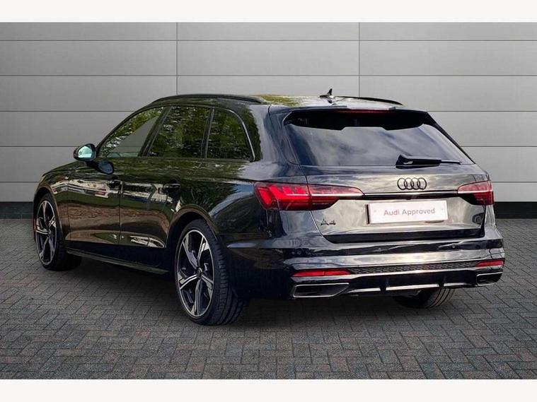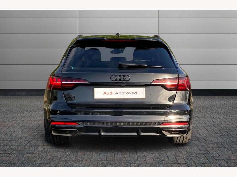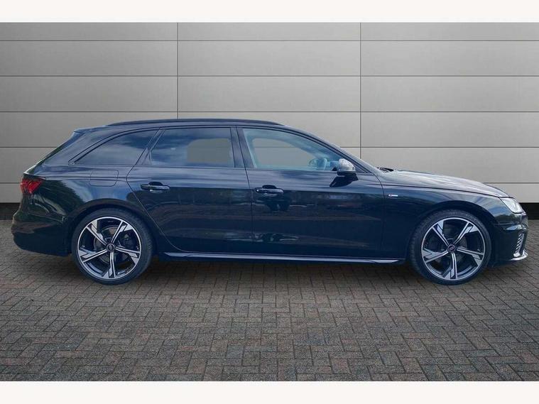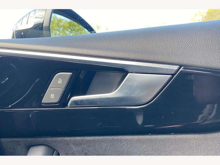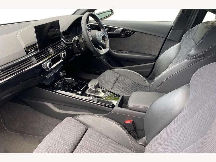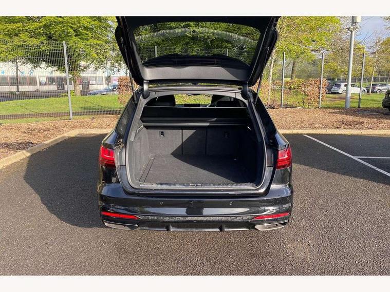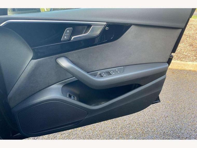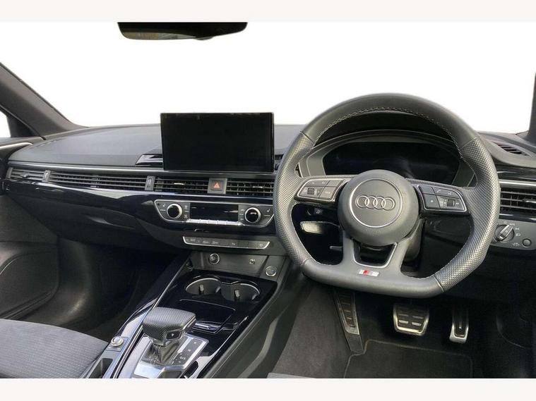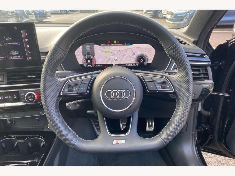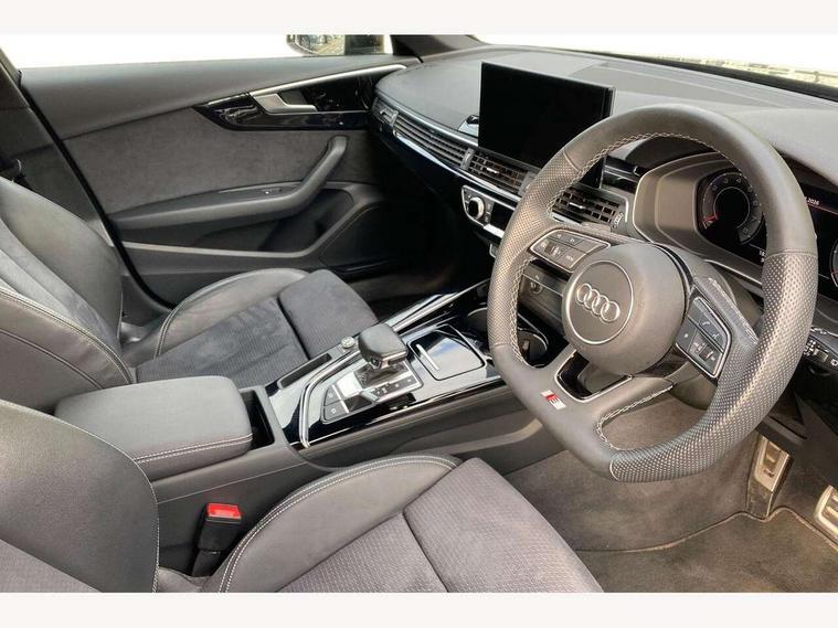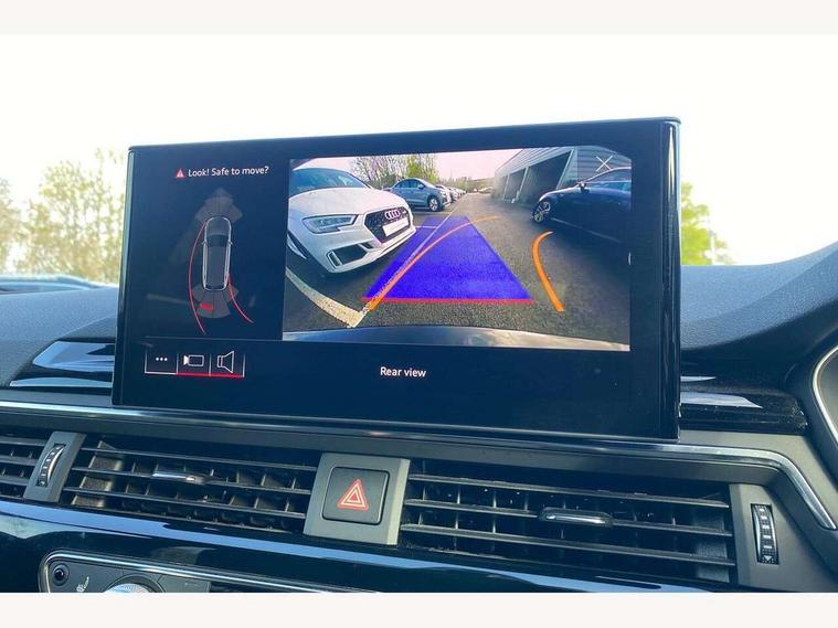 Audi connect safety and service (e-call), Audi connect with Amazon Alexa Integration, Audi drive select, Audi smartphone interface, Audi virtual cockpit, Automatic start-stop system with coasting functionality and efficiency programme, Bluetooth interface, Electromechanical power steering, Email, calendar and text messages displayed via MMI, MMI Navigation plus with MMI touch includes 10.1" high resolution colour MMI display, 3D map, Power operated tailgate, Voice control system, 54 litre fuel tank, Sports suspension lowered by 23mm, 2 USB charging ports, 8 passive loudspeakers, DAB digital radio reception, Audi beam uses LEDs to project the audi logo onto the ground as you exit your A4, Auto dimming rear view mirror, Black Audi rings and black badging (model name in black badging, no engine badging), Body colour door handles, Body colour front spoiler lip, Body colour side sill trim, Electrically folding auto dimming/adjustable/heated door mirrors with LED side indicators and kerb view function for passenger side, Exhaust tailpipes in high dark chrome, Front and rear bumpers with side skirts, Grained matt black side air inlets with matt aluminium silver inlay, High beam assistant, High gloss black B pillar trims and triangular rear door trim, LED headlights with LED rear lights + dynamic rear indicators + headlight adjustment and high beam, turning light + LED daytime running lights, LED third brake light, Privacy glass, Rain and light sensors, Rear diffuser in matt black with trim strip in matt aluminium silver, Rear side wing doors, Rear wiper, RS4 rear spoiler in body colour, S Line badges on the front wings, S Line roof edge spoiler, Variable intermittent front wash/wipe, Windscreen with acoustic glazing, 4 way electric lumbar support for driver and front passenger, 40/20/40 split folding 3 rear seat bench in 3 parts with rear centre armrest, Black cloth headlining, Black perforated leather gearknob, Contrast stitching on seats, steering wheel and gear lever gaiter, Deluxe 3 zone electronic climate control, Door sill trims with aluminium inlay, Electric load area cover, Front and rear head restraints, Front centre armrest, Heated front seats, Illuminated door sill trims with S logo, ISOFIX child seat mounting and top tether, Manual seat adjustment, Single front passenger seat, Stainless steel pedals and foot rest, Black styling pack - A4 Avant, LED Interior light pack - A4/S4, 3 rear seatbelts, 6 airbags - Driver, front passenger, curtain and side windows, Electronic Stabilisation Control (ESC) including ABS, ASR and EDL, Hill hold assist, Multi collision brake assist, Pop-up bonnet for pedestrian protection, Pre sense city, Rear door child safety locks, Seatbelt monitoring, Warning triangle and first aid kit, Anti theft alarm, Anti theft wheel bolts, Central locking, Keyless Go, Piano black finish inlay, 19" 5 arm flag design Audi sport diamond cut alloy wheels in gloss anthracite black, Tool kit, Tyre repair kit,