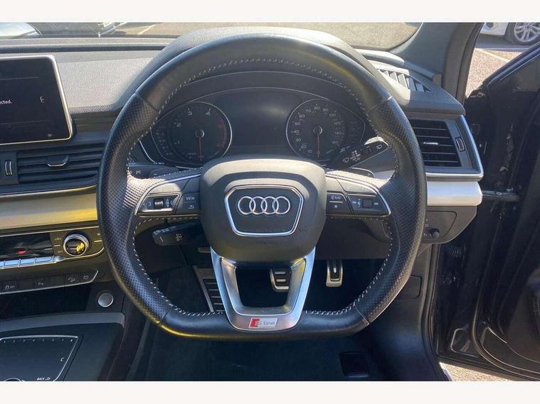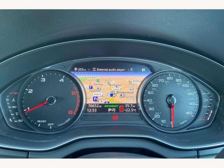Audi connect, Audi drive select, Audi smartphone interface, Driver information centre with colour display in instrument panel, Electric power steering, Power tailgate, Remote electric boot opening/closing, SD card based MMI navigation, Service interval indicator, Voice control system, Diesel particulate filter, 2 USB ports, Audi sound system, Auxiliary input socket, CD player, DAB Digital radio, MMI radio plus with 7" colour MMI screen and MMI controller, Acoustic windscreen, Aluminium roof rails, Aluminium sill plates, Auto dimming rear view mirror, Black high gloss front air inlet in matt aluminium effect, Body colour bumpers, Body colour door mirrors, Body colour rear diffuser insert, Chrome exhaust tailpipe, Electric headlight adjustment, Electrically adjustable and heated door mirrors, Front and rear electric windows, Front fog lights, Headlight range control, Headlight washers, Honeycomb side air inlet in titan black, Light and rain sensor for auto activation of lights and windscreen wipers, Loading sill protector in stainless steel, Privacy glass with front acoustic glazing, Rear diffuser strip in matt aluminium silver, Rear spoiler, Rear wiper, S Line side skirts, Selenite silver underbody guard, Twilight grey matt radiator grille with matt aluminium horizontal chrome struts, 3 rear headrests, 3 zone climate control, 4 way electric lumbar support for driver and front passenger, 40:20:40 split folding rear bench seat, Black cloth headlining, Front centre armrest with 12v socket, Front sports seats, Front/rear floor mats, Height adjustable driver's seat, Height adjustable front head restraints, Illuminated door sills, Isofix front passenger and rear seat preparation, Jack and tool kit, Load compartment cover, Luggage compartment carpet, Matt selenite silver door inserts, Perforated leather gearknob, Reach + rake adjustable steering column, Removable luggage compartment floor, Removable net partition, Roller blind loadspace cover, Stainless steel pedals, Sunvisors with vanity mirrors, Non Smokers pack, 3 point seatbelts on all seats, ABS, Curtain airbags, Driver and passenger airbags, Driver and passenger side airbags, Electromechanical parking brake, ESC with ASR, ESP, First aid kit, Front passenger airbag deactivation, Hill descent control, Seat belt force limiter, Seatbelt warning lamp, Traction control, Tyre pressure monitor, Warning triangle, Keyless Go access/ignition system, Locking wheel bolts, Remote central locking, Thatcham category 1 alarm + immobiliser, Contrast stitching,