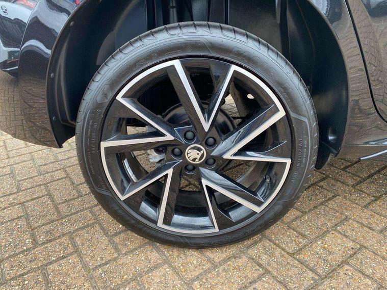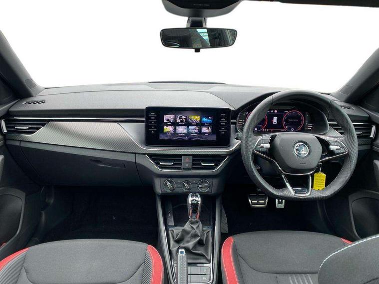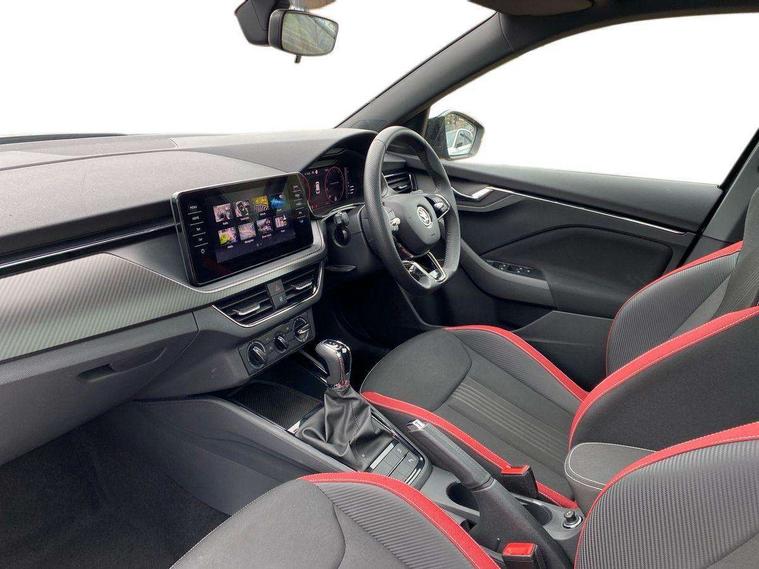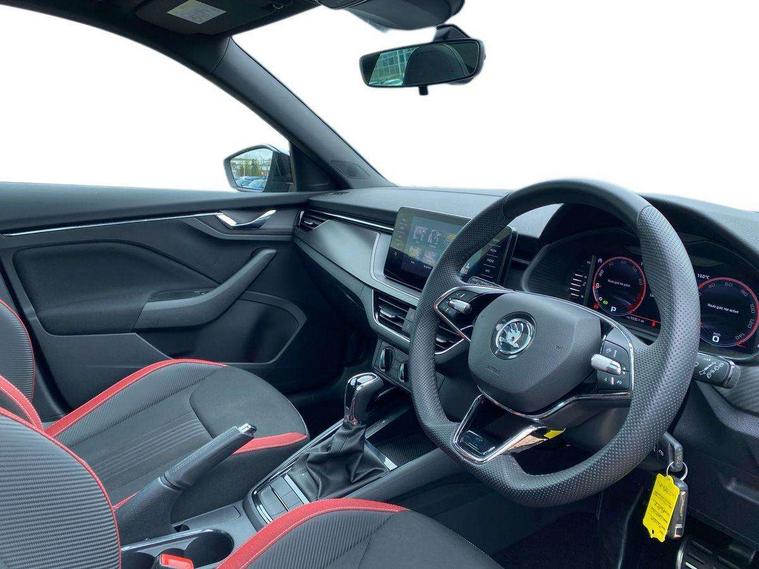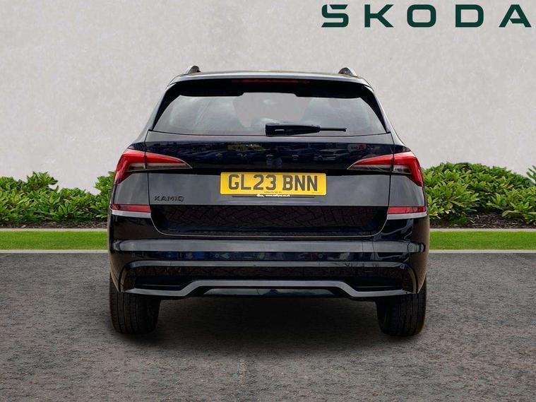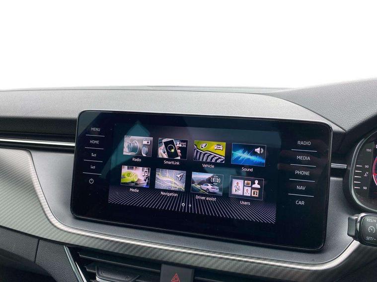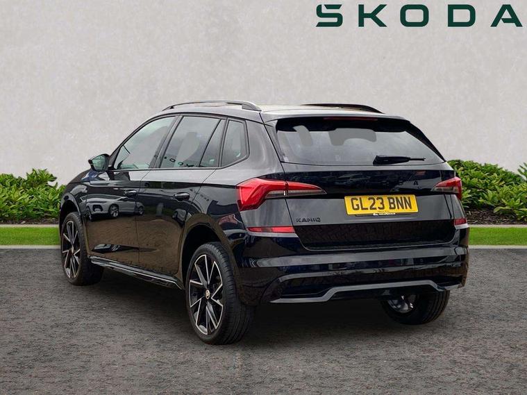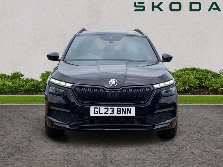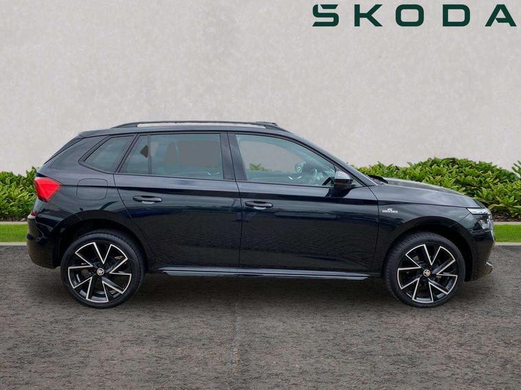 Amundsen satellite navigation with 9.2" glass colour touchscreen display, web radio, voice control and traffic sign recognition, Bluetooth system, E-call, Front assist system, Gesture control, PAS, Service indicator, Speed limiter, Wireless Smartlink for Apple CarPlay (wired for Android Auto), 8 Speakers, Auxiliary input socket, DAB Digital radio, Black door mirrors, Black radiator grille, Black rear diffuser, Body colour bumpers, Body colour door handles, Body colour roof spoiler, Boot lettering in black, Chrome grille surround, Dimming rear view mirror with black surround, Electrically adjustable and heated door mirrors, Fixed panoramic sunroof with black roof rails, Front and rear electric windows, Front sport bumper, Full LED headlights with adaptive front light system, cornering function, fog lights and dynamic indicators, Headlight range control, Heated rear window, High functionality rear led lights with dynamic indicators, KAMIQ Door sills, LED daytime running lights, LED third brake light, Light sensors, Monte carlo plaque, Privacy glass, Rain sensor, Rear fog lights, Rear side wing doors, Rear wiper, 12V Accessory socket in centre console, 3 seat bench in 2nd row, Aluminium pedals, Black ceiling for black/beige interior, Black roof lining, Chrome inner door handles, Cloth upholstery, Front head restraints, Glove compartment with illumination, Ice scraper, Isofix child seat fittings on outer rear seats, ISOFIX on front passenger seat, Leather gear lever, Manual lumbar support for front seats, Rake/reach adjustable steering wheel, Reading lights, Single front passenger seat, Sports seats, Sun visors with illumination on front passenger, Textile floor mats, Third rear headrest, Top tether for front passenger seat, Umbrella in driver's door, 3x3 point rear seatbelts, Airbags - driver and front passenger, ESP, Front passenger airbag deactivation switch, Front side airbags with curtain airbags, Hill hold control, Manual parking brake, Manual rear child locks, One tone horn, Rear disc brakes, Seatbelt reminder for driver an co-driver, Traction control, Tyre pressure monitor, Anti-theft alarm system with interior monitoring, backup horn, towing protection and remote central locking with SAFE system, Anti-theft wheel bolts, Electronic engine immobilizer, Chrome air vent surrounds, 18" Vega alloy wheels in black,