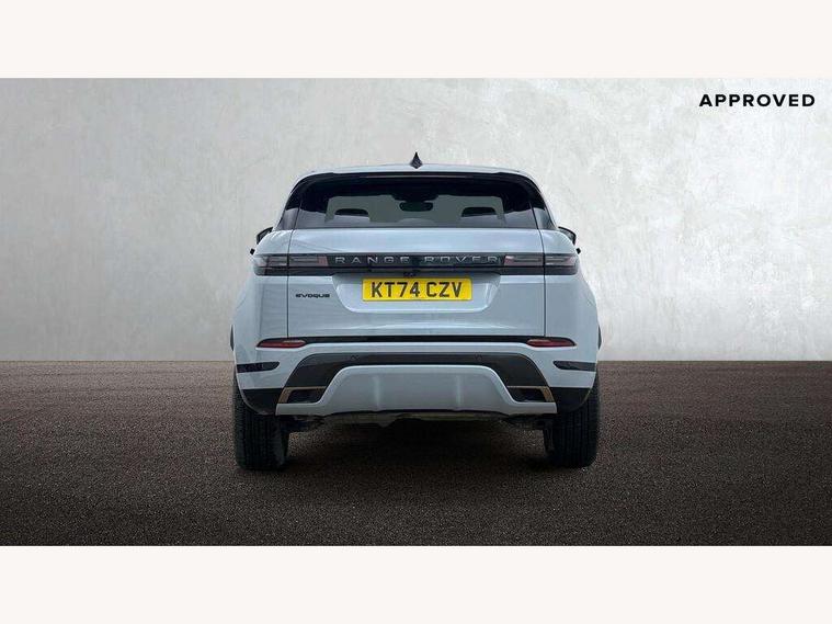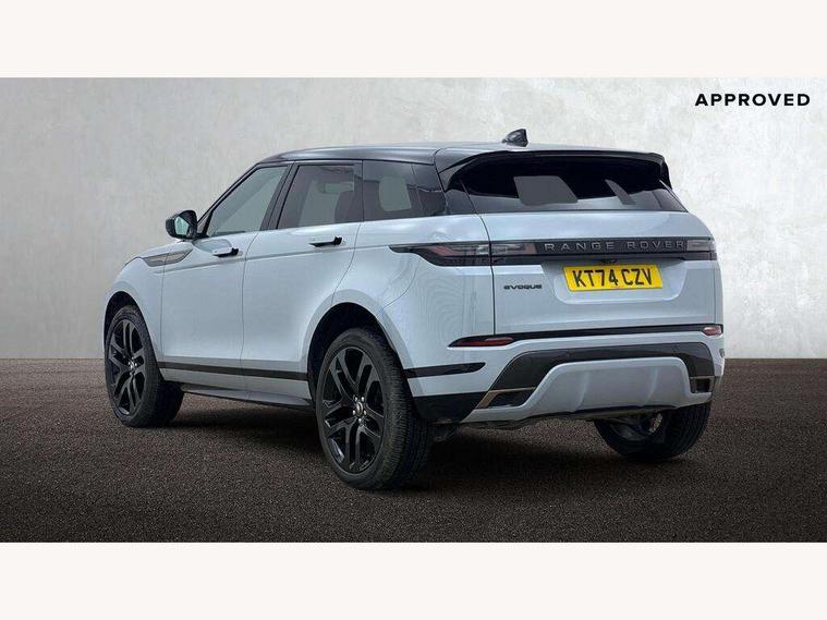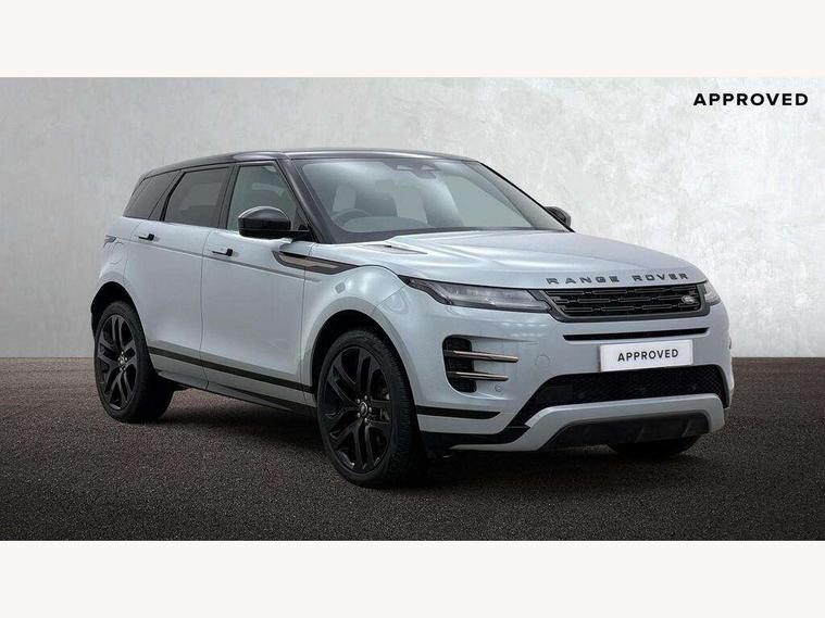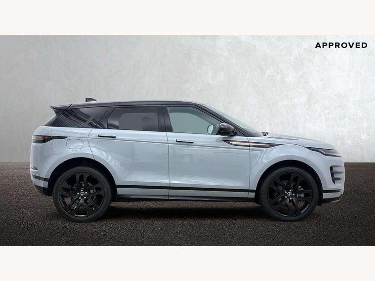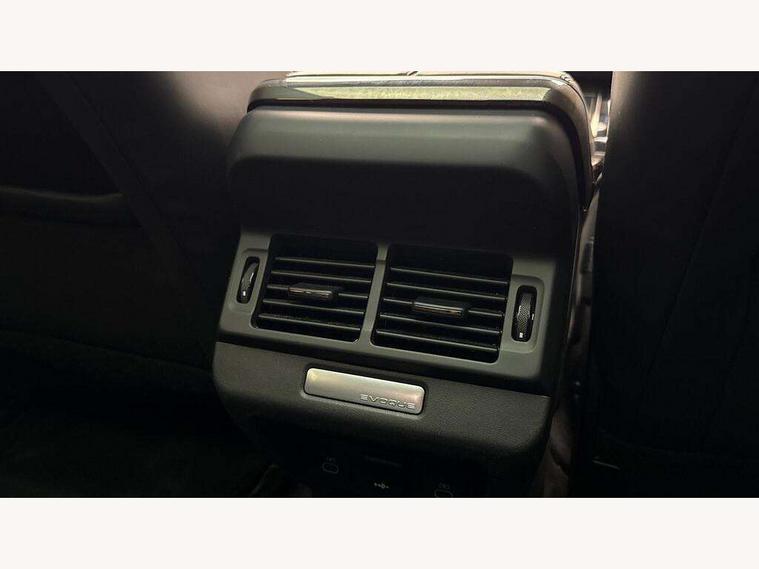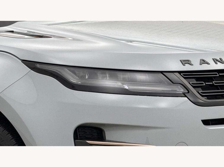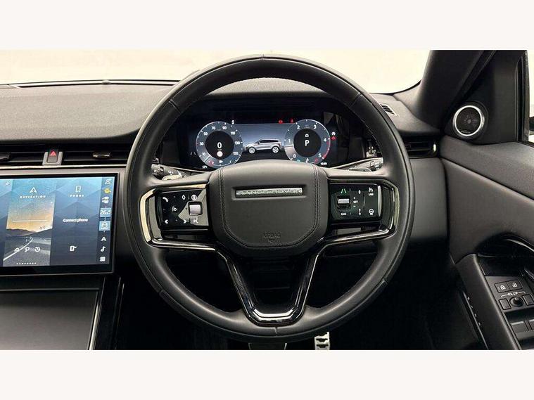 11.4" touch screen, Adaptive cruise control, Android Auto, Apple car play, Blind spot assist, Bluetooth connectivity, Brake pad wear indicator warning light, Driver condition monitor, eCall emergency system, Eco mode, Electronic power assisted steering (EPAS), Front and rear parking aid, InControl remote, Interactive driver display, Land Rover InControl apps, Lane keep assist, Pivi pro connected includes diamond pivi variant, smart settings, connected navigation pro, nuance speech licence, Powered tailgate/boot lid, Rear collision monitor, Rear traffic monitor, Traffic sign recognition with adaptive speed limiter, Voice control system, Wireless device charging, All terrain progress control, Diesel exhaust fluid (DEF) large tank, Efficient Driveline, Large fuel tank, Passive suspension, Terrain Response 2, Digital Audio Broadcast radio-DAB, Steering wheel mounted controls, Acoustic laminated windscreen, Auto headlights, Automatic headlight levelling, Electric windows with one touch open/close and anti trap, Flush deployable exterior door handles, Front and rear recovery eyes, Heated rear window with timer, Heated washer jets, Heated windscreen, Pixel LED headlights with signature DRL and LED tail Lights, Power fold, auto-dimming, heated door mirrors with approach lights and auto dimming driver side, Rain sensing windscreen wipers, Rear animated directional indicators, Rear fog lights, Rear side wing doors, Rear wiper, Side repeater indicators in mirror, Tailgate spoiler, Third brake light, Winter wiper park position, 14 way driver memory electric front seats with 2 way manual headrests + 4 way lumbar support, bolsters, 40:20:40 split folding rear seats with centre headrest and armrest, Ambient interior lighting, Bright metal pedals, Carpet mats, Chrome tread plates with range rover branding Includes stainless steel loadspace scuff plate with etched graphic, Customer configurable single point entry, Electrically adjustable steering column with memory function and easy entry/exit, Front and rear cupholders, Heated steering wheel, Isofix system on outer rear seats, Overhead lighting console, Overhead stowage for sunglasses, Passive front head restraints, Rear air vents, Rear head restraints, Satin chrome gearshift paddles, Single passenger seat, Sunvisors with illuminated vanity mirrors, Twin sliding front centre armrest, Online pack with data plan - Evoque, Power socket pack 2 - Evoque, 3 rear 3 point seatbelts, Anti-lock braking system (ABS), Brake hold function, Customer configurable autolock, DSC - Dynamic Stability Control, Electronic brake force distribution, Electronic parking brake, Electronic traction control, Emergency braking, Front and rear seatbelt reminder, Hill descent control, Hill launch assist, Low traction launch, Occupant protection assist, Passenger seat occupant detector, Power operated child locks, Roll stability control, Six airbags - Driver and passenger airbags/driver knee airbag/front side airbag and curtain airbags, Torque vectoring brake, Tyre pressure monitoring system, Alarm, Immobiliser, Intrusion sensor, Keyless entry, Locking wheel nuts,