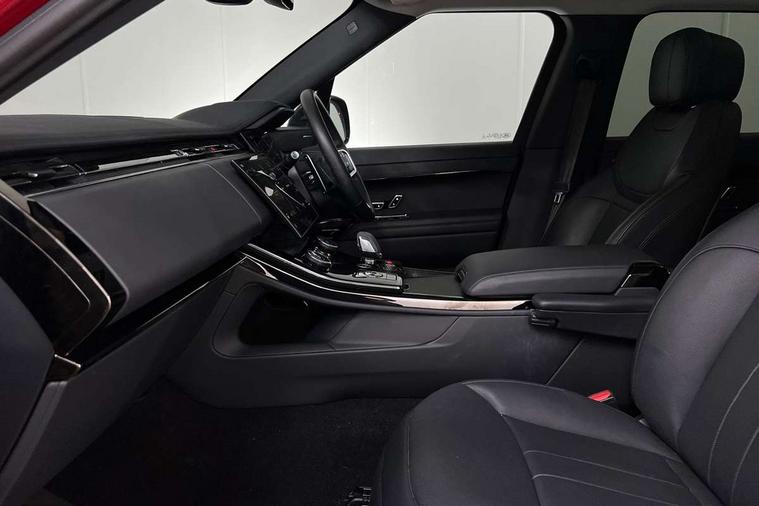 13.1" Touchscreen, 3D 360 degree surround camera with wade sensing, Adaptive cruise control with steering assist, Android Auto, Apple car play, Blind spot assist, Bluetooth connectivity streaming, Driver condition response, Eco mode, Electric power assisted steering (EPAS), Interactive Driver display instrument cluster, Lane departure warning system, Lane keep assist, Occupant protection assist, Push button start, Rear collision monitor, Rear traffic monitor, Remote, Traffic sign recognition with adaptive speed limiter, Trip computer, Wireless device charging with phone signal booster, 8 speed automatic transmission, Adaptive dynamics, All wheel drive system, Automatic access height, Home charging cable, Public charging cable, Terrain Response 2, Twin speed transfer box, DAB Radio (Digital Audio Broadcasting), Incontrol protect - SOS emergency call with automatic collision detection, optimised assistance call and Incontrol remote app essential, Pivi pro connected, USB/aux input socket, Adaptive brake lights, Automatic headlight levelling, Automatic headlights, Centre high mounted stop light, Electric heated/power fold memory door mirrors with approach lights and auto dimming driver side, Electric windows with one touch open/close and anti trap, Flush deployable exterior door handles, Follow me home lighting, Front and rear recovery eyes, Headlight power wash, Heated rear window, Heated washer jets, Heated windscreen, Integrated twin tailpipes, LED tail lights, No badges, Rain sensing windscreen wipers, Rear animated directional indicators, Rear fog lights, Rear side wing doors, Rear wash/wipe, Remote window closing, Side repeater indicators in mirror, Trailer stability assist, Winter wiper park position, 3 seat bench in 2nd row, 60:40 seats with power recline and loadthrough, Air quality sensor, Auto air recirculation, Centre console with armrest, Customer configurable single point entry, Driver's footrest, Easy boot loading, Electric adjustable steering column, Front and rear cupholders, Front door storage space, Front head restraints, Front map lights, Front seat back map pockets, Front stowage pocket, Front/rear passenger grab handles, Gearshift paddles, Heated steering wheel, Isofix child seat preparation, Loadspace cover, Loadspace Hook, Loadspace light, Loadspace mounting provisions, Lockable glovebox, Luggage tie-downs in loadspace, Multifunction steering wheel, Pollen filter, Power socket, Rear centre armrest, Rear head restraints, Rear ISOFIX, Seat colour match console, door armrests and seatbelts, Single front passenger seat, Three 12V accessory power outlets, Upper secondary glovebox, Online pack with data plan - Range Rover Sport, 3 point seatbelts on all seats, Anti-lock braking system (ABS), Brake pre-fill technology, Configurable autolock, Cornering brake control (CBC), DSC - Dynamic Stability Control, EBD - Electronic brakeforce distribution, Electric parking brake, Electronic traction control, Emergency braking, Front seatbelt pretensioners, Front side airbags, Height adjustable front seatbelts, Hill descent control, Hill launch assist, Low traction launch, Passenger seat occupant detector with front airbags, Power operated child locks, Roll stability control, Seatbelt warning, TPMS (Tyre pressure monitoring system), Immobiliser, Intrusion sensor, Keyless entry, Locking wheel nuts, Perimetric and volumetric anti theft alarm, Remote locking, Noble chrome interior finishers,