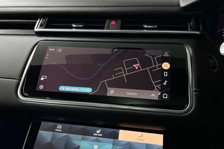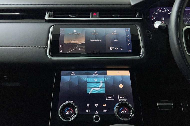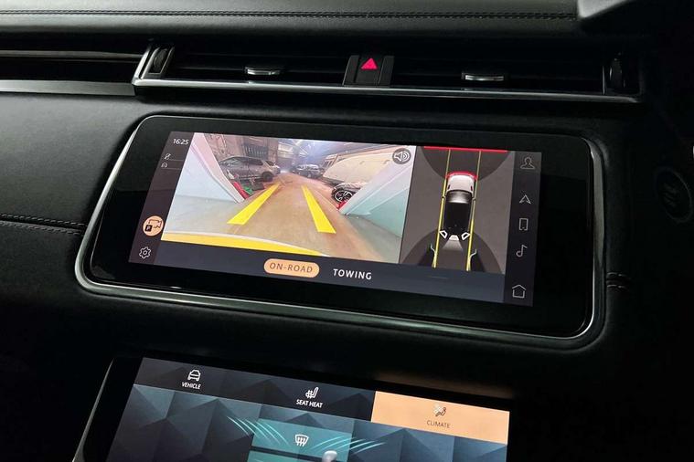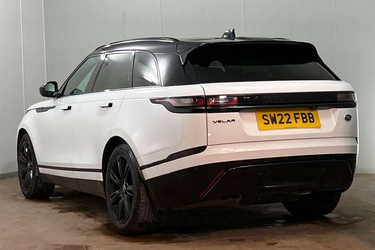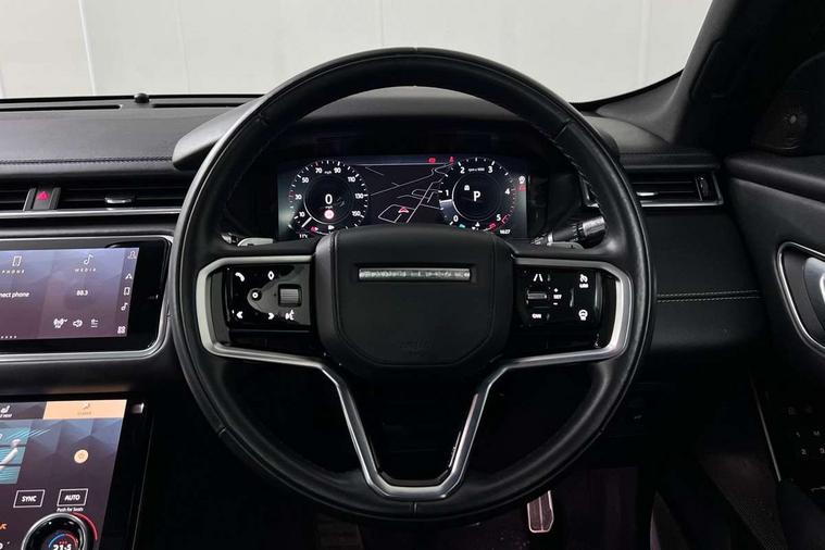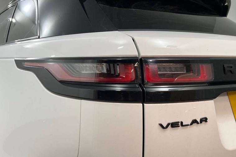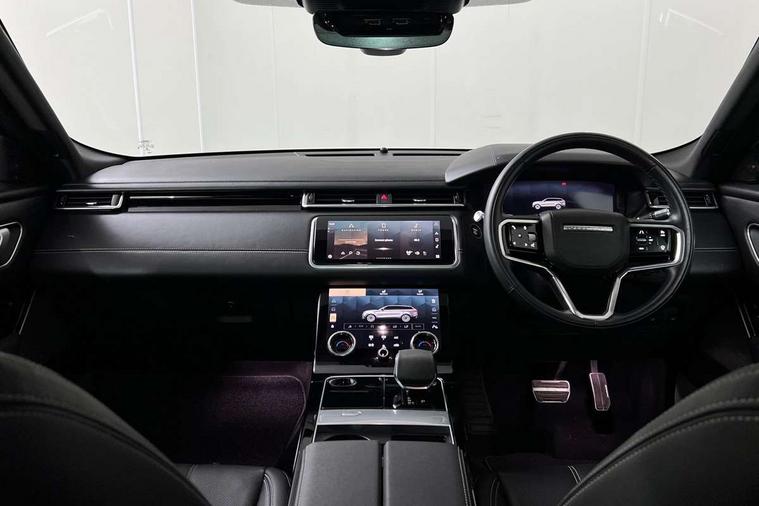 Online pack with data plan - Velar, R-Dynamic black pack - Velar R-Dynamic/Edition, Global lock and unlock switch on driver door, Immobiliser, Intrusion sensor, Keyless entry, Lock only switch on front passenger door, Locking wheel nuts, Perimetric alarm, Remote central locking, Digital Audio Broadcast radio-DAB, Steering wheel mounted controls, 355mm front brakes and 325mm rear brakes, 3x3 point rear seatbelts, Anti-lock braking system (ABS), Cornering brake control, Curtain airbags, Customer configurable autolock, Door side intrusion beams, Driver airbag, DSC - Dynamic Stability Control, Electronic brake force distribution, Electronic parking brake, Electronic traction control, Emergency brake assist, Emergency braking, Front and rear seatbelt reminder, Hill descent control, Hill launch assist, Low traction launch, Passenger airbag, Power operated child locks, Rear airbags, Roll stability control, Side airbags, Tyre pressure monitoring system, Unpainted brake calipers, Acoustic laminated windscreen, Adaptive front lighting system, Auto dimming interior rear view mirror, Automatic headlamp levelling, Automatic headlights, Body coloured bumpers, Boot protection plate, Edition badge, Electric heated/power fold door mirrors with approach lights and auto dimming driver side, Electric windows with one touch open/close and anti trap, Flush deployable exterior door handles, Follow me home headlights, Front fog lights, Headlamp power wash, Heated rear window with timer, Heated windscreen, Metal load space scuff plates, Privacy glass, Rain sensor windscreen wipers, Rear fog lights, Rear wash/wipe, Sliding panoramic sunroof with auto blind function, Tailgate/boot lid spoiler, Trailer stability assist, Velar and R-dynamic badge, Ambient lighting, Bright metal pedals, Driver/passenger sunvisors with illuminated vanity mirrors, Heated steering wheel, Isofix system on outer rear seats, Loadspace cover, Overhead lighting console, Overhead stowage for sunglasses, Passive front headrests, Rear air vents, Rear centre headrest, Satin chrome gearshift paddles, Standard interior, Twin front cupholders, Twin sliding front centre armrest, 10" touch screen, Android Auto, Apple car play, Blind spot assist, Bluetooth connectivity, Brake pad wear indicator warning light, Driver condition monitor, InControl remote, Interactive Driver display instrument cluster, Land Rover InControl apps, Lane keep assist, Pivi pro connected includes upgraded infotainment, smart settings, connected navigation pro, Nuance speech licence, Push button start, Rear traffic monitor, Service indicator, Speed proportional electronic power assisted steering (EPAS), Traffic sign recognition with adaptive speed limiter, Trip computer, Voice control system, 8 speed automatic transmission, All terrain progress control, Open differential with torque vectoring by braking, Single speed transfer box,