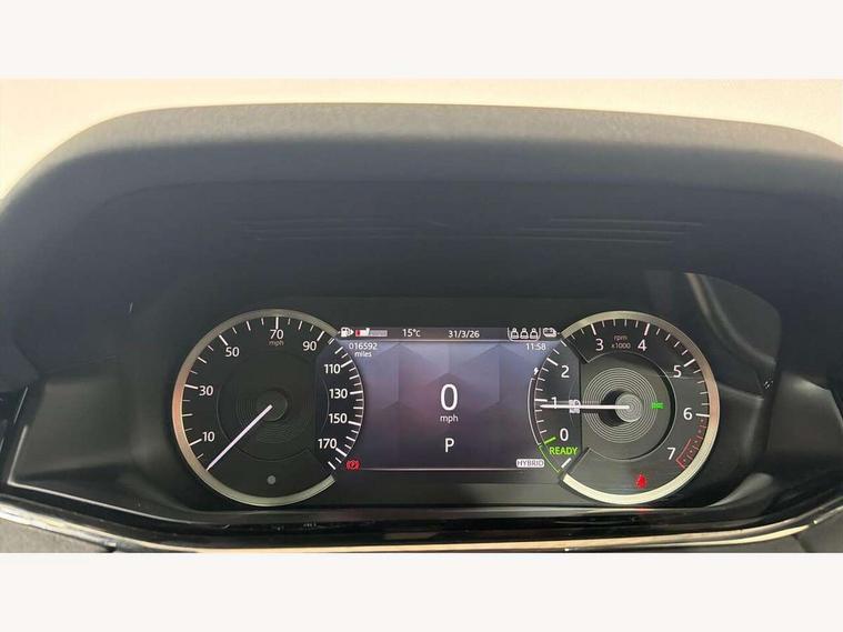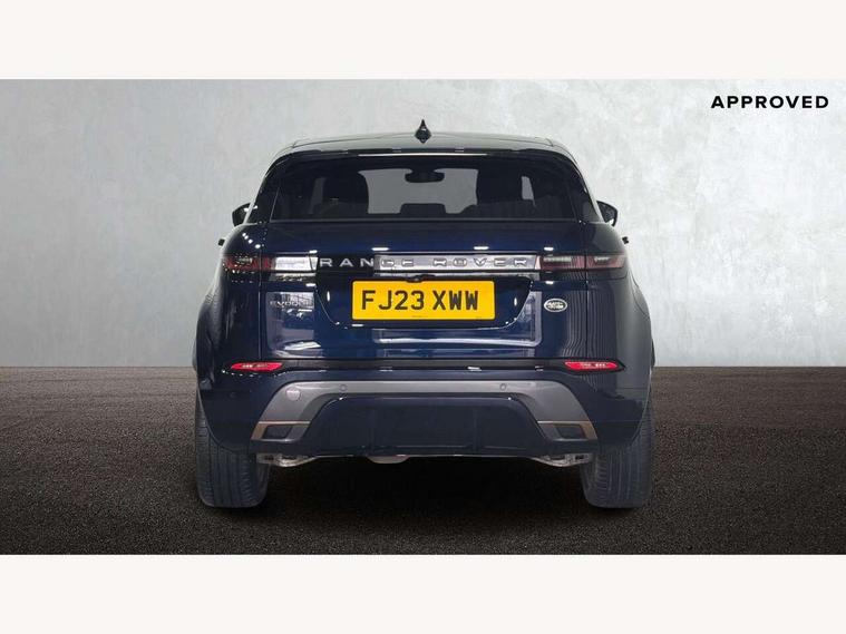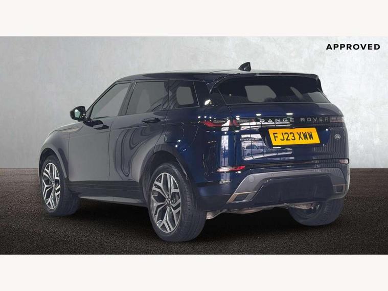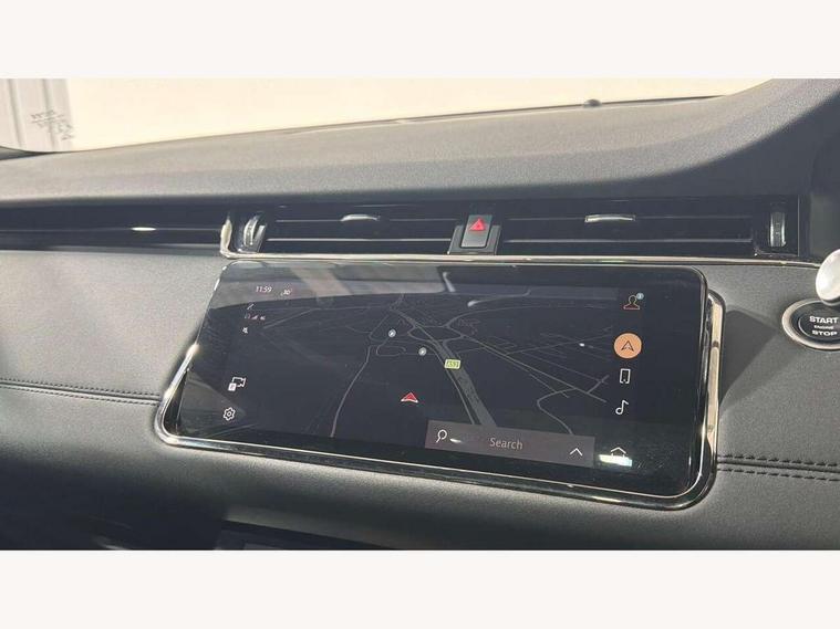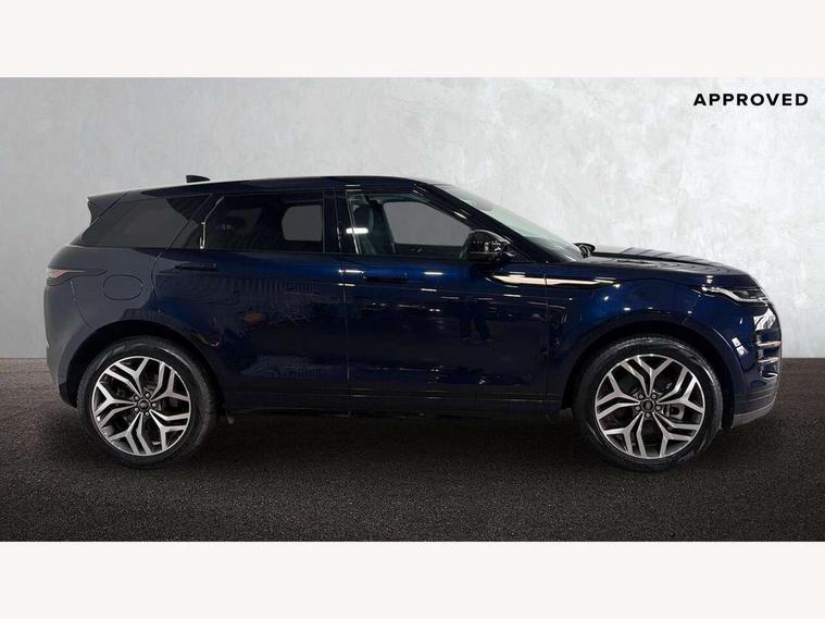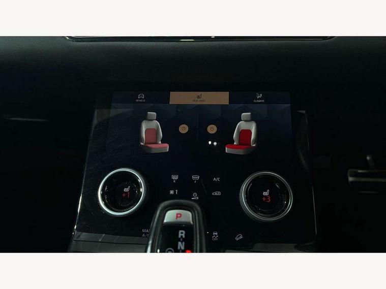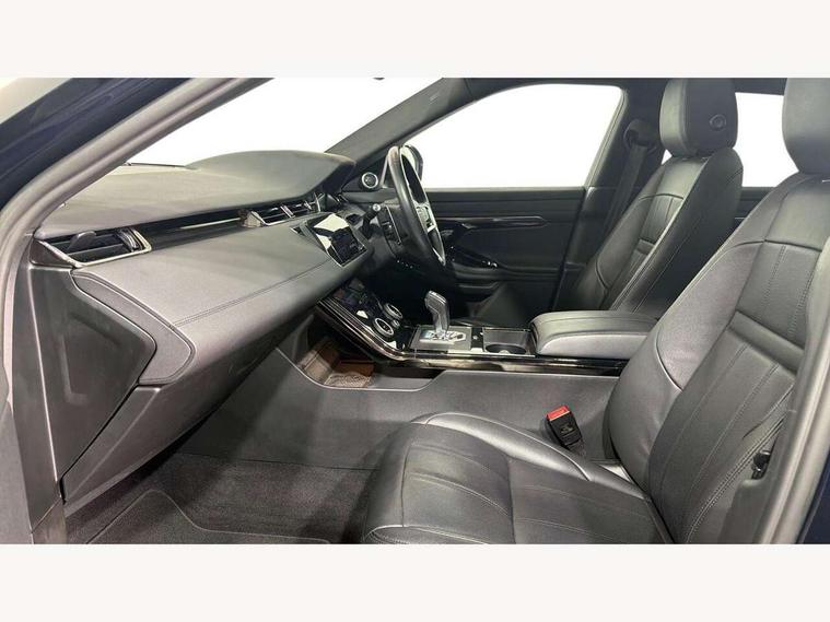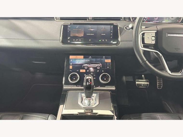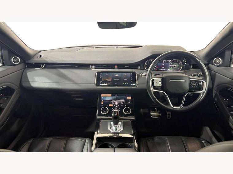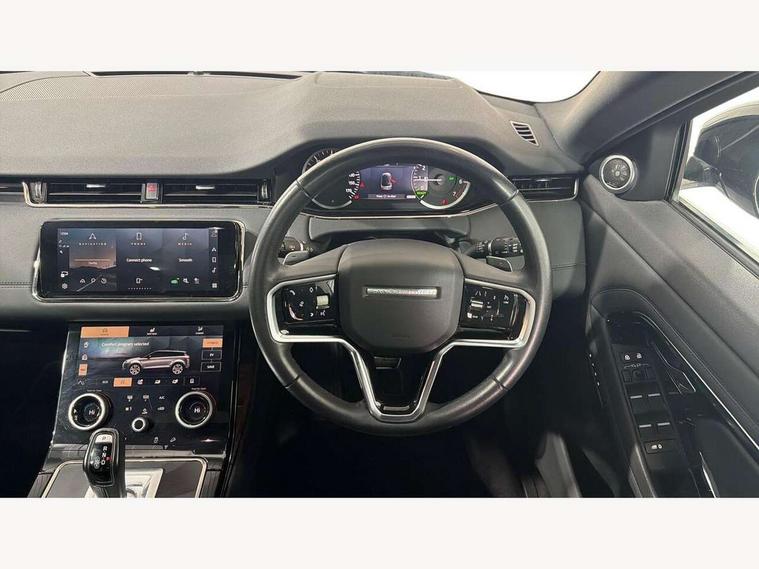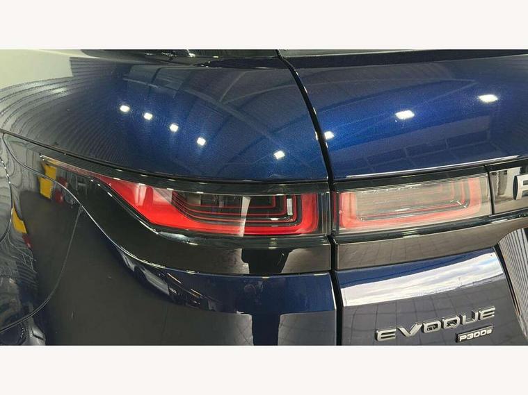 Adaptive cruise control, Android Auto, Apple car play, Blind spot assist, Bluetooth connectivity, Brake pad wear indicator warning light, Driver condition monitor, eCall emergency system, Electronic power assisted steering (EPAS), Front and rear parking aid, InControl remote, Land Rover InControl apps, Lane keep assist, Pivi pro connected includes upgraded infotainment, connected navigation pro, Nuance speech licence, Push button starter, Rear collision monitor, Rear traffic monitor, Traffic sign recognition with adaptive speed limiter, Voice control system, 7 kW onboard charger, All terrain progress control, Electric rear axle drive, Home charging cable, Large fuel tank, Passive suspension, Public charging cable, Terrain Response 2 Auto, Digital Audio Broadcast radio-DAB, Steering wheel mounted controls, Auto headlights, Automatic headlight levelling, Electric windows with one touch open/close and anti trap, Evoque and R-Dynamic badge, Flush deployable exterior door handles, Heated rear window with timer, Heated washer jets, Heated windscreen, P300e badge, Power fold, auto-dimming, heated door mirrors with approach lights and auto dimming driver side, Rain sensing windscreen wipers, Rear fog lights, Rear side wing doors, Rear wiper, Tailgate spoiler, Third brake light, 40:20:40 split folding rear seats with centre headrest and armrest, Ambient interior lighting, Bright metal pedals, Isofix system on outer rear seats, Overhead lighting console, Overhead stowage for sunglasses, Passive front head restraints, Rear air vents, Rear centre headrest, Rear head restraints, Satin chrome gearshift paddles, Single passenger seat, Sunvisors with illuminated vanity mirrors, Twin sliding front centre armrest, 3 rear 3 point seatbelts, Anti-lock braking system (ABS), Customer configurable autolock, DSC - Dynamic Stability Control, Electronic brake force distribution, Electronic parking brake, Electronic traction control, Emergency braking, Front and rear seatbelt reminder, Hill descent control, Hill launch assist, Low traction launch, Power operated child locks, Roll stability control, Six airbags - Driver and passenger airbags/driver knee airbag/front side airbag and curtain airbags, Torque vectoring brake, Tyre pressure monitoring system, Alarm, Immobiliser, Intrusion sensor, Keyless entry, Locking wheel nuts,