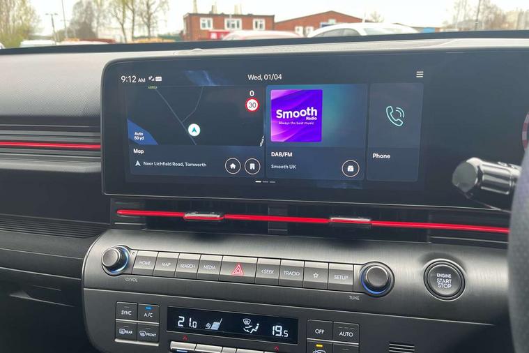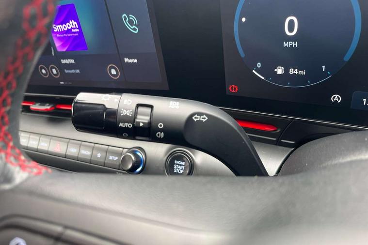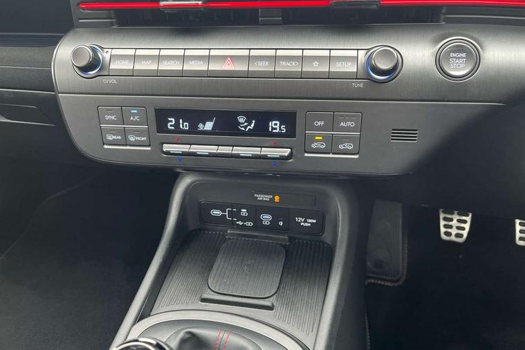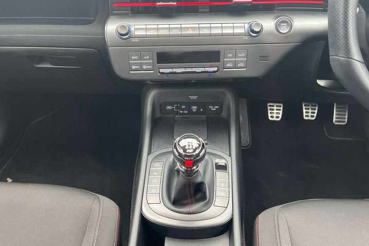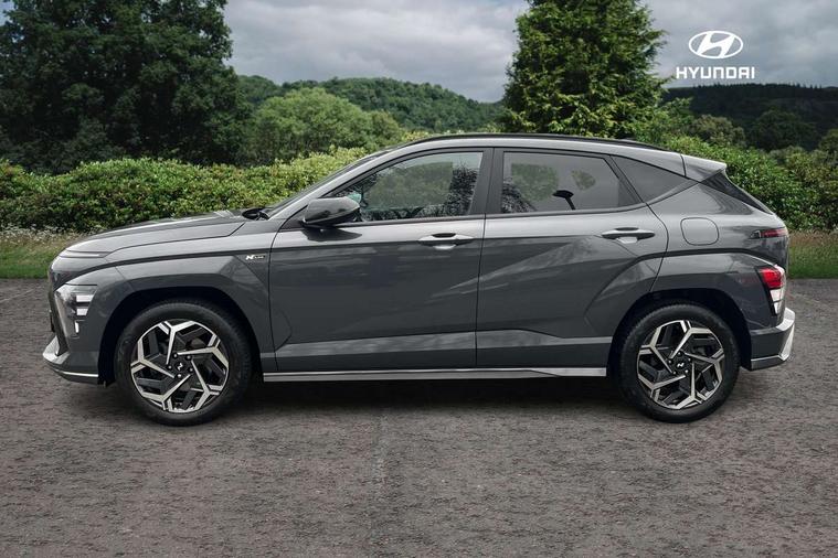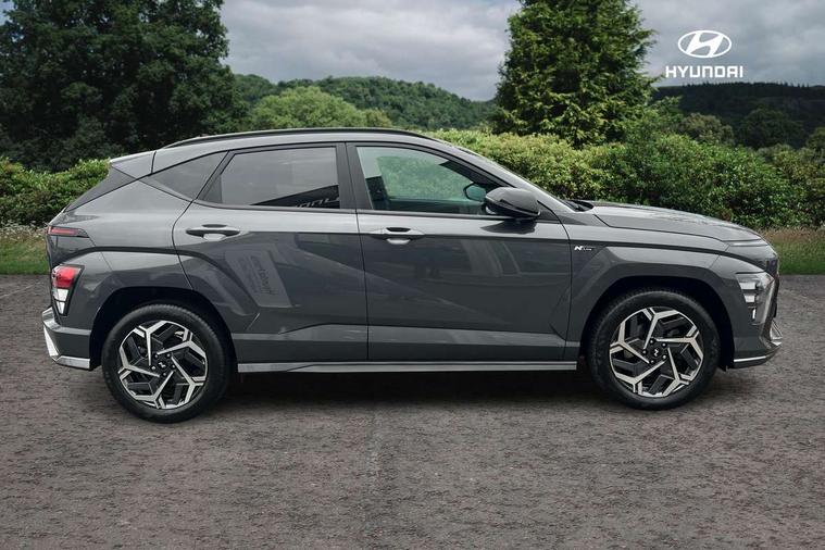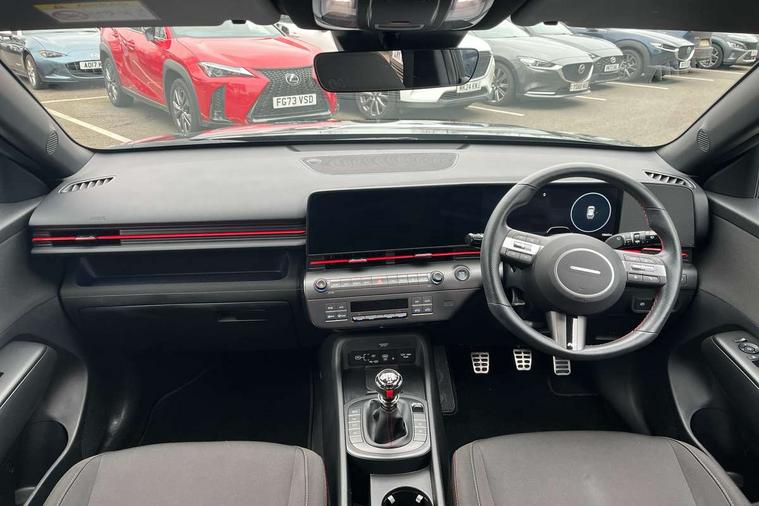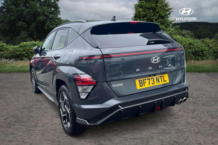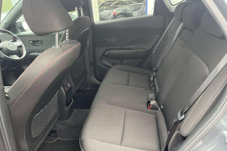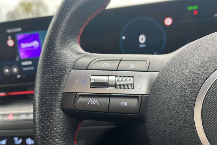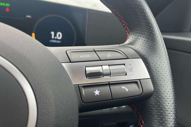 12.3" touchscreen centre console display satellite navigation with bluelink, live services and mapcare, Bluetooth connectivity with voice recognition, Cruise control, Digital clock, Driver status monitor (DSM), Driver supervision instrument cluster with 12.3" LCD display, eCall emergency call system, Feature on demand - Enabled, Forward collision avoidance assist (FCA 1.5) - Car, pededstrian, cycle and junction turning, Front parking sensor, Height adjustable power tailgate, Intelligent speed limit assist, Lane follow assist, Lane keep assist, Leading vehicle departure alert (LVDA), Parking system with rear camera and guidance system, PAS, Rear parking sensor, Roadside assistance, Smartphone integration compatible with Apple CarPlay and Android Auto, Windscreen washer fluid sensor and warning indicator, Wireless phone charging pad, 2 front USB C and 2 rear USB C charging points, DAB Digital radio, Speakers - Front, rear and tweeters, Steering wheel audio, phone and cruise controls, Auto dimming rear view mirror, Automatic headlights with dusk sensor, Automatic windscreen wipers with rain sensor, Body colour bumpers, Body colour exterior door handles, Body coloured wheel arch inserts, Door mirror LED indicator lights, Electric front windows with anti-trap mechanism and one touch control, Electric rear windows, Electrically adjustable and heated door mirrors, Full LED MFR headlights, Gloss black door mirrors, LED daytime running lights, LED upper and lower rear lights, Power folding door mirrors, Privacy glass - Rear windows and tailgate, Rear roof spoiler with integrated LED brake light, Rear side wing doors, Rear wiper, Roof rails, Solar glass with front door glass and windscreen, Tinted glass in front and rear doors, Windscreen auto defog function, 12V power outlet in front console, 2 zone climate control, 3 seat bench in 2nd row, 40/20/40 split folding rear seat, Adjustable head restraints, Aluminium pedals, Ambient lighting, Driver and passenger front seat pockets, Driver's seat lumbar support, Driver/passenger manual seat height adjustment, Driver/passenger sunvisors and illuminated vanity mirrors, Floor mats, Heated front seats, Heated rear seats, Heated steering wheel, Height/reach adjustable steering column, Isofix rear child seat fastenings, Leather wrapped steering wheel and gear knob, LED centre interior light, LED front interior light, Luggage compartment LED lighting, Luggage shelf, Metal paint effect interior door handles, N Line cloth upholstery, Parcel shelf, Rear centre armrest, Rear centre console with air vents, Single front passenger seat, Vertical adjustment rear head restraints, N Line exterior design pack - Kona, Trailer wiring package - Kona, Airbag - front, front side, curtain and centre front airbag, Anti-lock brake system (ABS), Childproof rear door locks, Downhill brake control, EBD + Brake Assist, Electric parking brake, Electronic stability control, Fasten seatbelt reminder, Fixed 3 point for second row centre passenger seatbelt, Front seatbelt pretensioners, Height adjustable front seatbelts, Hill start assist control (HAC), Passenger airbag deactivate switch, Rear seat alert, Traction control, Tyre pressure monitoring system, Alarm/immobiliser, Deadlocks, Folding key, Locking wheel nuts, Remote central locking, Smart key with keyless entry and engine start/stop button, Five year annual vehicle health checks, Temporary mobility kit (TMK),