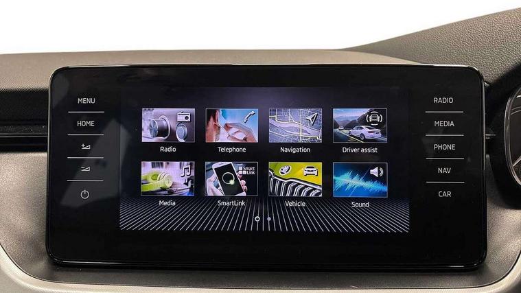Amundsen satellite navigation with 9.2" glass colour touchscreen with web radio, Bluetooth system, eCall emergency system, PAS, Rain and light assist with auto dimming rear view mirror, Speed limiter, Tailgate, Traffic sign recognition, Voice control system, 2 USB - C ports, 8 loudspeakers, DAB Digital radio, 3rd brake light, Automatic headlamp activation with Coming home and Leaving home feature, Body colour door mirrors and handles, Chrome grille surround, Chrome window surround, Dimming rear view mirror with black frame, Electrically adjustable and heated door mirrors, Front and rear electric windows, LED rear lights, Rear side wing doors, Rear wiper, Tinted windows, 12V Accessory socket in centre console, 3 seat bench in 2nd row, Chrome inner door handles, Cloth upholstery, Front head restraints, Glasses storage in roof liner, Height adjustable drivers seat, Height adjustable passenger seat, Instrument cluster with chrome painted decor ring, ISOFIX for rear passenger seat, Leather gearknob and handbrake lever, Manual lumbar support for front seats, Reading lights for driver and front passenger, Single front passenger seat, Sun visor with make up mirror for front passenger, Third rear headrest, Umbrella, 3x3 point rear seatbelts, Curtain airbags, Emergency call and proactive services, Front head and side airbags, Hill hold control, Manual rear child locks, One tone horn, Passenger airbag switch off function, Seat belt reminder for all seats, Alarm, Anti-theft wheel bolts, Remote central locking with 2 remote folding keys, SAFE function for remote central locking, Silver haptic decorative insert with glossy black hot stamping, Temporary space saver wheel,