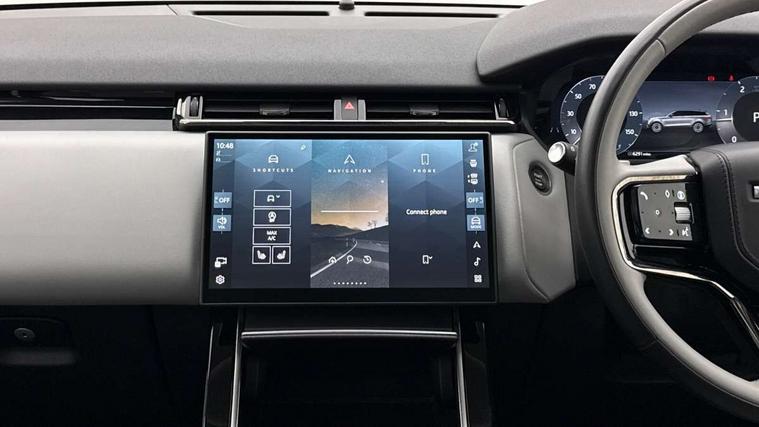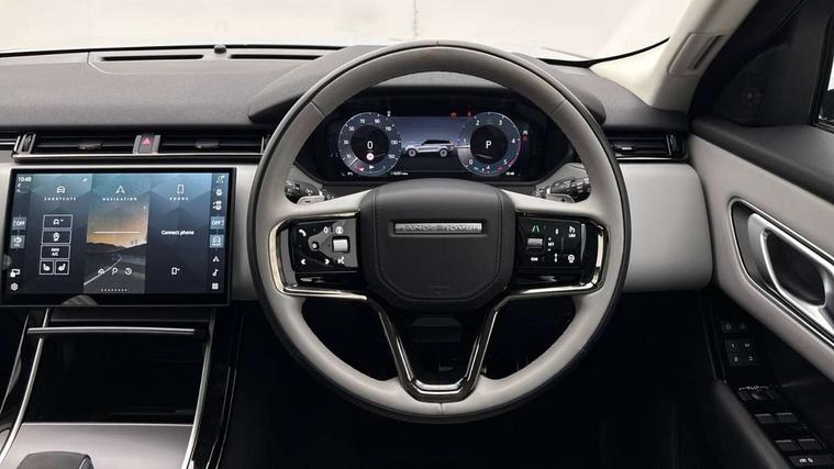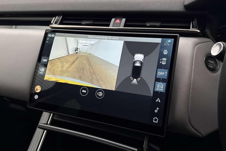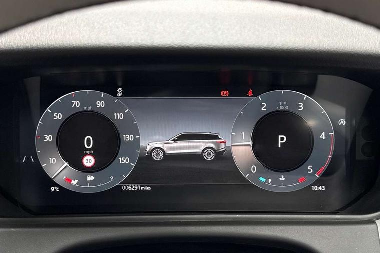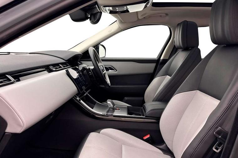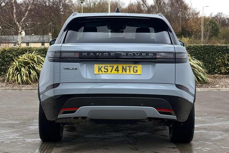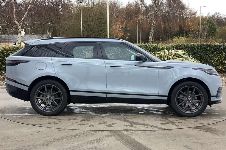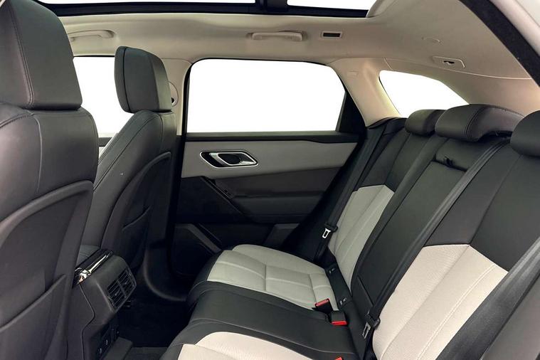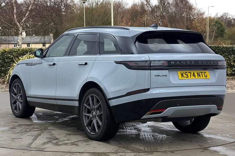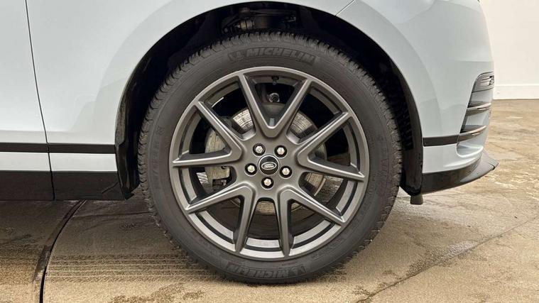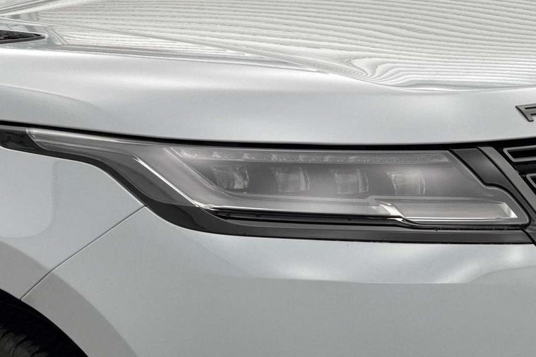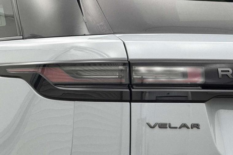 Adaptive cruise control with steering assist, Android Auto, Apple CarPlay, Blind spot assist, Bluetooth connectivity, Brake pad wear indicator warning light, Driver condition monitor, eCall emergency call system, Front and rear parking aid, InControl remote, Land Rover InControl apps, Lane keep assist, Pivi pro with connected navigation, Rear collision monitor, Rear traffic monitor, Service indicator, Speed proportional electronic power assisted steering (EPAS), Traffic sign recognition with adaptive speed limiter, Trip computer, Voice control system, Wireless device charging, 8 speed automatic transmission, Adaptive dynamics, All terrain progress control, Electronic air suspension, Open differential with torque vectoring by braking, Single speed transfer box, DAB radio, Steering wheel mounted controls, 3rd brake light, Acoustic laminated windscreen, Auto dimming interior rear view mirror, Automatic headlamp levelling, Automatic headlights, Body coloured bumpers, Boot protection plate, Electric windows with one touch open/close and anti trap, Flush deployable exterior door handles, Follow me home headlights, Heated rear window with timer, Heated washer jets, Heated windscreen, Metal front tread plates, Metal load space scuff plates, Pixel LED headlights with signature DRL, Power fold, auto-dimming, heated door mirrors with memory and approach lights, Rain sensor windscreen wipers, Rear animated directional indicators, Rear fog lights, Rear side wing doors, Rear wash/wipe, Tailgate/boot lid spoiler, Trailer stability assist, Velar badge, 3 seat bench in 2nd row, Ambient lighting, Bright metal pedals, Carpet mats, Driver/passenger sunvisors with illuminated vanity mirrors, Ebony morzine headlining, Electrically adjustable steering column, Extended leather upgrade, Heated steering wheel, Isofix system on outer rear seats, Loadspace cover, Overhead lighting console, Overhead stowage for sunglasses, Passive front headrests, Rear air vents, Rear centre headrest, Single front passenger seat, Twin front cupholders, Twin sliding front centre armrest, Online pack with data plan - Velar, Power socket pack 2 - Velar, 355mm Front and 325mm Rear brakes, 3x3 point rear seatbelts, Anti-lock braking system (ABS), Cornering brake control, Curtain airbags, Customer configurable autolock, Door side intrusion beams, Driver airbag, DSC - Dynamic Stability Control, Electronic brake force distribution, Electronic parking brake, Electronic traction control, Emergency braking, Front and rear seatbelt reminder, Hill descent control, Hill launch assist, Low traction launch, Passenger airbag, Power operated child locks, Rear airbags, Roll stability control, Side airbags, Tyre pressure monitoring system (TPMS), Global lock and unlock switch on driver door, Immobiliser, Intrusion sensor, Keyless entry, Lock only switch on front passenger door, Locking wheel nuts, Perimetric alarm, Remote central locking, All season tyres,
