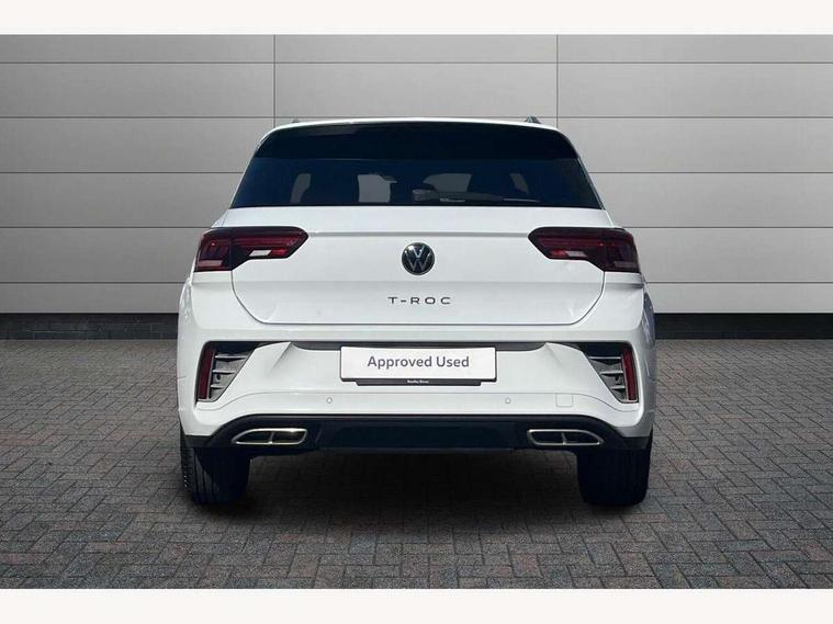 10.25" Digital cockpit pro, Bluetooth mobile phone interface, Driver alert system with fatigue detection, Driver tips and journey analysis, Emergency call service, Lane keeping system Lane Assist, Modified key software - reduce switch off time for key status change to Long no motion, Online services, Park assist including front and rear parking sensors, Service interval indicator, Tailgate/trunk lid release from outside, Think blue trainer driver tips and journey analysis, Warning sound and light for front seatbelts unfastened, Wireless app connect, Battery regeneration during braking, Start/stop function with battery regeneration, Diversity antenna for FM reception, Front and rear 6 speakers, Music playback - MP3, WMA and AAC files, Premium USB cable in choice of either Apple or Android smartphone compatibility, SD card slot, Simultaneous pairing of 2 compatible mobile devices, Title and cover art display, We Connect and We Connect Plus functionality, 3rd brake light, Auto dimming interior rear view mirror, Automatic hazard lights activation under emergency braking, Automatic headlight control with LED separate daytime running lights with coming/leaving home function, Extended roof spoiler, Exterior mirrors aspherical on driver side, convex on front passenger side, External USB type C socket and charging sockets, Front windscreen wiper with intermittent wipe and 4 position delay, Heated rear window, LED Plus headlamps, LED rear combination lamps, LED rear number plate lights, LED tail lamp rear comination lamps, Power windows with comfort operation and circuit breaker, R-Line design body coloured bumpers, Rain sensor, Rear exhaust tailpipe, Rear fog light on one side and reversing lights on both sides, Rear side wing doors, Rear wash/wipe with intermittent wipe setting, Remote electrically foldable door mirrors, puddle lights and reverse activated passenger's door mirror, 12V power socket in centre console, 3 rear head restraints, 3 seat bench in 2nd row, 4 load lashing points in luggage compartment, Air care climatronic air conditoning system with active combination filter and 2-zone temperature control, Black roof lining, Chrome plated radiator grille inserts, air vent surrounds and light switch surrounds, Door and side trim panel with leatherette insert, Drawer under drivers seat, Front + rear carpet mats, Front centre armrest, Front cupholders x 2, Front footwell illumination, Front reading light, Front scuff plates with R logo, Instrument lighting, white adjustable panel illumination, Interior ambient lighting and surround lighting, Interior light delay, Isofix child seat preparation, Leather gearshift handle, Load-through provision with cup holder when folded down ('Unsplit rear seat bench, split folding backrest, with centre armrest), Luggage compartment lighting, Single front passenger seat, Stainless steel pedals, Storage compartment in left and right luggage area, Storage compartment in rear doors, Storage compartments in driver and front passenger doors, Sunvisors with illuminated vanity mirrors, Variable boot floor, height adjustable and removable, Driver assistance pack - T-Roc, 3 point height adj front seatbelts + pretensioners, 3 point seatbelts in outer rear with ECE label, ABS, Child locks on rear doors, Driver and front passenger airbag with front passenger airbag deactivation, Driver and front passenger safety-optimised head restraints, Drivers seatbelt reminder, Electronic parking brake, Electronic Stability Control (ESC) inc EDL (Electronic Differential Lock) and ASR (Traction Control), Front and rear passengers curtain airbag system including front side airbags, Front assist with city emergency braking and pedestrian monitoring, Front seat side impact airbags, Hill start assist, Predictive pedestrian protection, Rear disc brakes, Single tone horn, Tyre pressure loss indicator, Volkswagen roadside assistance, Alarm with interior protection, Anti-theft alarm system with interior monitoring, backup horn, and towing protection, Remote central locking with SAFELOCK, radio remote control with 2 remote control folding keys, Trims for alloy wheels,
