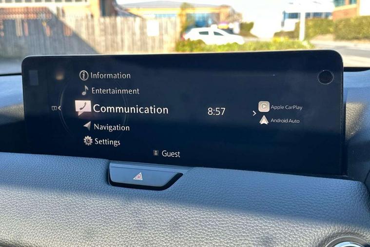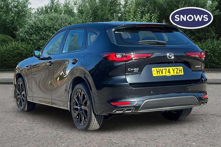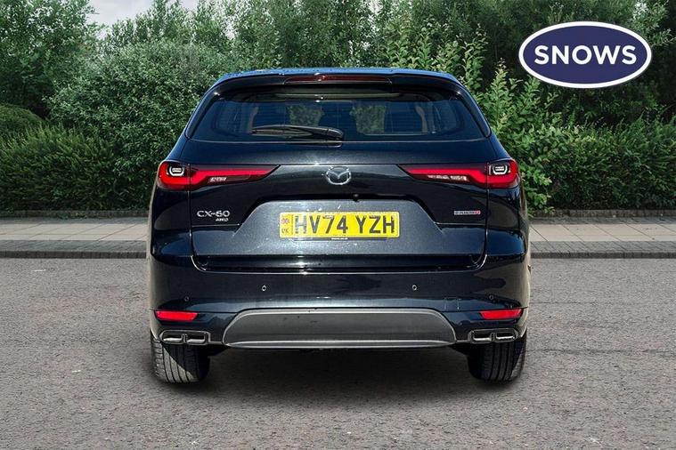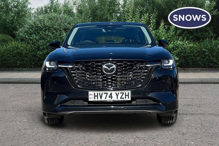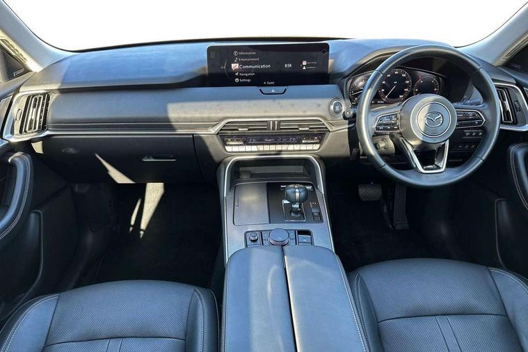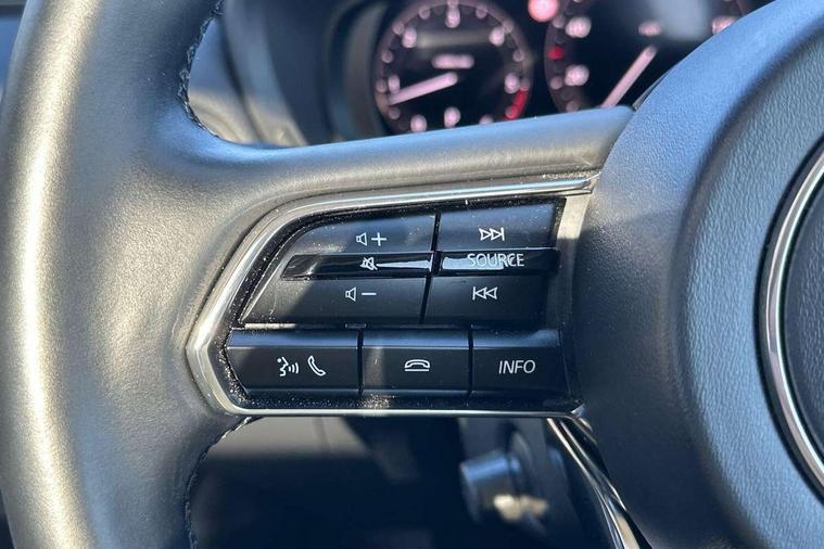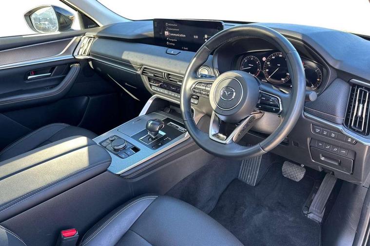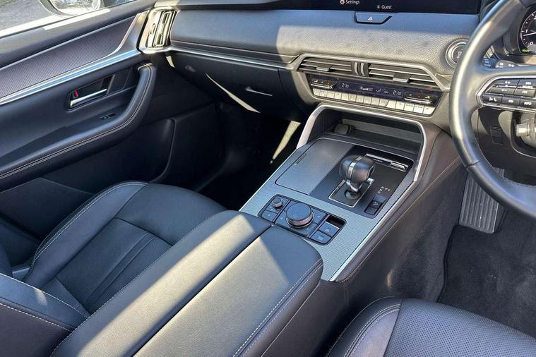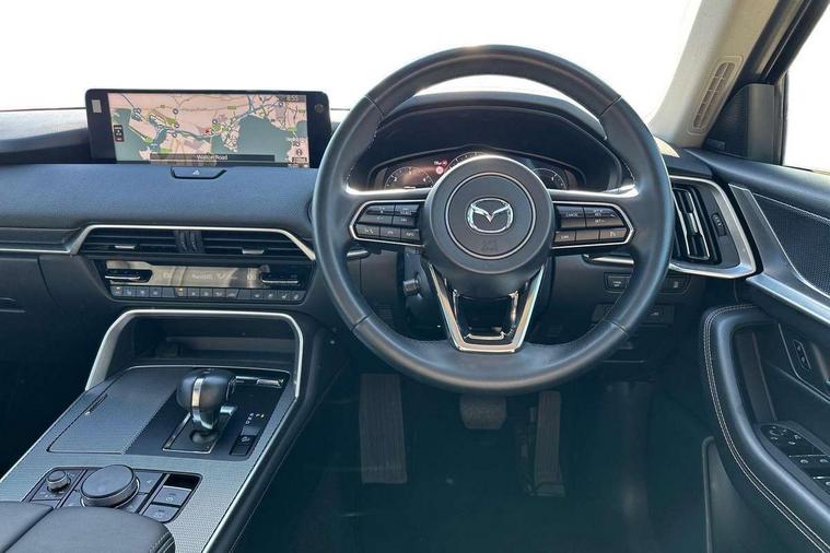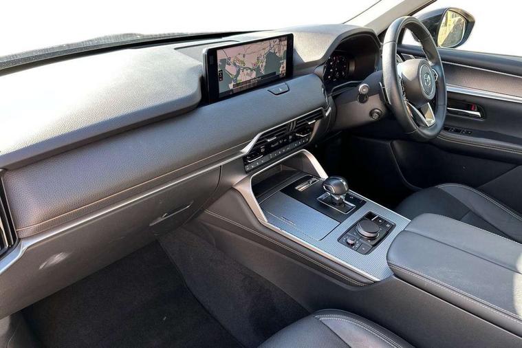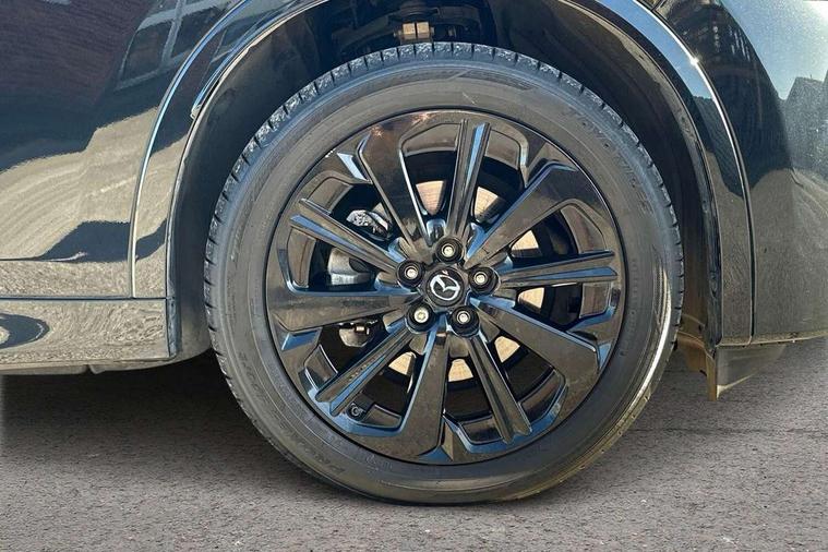 Emergency lane keeping with blind spot assist, Low washer fluid warning light, 12.3" Colour entertainment centre display with mazda connect infotainment, 12.3" TFT Colour display, Adjustable speed limiter, Blind spot assist, Blind spot monitoring with rear cross traffic alert, Cruise control, Distance alert system, Driver attention alert system, Driver Monitoring with personal identification, E-call with GPS, Emergency stop signalling system, Exit warning function, Front and rear parking sensors, Ingress / Egress support and automatic driver position guide, Integrated bluetooth, Intelligent speed assist, Kinematic posture control, Lane keep assist system (LAS) with Lane departure warning system (LDWS), Mazda Driver Personalisation System, Mazda Navigation System with european mapping, Multimedia Commander, PAS, Power lift gate with handsfree function, Power start/stop button, Reversing camera with static guide lines, Speed alert, Traffic sign recognition enhanced with mandated excessive speed warning, Trip computer, Windscreen projected colour active driving display, Wireless apple car play/android Auto, Internal Combustion Engine Sound Emulator, Mi-Drive (Normal, Sport, Off-road, Towing and EV mode), AM/FM and DAB radio, Bose surround sound system with 12 Speaker, Bose center point, Bass match and audio pilot technology, Steering wheel mounted audio/bluetooth controls, USB-C inputs (x2 front and x2 rear), Auto dimming driver's door mirror, Automatic headlight levelling, B-pillar and C-pillar garnishes in gloss black finish, Body colour roof spoiler, Body coloured bumpers, Body coloured wheel arch and side mouldings, Coming/leaving home lighting function, Dark plated headlight lense, Dark plating finish signature wing in front grille, Dark plating front side garnish, Differentiated front bumper design to accentuate the intake, Dusk sensing headlights, Electric front/rear windows with one touch auto up/down, Electrically adjustable, heated auto power folding door mirrors with memory, Frameless auto dimming interior rear view mirror, Front kodo turn signal, Front wiper de-icer, Gloss black door mirrors, Headlight washers, High beam control, Honeycomb radiator grille in piano black, LED 3rd brake light, LED headlamps, LED rear signature combination lamps, Rain sensing front wipers with adjustable sensitivity and speed, Rear side wing doors, Rear wiper, Roof pillars and roof lining finished in lighter colour to soften the overall look, Signature LED daytime running lights, Silver decoration panel, 12v power outlet - front, 12V socket in boot, 3 height adjustable rear headrests, 3 seat bench in 2nd row, 40/20/40 split folding rear seats with quick levers in the boot, Ambient lighting, Cargo net, Chrome interior trim accents with steering wheel centre bezel, surround of engine start / stop button and glove box handle, Door panel trim vinyl leather with armrest, Driver and front passenger two rear grab handles with rear coat hooks, Driver and front passenger visors with covered vanity mirror and driver ticket holder, Driver seat electric tilt, slide, recline, height and lumbar adjustment, Driver, front passenger and two rear door pockets, Driver/passenger front seatback pockets, Dual zone climate control air conditioning with rear air vents, Electric telescopic and tilt adjustment steering wheel, Featuring black vinyl leather dashboard trim with titanium coloured accents, Folding rear centre armrest with two cup holders, Front centre storage with two cupholders, Front down lamp with front and rear foot lamps, Front headrests, Front passengers seat electric slide, recline, height and lumbar adjustment, Front seat ventilation with 3-stage setting, Glovebox illumination, Heated front seats with 3 stage setting, Heated leather wrapped steering wheel, Heated outer rear seats with 3-stage setting, ISOFIX child seat anchorage points attached on outer rear seats, Karakuri tonneau cover, Leather upholstery, Leather wrapped gear shift knob, LED illumination luggage compartment, Paddle shift, Practical and spacious front centre armrest storage, Rear seat recline function for rear passenger comfort, Remote fold down rear seats, Remote pre-heating/cooling, Roof mounted sunglasses holder, Single front passenger seat, 3 point ELR front seat belts x2 with pretensioners, 3 point ELR rear seat belts, Active bonnet, Anti-lock braking system (ABS), Drivers knee airbag, DSC - Dynamic Stability Control, Electronic parking brake with auto disengage function and auto hold function, Front and rear curtain airbags, Front dual stage driver and single stage front passenger airbags, Front passenger airbag cut-off switch, Front side airbags, Front smart city brake support, Hill decent control, Hill launch assist, Manual rear child locks, Seatbelt reminder for driver/front passenger and rear seats, Traction control, Tyre pressure monitoring system (TPMS), Remote central locking with deadlocking and automatic door lock when driving, Smart keyless entry, Thatcham accredited alarm and immobiliser, Mesh metal film centre console panel, 20" Black metallic alloy wheels, Emergency tyre repair kit,