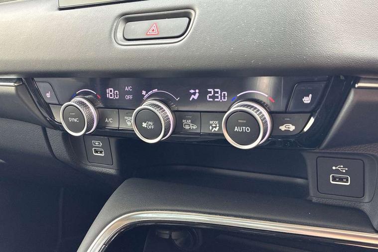 7" TFT instrument cluster, Adaptive cruise control, Adjustable speed limiter, Agile handling assist, BLIS (Blind Spot Information System) with Cross Traffic Monitor, Bluetooth hands free telephone connection, Drive modes select (Eco, normal and sport), eCall emergency system, Electric power steering, Emergency stop signalling system, Forward collision warning, Front parking sensors, Handsfree power tailgate with walkaway close, Honda CONNECT with navigation, 9" touchscreen, AM/FM/DAB/Apple Carplay and android auto, Idle stop, Intelligent speed limiter, Lane departure warning, Lane keep assist, Low speed following, Multi info display, Power meter, Rear parking sensors and rear view camera, Road departure mitigation, Tachometer, Traffic sign recognition, WiFi connectivity, Vehicle stability assist, 'Shark fin' mobile antenna, 2 USB sockets in rear, 2x USB Front socket (1 data & 1 charge), 4 speakers + 2 tweeters, Steering wheel mounted remote controls, Auto dimming rear view mirror, Auto folding door mirrors, Auto high beam, Automatic coming home lighting, Automatic headlights, Automatic rain sensing wipers, Body colour bumpers, Body colour tailgate spoiler, Body coloured door handles, Electric front and rear windows, Electrically adjustable and heated door mirrors, Exclusive styling in lower bumper black, Fog garnish paint emblem gray black lower door garnish with silver accent, Bumper skid garnish sharp silver, Front sequential turn, Front wiper de-icer, Headlight washers, Heated front windscreen, Heated rear window, High gloss side window surrounds, High level third brake light, LED daytime running lights, LED front fog lights, LED headlamps, Manual headlight levelling, Rear side wing doors, Rear wiper, Red and clean lens LED rear lights, Retractable/reverse auto tilt door mirrors, Variable front intermittent wipers, Windscreen shadeband, 3 rear headrests, 3 seat bench in 2nd row, 60/40 split folding rear seat, Ambient interior lighting, Cargo net hooks, Courtesy lights, Driver seat back pocket, Driver's seat height adjustment, Driver/passenger sunvisors with illuminated vanity mirrors, Dual automatic air conditioning, Front and rear map reading lights, Front head restraints, Front seat armrests, Heated front seats, Heated steering wheel, Isofix points, Luggage area under floor storage box, Magic seat flexibility system, Manual height/reach adjust steering wheel, Meter illumination light, Paddle shift controls, Passenger seat back pocket, Rear centre armrest, Rear ventilation, Silver interior door handles, Silver interior panels, Single front passenger seat, Smooth leather steering wheel, Tonneau cover, Trunk light, 3x3 point rear seatbelts, ABS+EBD+Brake assist, Anti-whiplash front headrests, Auto hold function, Collision mitigation braking system, Collision mitigation throttle control, Deflation detection system, Dual front SRS airbags, Electric child locks, Electronic parking brake, Front and rear curtain airbags, Front and rear safety belts with Emergency Locking Retractor, Front side airbags, Hill descent control, Hill start assist, Low speed safety system, Paddle deceleration control, Passenger SRS airbag cut-off device, Regenerative braking system, Door deadlocks, Honda super locks, Immobiliser, Keyless smart entry with push button start, Mirrors and windows key fob operation, Remote central locking with 2 remote folding keys, Security alarm, Tyre repair kit,