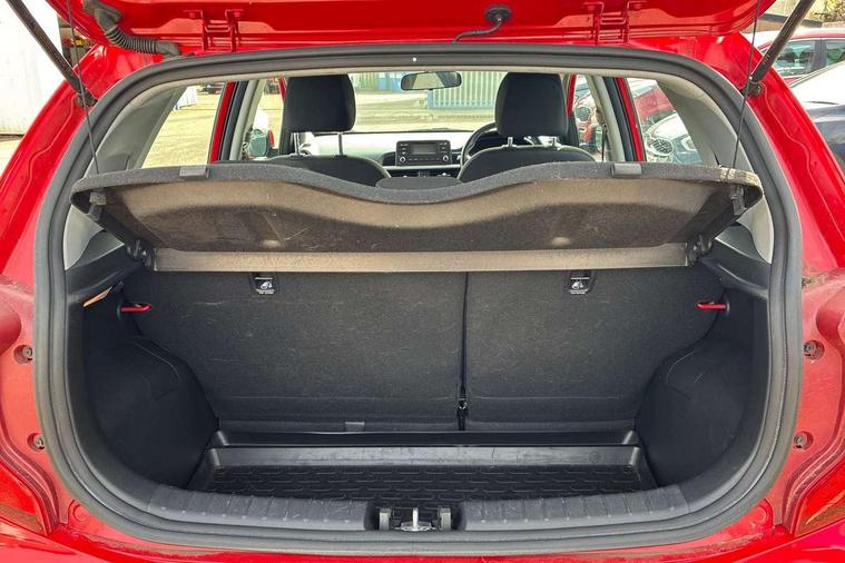 3.8" monochrome audio display with RDS, Colour information display, Digital clock, Emergency stop signalling system, External temperature gauge, Motor driven power steering, Tachometer, Trip computer, 4 speaker audio system, Bluetooth with music streaming, Steering wheel mounted controls, USB and auxiliary socket, Automatic headlights, Black radiator grille with chrome surround, Body colour bumpers, Body colour mirrors and door handles, Day/night rear view mirror, Daytime running lights, Electric adjustable heated door mirrors, Front and rear electric windows with drivers's auto up/down function, Headlamp levelling, Heated rear window, High mount brake light, MFR Multi - Focus Reflector headlights with black bezel, Rear fog lights, Rear wash/wipe, Tinted glass, Variable front intermittent wipers, Visible VIN plate, Welcome and follow-me home light functionality, 12V power point front, 3 x passenger assist grips, 60/40 split/folding 2nd row of seats, All round height adjustable headrests, Coat hooks, Cupholders in centre console, Driver and front passenger sunvisor with vanity mirror, Driver seat height adjust, Front cabin lights, Glovebox, High gloss lower centre fascia trim, door armrest and air vents, ISOFIX Child seat top tethers and anchor fixings, Leather trimmed steering wheel and gearshift, Luggage area light, Luggage area parcel shelf, Manual air conditioning, Passenger front seatback pockets, Premium cloth upholstery, Silver paint finished interior door handles, Slide/reclining front seats, Tilt adjustable steering wheel, 3x3 point rear seatbelts, ABS/EBD, Automatic unlocking of doors in case of impact, Dual front airbags, ESC + BAS + VSM + HAC, Front seatbelt height adjusters, Front seatbelt pretensioners + load limiters, Passenger airbag deactivate switch, Rear child proof door locks, Seatbelt warning, Side impact protection, Traction control, Twin curtain airbags, Twin front side airbags, Tyre pressure monitoring system, Anti theft alarm, Engine immobiliser, Folding key, Locking wheel nuts, Remote central door locking, 14" alloy wheels, Tyre mobility kit,