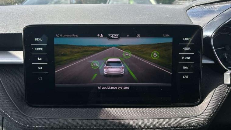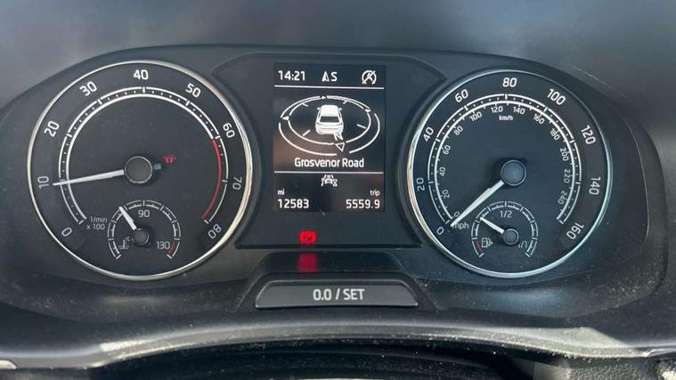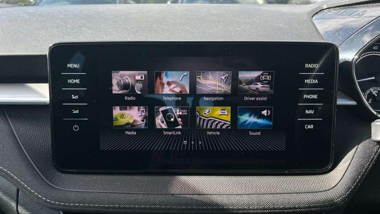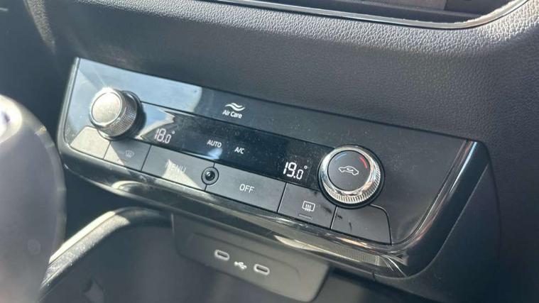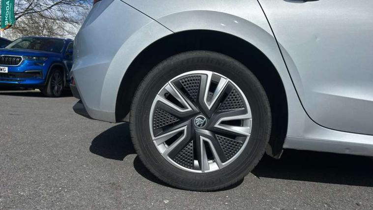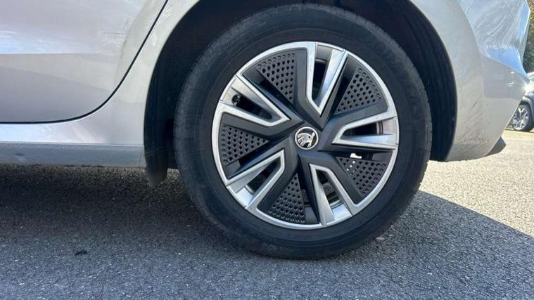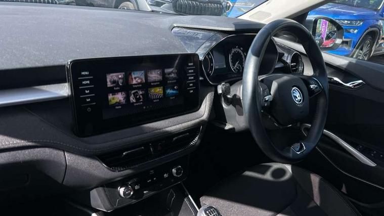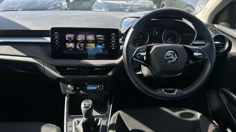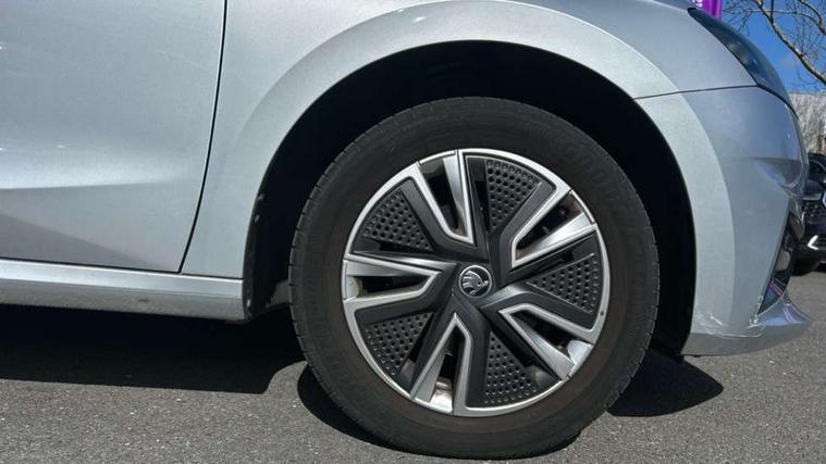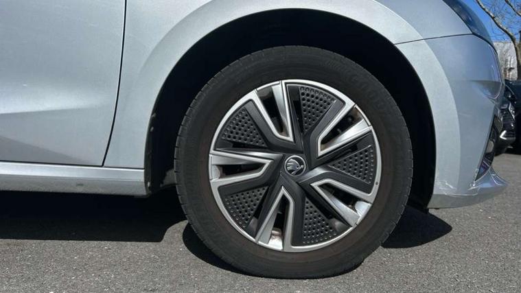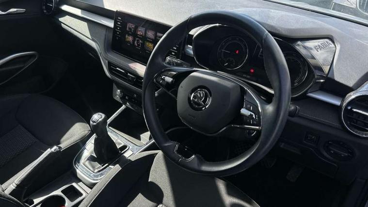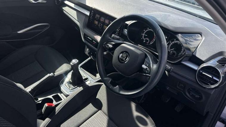 Bluetooth connection, Driver alert system - DAS, Electromechanical power steering, Exterior temperature gauge, Service interval indicator, 2x USB-C in the front (for data transmission and charging), 6 Speakers (4 in front and 2 in rear), Auxiliary socket for external MP3 player, DAB digital radio reception, Web radio, Auto dimming rear view mirror, Basic rear light, Body colour door mirrors, Body coloured bumpers, Chrome window surround, Door mirror integrated indicators, Electrically adjustable and heated door mirrors, Front and rear electric windows, Front window wiper intermittent control, Headlight range control - Automatic, Ice scraper in fuel cap, LED daytime running lights with coming and leaving home feature, Rear LED fog light, Rear side wing doors, Rear window wiper with washing nozzles, Roof mounted spoiler, SKODA tailgate lettering in chrome, Third brake light, 3 rear headrests, Backrest split and folding, Central console with fixed cup holder and storage box, Chrome handbrake release button, Comfort seats, Fabric upholstery, Front centre armrest, Gearshift knob/handle in leather, Hand brake lever handle in leather, Height adjustable front headrests, Height adjustable front seats, Height adjustable steering wheel, ISOFIX and TopTether anchorage points to the outer rear seats, ISOFIX and TopTether on the front passenger seat, Luggage compartment lighting, Manually adjustable lumbar support in front seats, Pollen filter, Rear seat bench unsplit, Removable cup holder, Single front passenger seat, Storm grey headlining, Sun visors with mirror and airbag label on passenger side, Textile floor mats, Ticket holder, Umbrella in drivers door, Ambient lighting pack 2 - Fabia Hatchback, 3-point height adjustable front seats belts with pretensioner and force limiter, Automatic warning lights in case of crash, Driver and passengers airbag with switch off function, e-Call+, ESC including ABS, MSR, ASR, EDS, HBA and XDS, Front and rear seat belt warning, FRONT ASSIST (AEB City and AEB Inter Urban), Front side airbags, Head airbags, One tone horn, Pedestrian protection, Three rear 3-points safety seat belts with pretensioner and force limiter including stop function for outer rear seat belts, Tyre pressure monitoring system, Anti-theft alarm system including immobiliser, interior monitoring, backup horn, and towing protection, Chrome edged air vents, Satin black door and side trim panel in front, Anti-theft wheel bolts protection, Super-low rolling resistance tyres,
