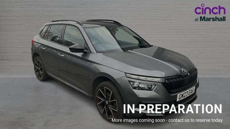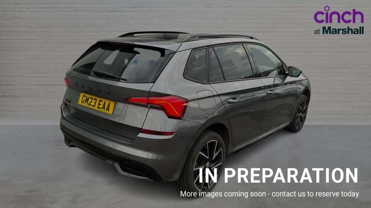 Amundsen satellite navigation with 9.2" glass colour touchscreen display, web radio, voice control and traffic sign recognition, Bluetooth system, E-call, Front assist system, Gesture control, PAS, Service indicator, Speed limiter, Wireless Smartlink for Apple CarPlay (wired for Android Auto), 8 Speakers, Auxiliary input socket, DAB Digital radio, Black door mirrors, Black radiator grille, Black rear diffuser, Body colour bumpers, Body colour door handles, Body colour roof spoiler, Boot lettering in black, Chrome grille surround, Dimming rear view mirror with black surround, Electrically adjustable and heated door mirrors, Fixed panoramic sunroof with black roof rails, Front and rear electric windows, Front sport bumper, Full LED headlights with adaptive front light system, cornering function, fog lights and dynamic indicators, Headlight range control, Heated rear window, High functionality rear led lights with dynamic indicators, KAMIQ Door sills, LED daytime running lights, LED third brake light, Light sensors, Monte carlo plaque, Privacy glass, Rain sensor, Rear fog lights, Rear side wing doors, Rear wiper, 12V Accessory socket in centre console, 3 seat bench in 2nd row, Aluminium pedals, Black ceiling for black/beige interior, Black roof lining, Chrome inner door handles, Cloth upholstery, Front head restraints, Glove compartment with illumination, Ice scraper, Isofix child seat fittings on outer rear seats, ISOFIX on front passenger seat, Leather gear lever, Manual lumbar support for front seats, Rake/reach adjustable steering wheel, Reading lights, Single front passenger seat, Sports seats, Sun visors with illumination on front passenger, Textile floor mats, Third rear headrest, Top tether for front passenger seat, Umbrella in driver's door, 3x3 point rear seatbelts, Airbags - driver and front passenger, ESP, Front passenger airbag deactivation switch, Front side airbags with curtain airbags, Hill hold control, Manual parking brake, Manual rear child locks, One tone horn, Rear disc brakes, Seatbelt reminder for driver an co-driver, Traction control, Tyre pressure monitor, Anti-theft alarm system with interior monitoring, backup horn, towing protection and remote central locking with SAFE system, Anti-theft wheel bolts, Electronic engine immobilizer, Chrome air vent surrounds, 18" Vega alloy wheels in black,