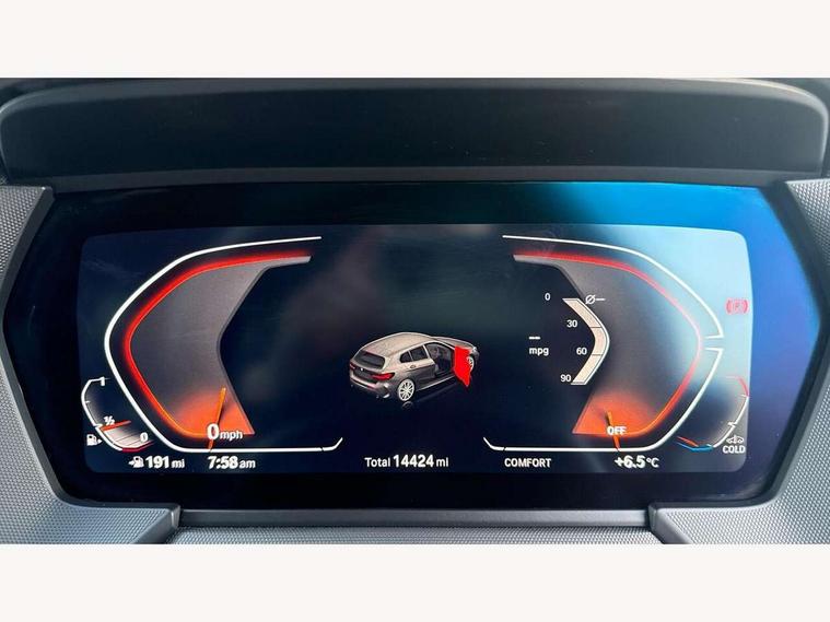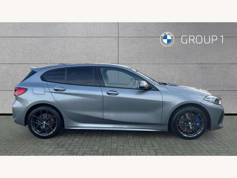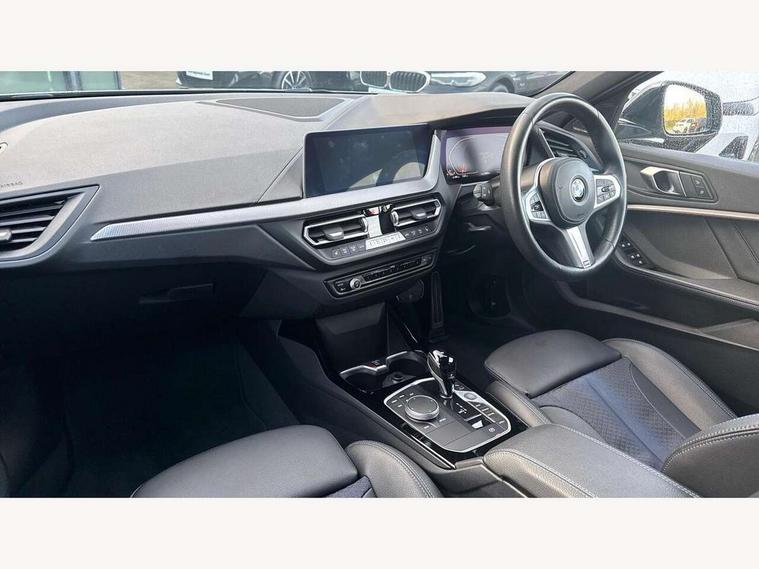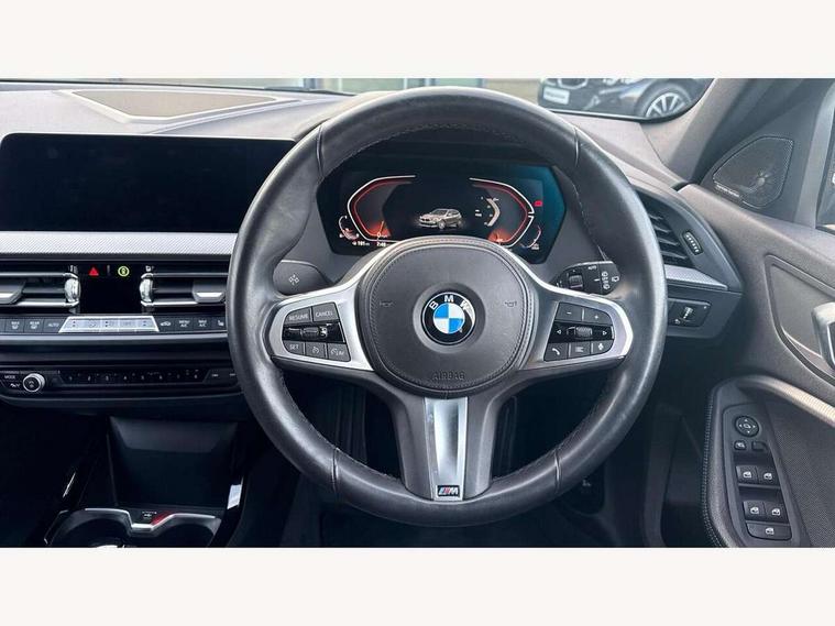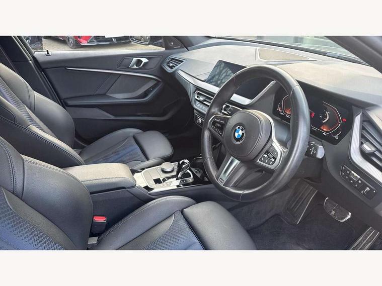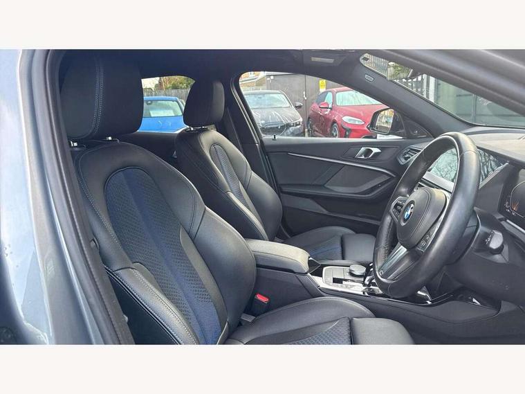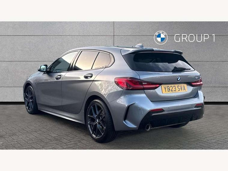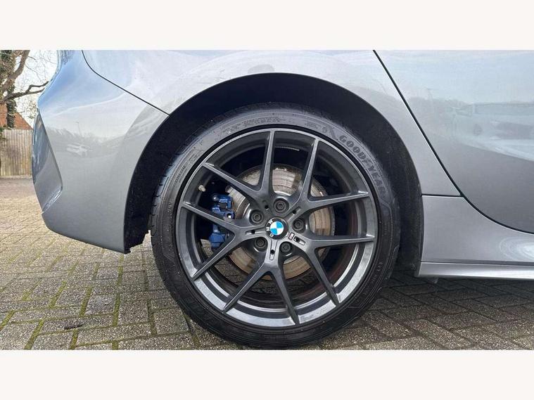 Active guard plus, Attentiveness assist, BMW ConnectedDrive online services, BMW Teleservices, Check Control warning system for monitoring of lights and door/luggage compartment open warning, Cruise control with speed limiter, Eco pro mode, Front axle single joint with specific axle kinematics to minimise drive influences on steering + provide increased rigidity agile driving behaviour, Integrated owners handbook, Lane departure warning system, Oil sensor for level and grade, On board computer, Optimum shift indicator, Personal Profile, Pull away assistant, Rigidly mounted rear subframe - Multi link construction with separate spring / damper configuration and excellent driving characteristics, Speed limit Info including no-overtaking indicator, Aluminium lightweight construction, Anti roll bar front and rear, Balancer shaft, Double VANOS twin scroll turbocharging system, Drive Performance Control, Electronic differential lock, High precision injection, M sport suspension, Petrol Particulate Filter, Twin tube gas filled shock absorbers with degressive characteristic curve, VALVETRONIC engine management, DAB Digital radio, Auto dimming rear view mirror, Automatic headlight beam throw control, Automatic windscreen wipers and automatic headlight, Body colour door handles, Body colour mirror caps, Body colour roof trims, Chrome 'M' logo side designation, Chrome exhaust twin tailpipes round 90mm in left, Chrome kidney grille frame with Satin Aluminium struts, Direction indicator side lights in exterior mirrors, Electrically adjustable exterior mirror with mirror adjustment switch on drivers armrest and aspheric on driver side, convex on passenger side, Fading support, Folding side mirrors with auto dimming/folding wing mirrors with auto dimming, Follow me home headlights, Front and rear bumper system with replaceable deformation elements, Front and rear electric windows with open and close fingertip control, anti trap facility and comfort closing, Front door sill finishers in black plastic with M designation in metallic look, Green tinted heat protection glazing, High gloss shadowline window frame, Recess cover mirror frames and B/C pillar embelisher trim, High level third brake light, Integrated front windscreen with washer jets, LED daytime running lights, LED eyebrow turn indicators, LED front fog lights, Lightweight engineering, Matt black air guide grilles, Matt black wheel arch trim, Model designation on electric bootlid, Nearside reverse light in rear light cluster, Preparation for high beam assistant, Rear fog lights, Rear side wing doors, Rear window wiper, Shark fin antenna, Trailer stabilisation logic, Visible VIN plate, Welcome lighting, 12V power socket in front centre console with blanking plug, 3 rear seat head restraints, 3 seat bench in 2nd row, 3 spoke sports leather steering wheel with black leather and stitching, pearl chrome decorative finish, specific M Badge, Anthracite headlining, Black boot net with lashing eyes, Cargo function on 2nd seat row, Child seat ISOFIX attachment for two outer rear seats and front passenger seat with anchorage points, Conditioned based service, Driver and front passenger backrest net on rear, Driver and front passenger seat heating, Driver side folding compartment in instrument panel, Folding rear clothes hook, Four grab handles integrated in roof lining, Front and rear door pockets with bottle holders, Front and rear side armrest integrated into door trim, Front armrest, Front sports seats, Glove compartment, Height adjustable front head restraints, Luggage compartment for bag hooks on left and right, foldable luggage compartment liner and four lashing eyelets, Manual adjust steering wheel, Multi-function controls for steering wheel, Single front passenger seat, Storage compartment in centre console, Storage compartment in luggage compartment, Stowage of the parcel shelf in luggage compartment trim, Sun visors with vanity mirrors and insert tab, Two front centre console cupholders, Two zone automatic air conditioning, Type C two USB ports in rear centre console, Velour floor mats, Additional interior lighting pack - 1 Series, BMW live cockpit professional pack- 1 Series, Connected pack professional - 1 Series, Interior lights pack - 1 Series, M Sport exterior styling aerodynamics pack - 1 Series, 2 tone horn, 3 point seatbelts on all seats, front pyrotechnic belt tensioners, stopper and belt force limiters, rear coded belt buckles, Airbags - Front driver/passenger, front and rear curtain head protection, front side, manual deactivation of front passenger airbag, Anti lock braking system (ABS) with brake assist, BMW emergency call, Brake drying, Braking readiness, Child proof locking system in rear door, City braking function, Comfort modes, Cornering brake control, Crash sensor activating of airbags, Unlocking doors, hazard warning lights, fuel cut off, interior lighting+activation of safety battery terminal clamp, Driver and front passenger seat belt security check, Dynamic stability control + (DSC+), Dynamic Traction Control - DTC, Electrically operated hand brake including automatic hold function, Front and rear disc brakes, Seatbelt warning, Side impact protection, Tyre pressure monitoring system, Warning triangle and first aid kit, Central locking switch for all doors, fuel filler cap and luggage compartment, Deadlocking function system to all doors, Drive away locking system on all doors and luggage compartment with de-activated in iDrive settings, Locking wheel bolts, Remote control with integrated key with High-gloss Black inlay and M designation and 1 button for open/ close lock, window, open luggage compartment, Start/stop button illuminated in centre console with keyless engine start and auto start stop deactivation button, Thatcham Cat.1 alarm and immobiliser, Wheel slip limitation close to the actuator (ARB), Contrast stitching on instrument panel, 18" Burnished M double spoke bi-colour alloy wheels finished in orbit grey - styl