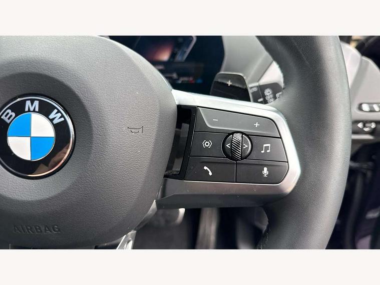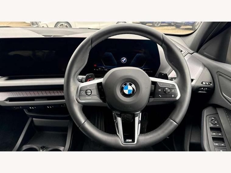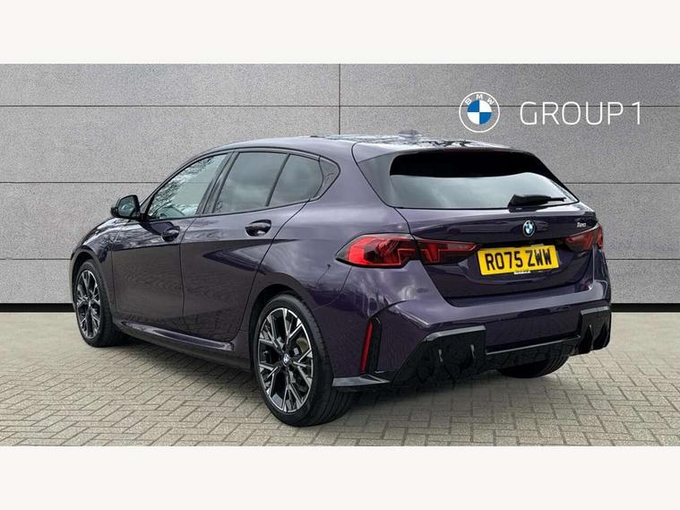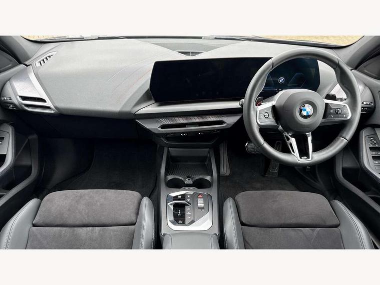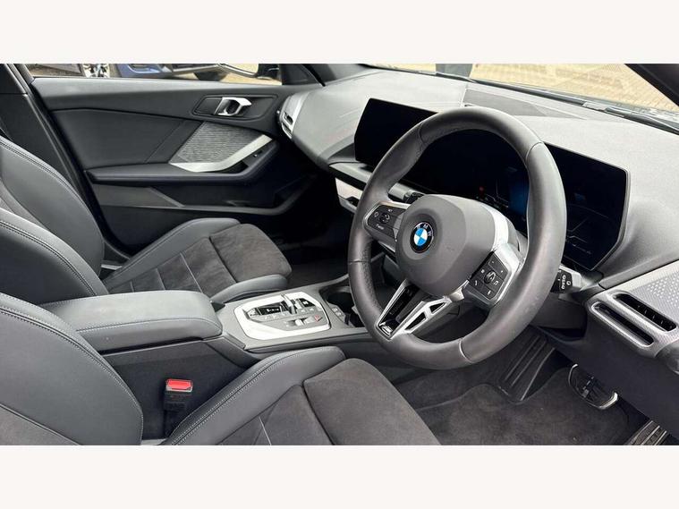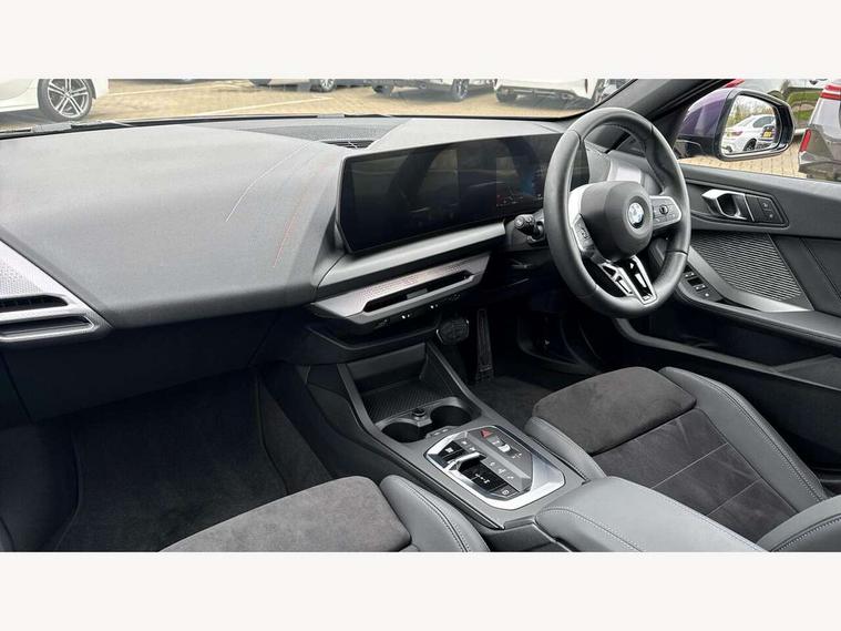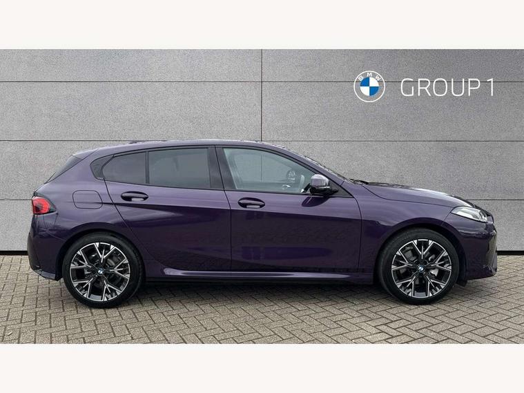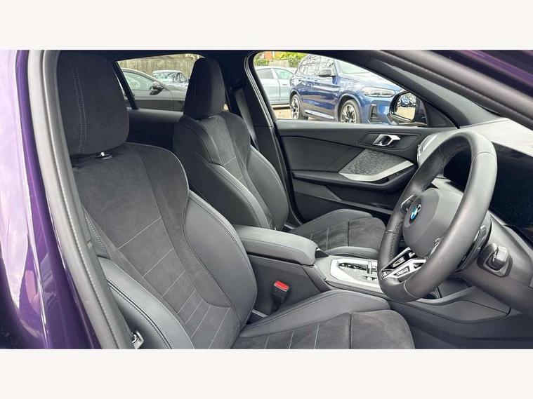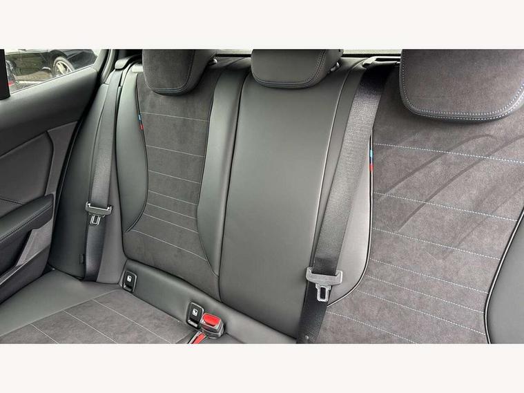 Active guard plus, Attentiveness assist, Bluetooth / WiFi interface for wireless connection of mobile terminal devices and audio streaming, BMW ConnectedDrive online services, BMW Live cockpit plus, BMW Teleservices, Check Control warning system for monitoring of lights and door/luggage compartment open warning, Eco pro mode, Electric power steering with Servotronic steering optimised at all speed ranges, Evasion assistant, Flat airvents in instrument panel with adjustable slats, Front and rear parking sensors, Front axle single joint with specific axle kinematics to minimise drive influences on steering + provide increased rigidity agile driving behaviour, Gearshift time display in manual mode, Integrated owners handbook, Left turn warning with brake function, My modes (Personal / Efficient / Sport), Oil sensor for level and grade, On board computer, Optimum shift indicator, Park assist including reversing assistant, lateral parking aid and reversing assist camera, Personal e-SIM, Personal Profile, Pull away assistant, Rigidly mounted rear subframe - Multi link construction with separate spring / damper configuration and excellent driving characteristics, Speed limit Info including no-overtaking indicator, Speed limiter, 49 litre fuel tank, Aluminium lightweight construction, Anti roll bar front and rear, Balancer shaft, Double VANOS twin scroll turbocharging system, Drive Performance Control, Electronic differential lock, Electronic selector lever, High precision injection, M Adaptive suspension, Petrol Particulate Filter, Steptronic transmission with double clutch, Twin tube gas filled shock absorbers with degressive characteristic curve, VALVETRONIC engine management, DAB Digital radio, Auto dimming rear view mirror, Automatic windscreen wipers and automatic headlight, Body colour door handles, Body colour roof trims, Chrome 'M' logo side designation, Chrome exhaust twin tailpipes round 90mm in left, Chrome kidney grille frame with Satin Aluminium struts, Direction indicator side lights in exterior mirrors, Electrically adjustable exterior mirror with mirror adjustment switch on drivers armrest and aspheric on driver side, convex on passenger side, Exterior M sport design elements, Fading support, Folding side mirrors with auto dimming/folding wing mirrors with auto dimming, Follow me home headlights, Front and rear bumper system with replaceable deformation elements, Front and rear electric windows with open and close fingertip control, anti trap facility and comfort closing, Front bumper panel with M specific design in vehicle colour with inserts in black high gloss, Front door sill finishers in black plastic with M designation in metallic look, Green tinted heat protection glazing, Heated rear window, High gloss black exterior mirrors, High gloss shadowline window frame, Recess cover mirror frames and B/C pillar embelisher trim, High level third brake light, Integrated front windscreen with washer jets, LED daytime running lights, LED eyebrow turn indicators, LED front fog lights, LED Headlights, Lightweight engineering, Matt black air guide grilles, Matt black wheel arch trim, Model badge on tailgate right, Nearside reverse light in rear light cluster, Preparation for high beam assistant, Rain sensor, Rear bumper panel with M-specific design in vehicle colour with inserts in black high gloss, Rear fog lights, Rear side wing doors, Rear window wiper, Shark fin antenna, Side sill covers with M specific design in body colour, Trailer stabilisation logic, Visible VIN plate, Welcome lighting, 12V power socket in front centre console with blanking plug, 3 rear seat head restraints, 3 seat bench in 2nd row, 3 spoke sports leather steering wheel with black leather and stitching, pearl chrome decorative finish, specific M Badge, Anthracite front and rear floor mats, Anthracite headlining, Black boot net with lashing eyes, Cargo function on 2nd seat row, Child seat ISOFIX attachment for two outer rear seats and front passenger seat with anchorage points, Conditioned based service, Driver and front passenger backrest net on rear, Driver and front passenger seat heating, Driver side folding compartment in instrument panel, Folding rear clothes hook, Footrest and pedals in black plastic, Four grab handles integrated in roof lining, Front and rear door pockets with bottle holders, Front and rear side armrest integrated into door trim, Front armrest with storage compartment, Gearshift paddles on steering wheel, Glove compartment, Height adjustable front head restraints, Luggage compartment for bag hooks on left and right, foldable luggage compartment liner and four lashing eyelets, Manual adjust steering wheel, Multi-function controls for steering wheel, Rear seat backrest with manual 60:40 split folding with 3 top tether clips integrated on rear of seat panels, Single front passenger seat, Storage compartment in centre console, Storage compartment in luggage compartment, Stowage of the parcel shelf in luggage compartment trim, Sun visors with vanity mirrors and insert tab, Two front centre console cupholders, Type C two USB ports in rear centre console, Upper retaining strap integrated into backrest rear panels, Connected pack professional - 1 Series, Interior lights pack - 1 Series, M Sport exterior styling aerodynamics pack - 1 Series, 2 tone horn, 3 point seatbelts on all seats, front pyrotechnic belt tensioners, stopper and belt force limiters, rear coded belt buckles, Airbags - Front driver/passenger, front and rear curtain head protection, front side, manual deactivation of front passenger airbag, Anti lock braking system (ABS) with brake assist, BMW emergency call, Brake drying, Braking readiness, Child proof locking system in rear door, Comfort modes, Cornering brake control, Crash sensor activating of airbags, Unlocking doors, hazard warning lights, interior light, safety battery terminal, Driver and front passenger seat belt security check, Dynamic stability control + (DSC+), Dynamic