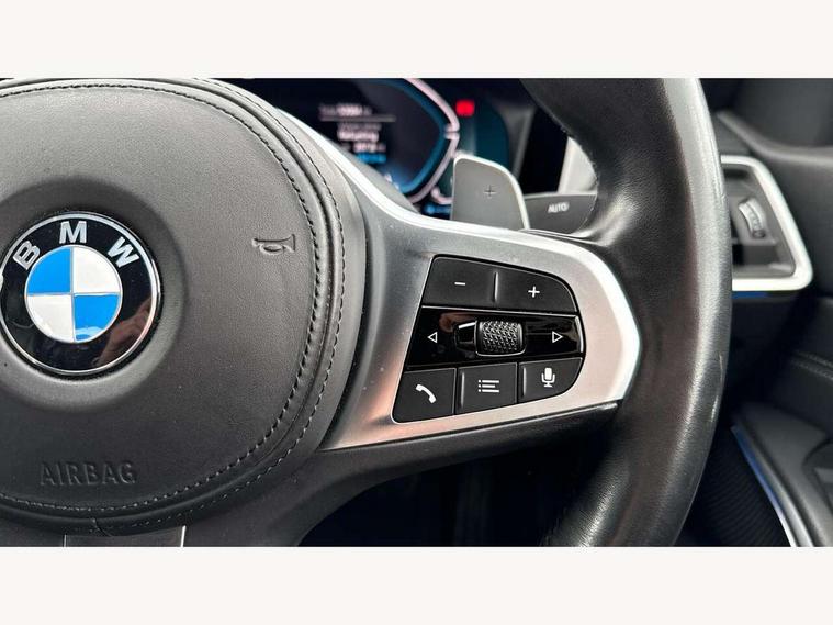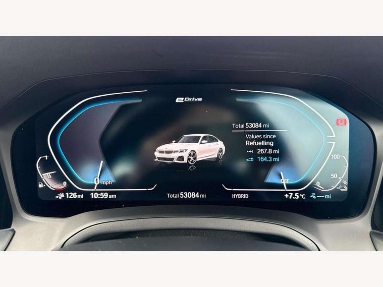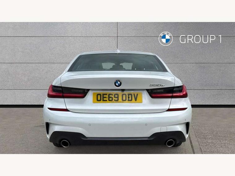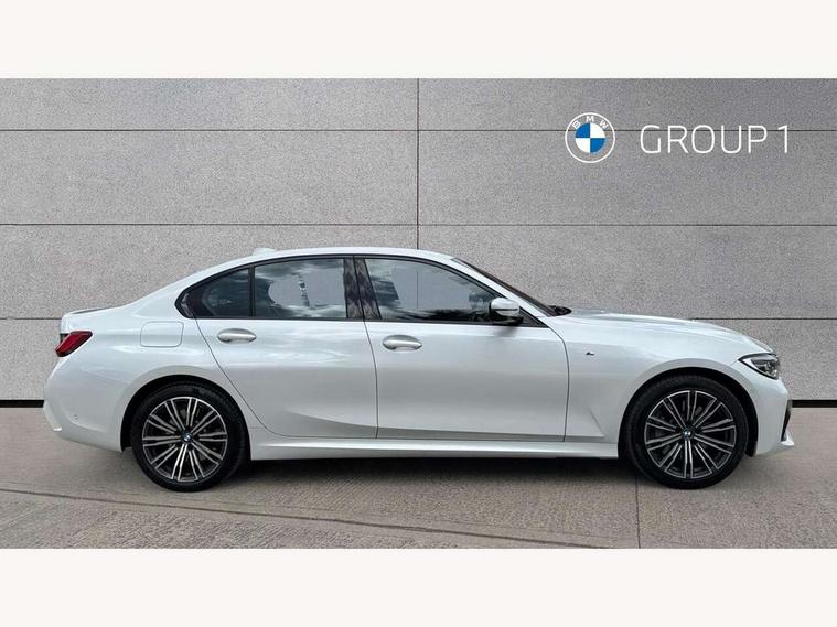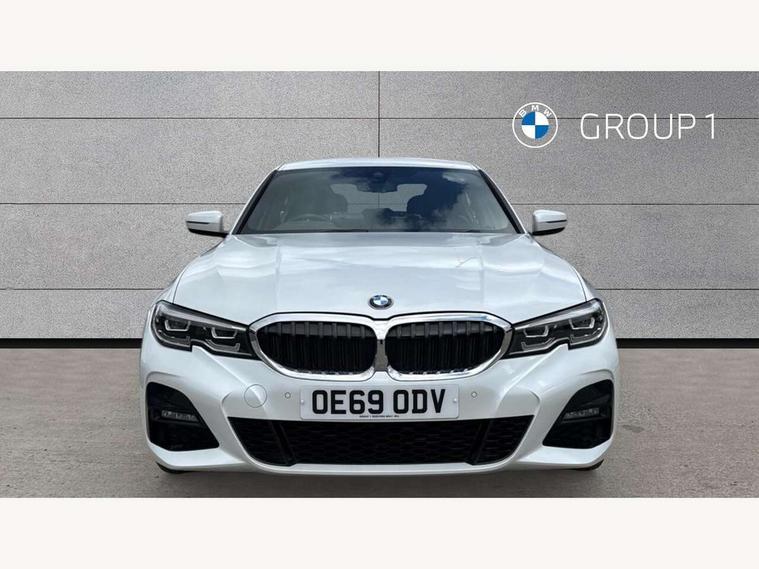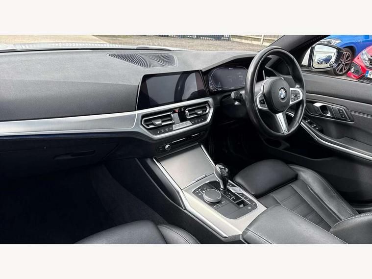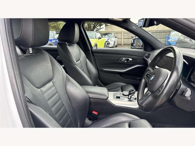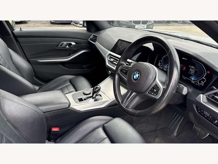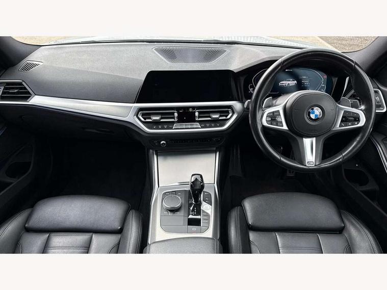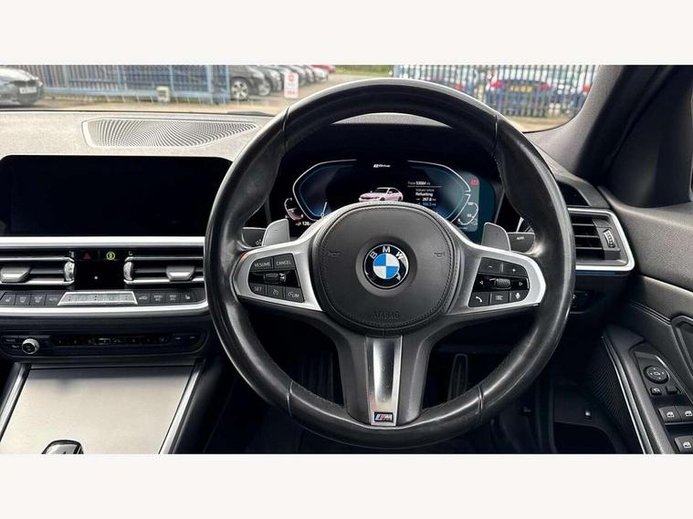Active guard plus, Attentiveness assist, Auto start-stop, BMW ConnectedDrive online services, BMW iDrive controller on centre console, BMW Live Cockpit Professional sat nav system including 10.25" high resolution display and Intelligent Voice Assistant, BMW service history, BMW Teleservices, Brake pad wear indicator in front and rear, Check Control warning system for monitoring of lights and door/luggage compartment open warning, Condition based service, Electric power steering, Electric power steering with Servotronic steering optimised at all speed ranges, Instrument cluster with speedometer with mph readout, tachometer, fuel gauge and oil temperature gauge, Integrated owners handbook, Oil sensor for level and grade, warning by check control system, On board computer - average speed+fuel consumption, service interval, clock/date, odometer/trip meter, outside temperature display and ice warning, Optimum shift indicator, Personal Profile - automatic lock when driving away selectable, Balanced 50/50 weight distribution, Battery cut-out switch, Drive performance control - ECO PRO, comfort and sport modes, Electronic differential lock control (EDLC), Sport automatic transmission with steering-wheel mounted gearshift paddles and launch control, Stroke dependent dampers, DAB tuner, Electronic service booklet, Acoustic glazing, Active airstream chrome frame kidney grille with 8 high gloss black vertical slats, Automatic headlight beam throw control with load dependent regulating reaction, dynamic compensation of braking dive and acceleration squat, Black roof mouldings, Body colour - fuel filler flap, front and rear bumpers, door handles and mirror caps with integrated turn indicator + bottom segment in matt black, Dynamic brake lights, Electric windows - front and rear, with open/close fingertip control, anti-trap facility and comfort closing, Exhaust tailpipe - split left and right, Extended LED headlights, Exterior mirrors - electrically folding with anti-dazzle, Fading support, Front and rear bumper system with replaceable deformation elements, Front black door sill finishers with BMW designation, Green tinted heat protection glazing, High gloss shadow line exterior trim, Interior rear view electrochromatic mirror with automatic anti dazzle function, LED front fog lights, Lightweight engineering, M designation on front side panels, left and right, Matt black exterior B pillar, Model designation on right side of tailgate, Rain sensor with automatic headlight activation, Rear wiper, Shark fin antenna, Two part LED tailights in L-shape with components in smoked glass, brake light, LED turn indicator and rear fog light, Visible VIN plate, Welcome lights in interior and door handle area, Windscreen wipers with integrated washing jets, 12V power socket in front storage compartment, 2 front cupholder in centre console with clamping elements and matt black inlay, 3 rear seats with non folding headrests with 3 point seat belts, 3 zone automatic air conditioning, 4 pieces lashing eyelets in luggage compartment, 40:20:40 split folding rear seat with loading system, Ambient lighting with welcome carpet light, Anthracite headlining, Armrest integrated in front and rear door trim + front centre console armrest, Centred top Luggage compartment lights, Four grab handles integrated in roof lining, Front and rear door exit lighting (left / right), Front and rear door pockets, Front and rear reading lights, Front and rear velour floor mats, Front head restraints, Front sport seats, Heated driver and front passenger seats, Height adjustable mechanically and infinitely variable steering column, Illuminated armrest storage compartment, Illuminated glove compartment with separate small compartment, Interior lighting - front centre over interior mirror with soft light, rear centre and front and rear footwell lighting, M Sport multifunction leather steering wheel, Make-up mirror lights, Rear centre armrest with 2 cupholders, Rear centre console with storage compartment and ventilation grille, Sunvisors with vanity mirrors and ticket pocket, Toolkit located in luggage compartment, Connected pack professional - 3 Series Saloon/Touring, M Aerodynamics pack - 3 Series Saloon/Touring, 2 tone horn, BMW emergency call, Brake energy regeneration, Braking pre-tensioning, Child proof locking system in rear door, Child seat ISOFIX attachment rear outer seats, Coasting in idle in ECO PRO mode, Crash sensor activating of airbags, Unlocking doors, hazard warning lights, interior light, safety battery terminal, Driver and front passenger side airbags, integrated in the door side seat backrest bolsters for all seat variants, Driver/Front Passenger airbags, Dry braking, Dynamic brake control, Dynamic stability control + (DSC+) - Anti-lock Braking System (ABS) with brake assist and cornering brake control + Automatic Stability Control (ASC), Dynamic Traction Control - DTC, Electric parking brake including automatic hold function and automatic release of the parking brake when driving off, Front passenger manual airbag deactivation, Head airbags for all 4 outer seats, Hill start assist, Seat belt security check for driver and front passenger, Side impact protection, Three 3 point seat belts on all seats including front belt stopper, pyrotechnic belt tensioners and belt force limiters, Tyre pressure monitoring with three level warning strategy, Ventilated front and rear disc brakes, Warning triangle and first aid kit, Alarm system (Thatcham 1) with remote control and electronic engine immobiliser, Central locking switch for all doors, fuel filler cap and luggage compartment, Remote control with integrated key one button open/close vehicle and windows, sole opening of the luggage compartment lid and panic mode, Start/stop button with Comfort Go keyless engine start and auto Start/stop deactivation button, Vehicle key with M specific designation, Reduced rolling resistance tyres,