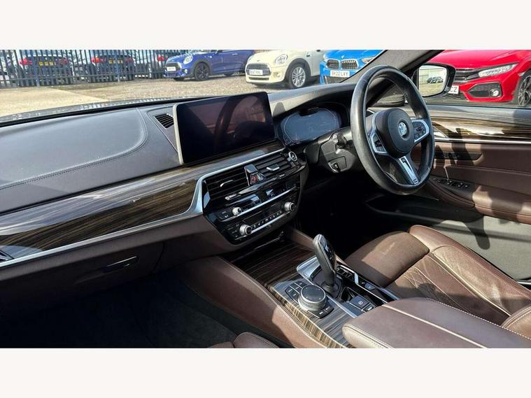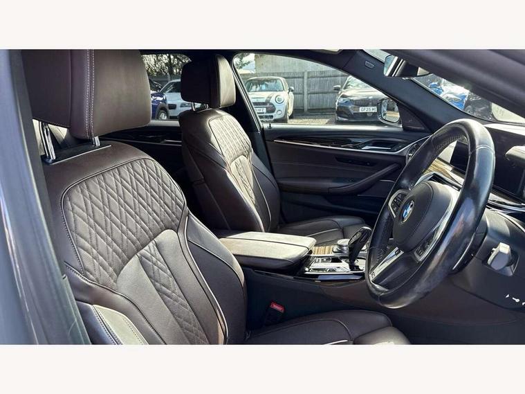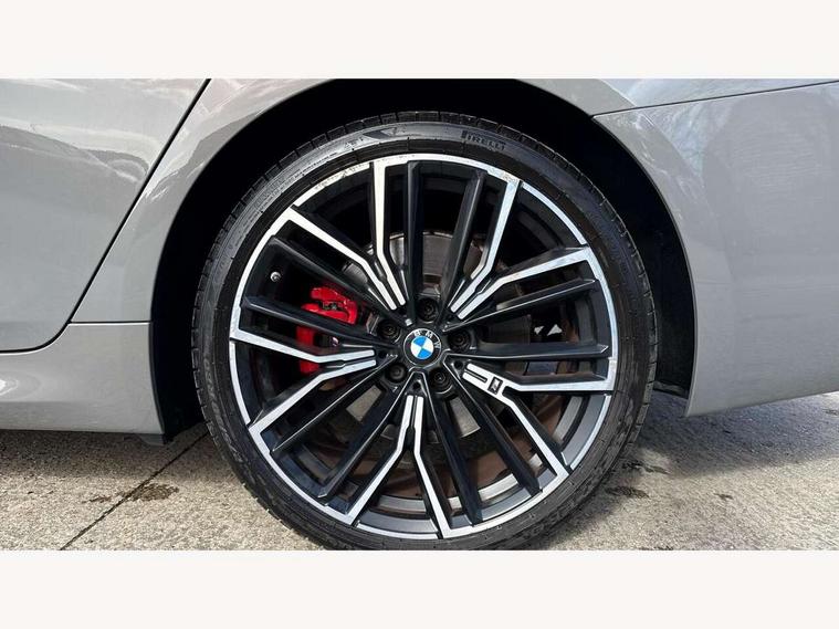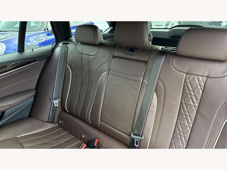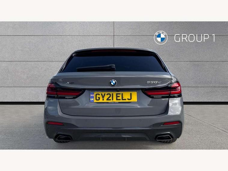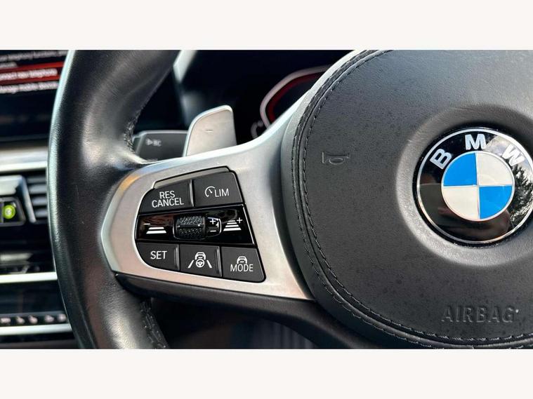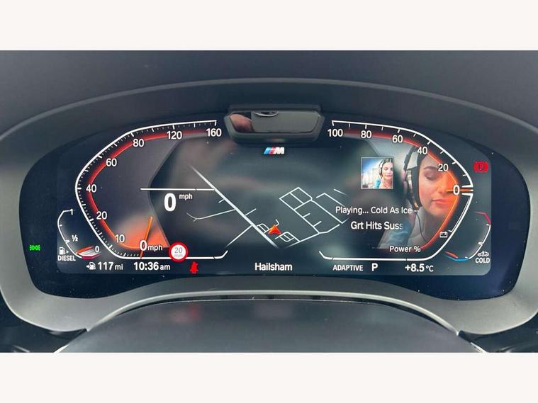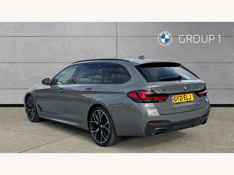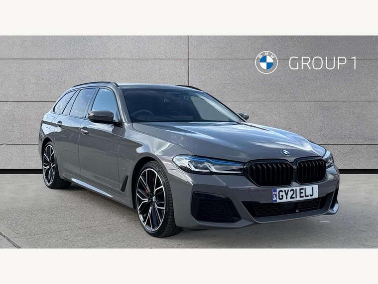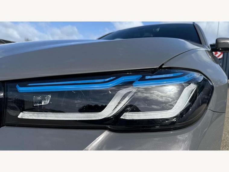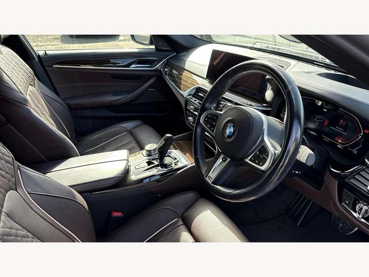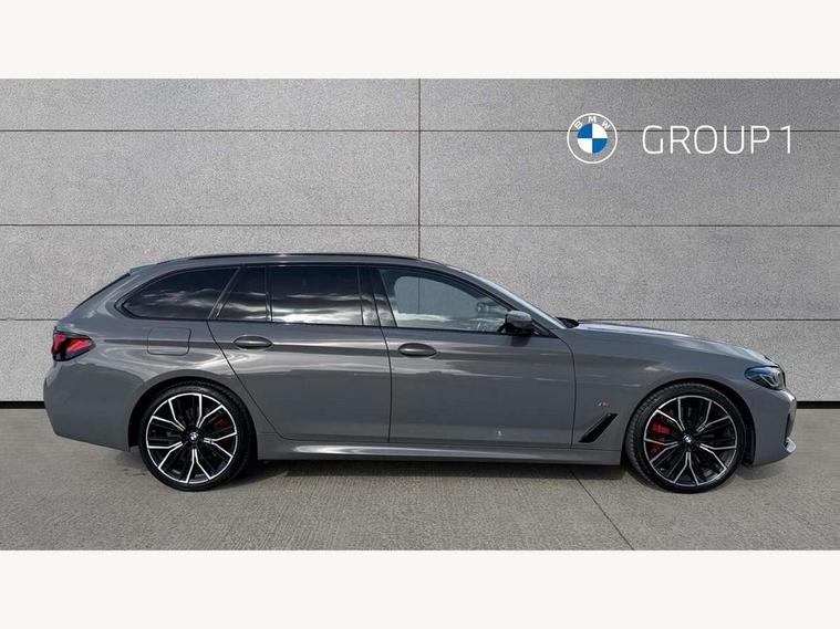 32GB hard disc drive (HDD) memory, Active Guard, BMW ConnectedDrive online services, BMW Live Cockpit Professional sat nav system with 12.3" instrument display and high resolution control display, BMW Teleservices, Brake pad wear indicator, Cruise control with brake assist, Driving experience switch, Electric boot lid - electrically opening/closing rear tailgate, Electric Power Steering (EPS) with Servotronic, iDrive touch controller with shortcut buttons, Intelligent emergency call, Multifunctional instrument panel, Oil sensor for level and grade, On board computer inc. average speed, fuel consumption, liquid crystal Info display, journey computer, outside temperature display, personal profile, On-board diagnosis - OBD, Powered by Operating System 7.0, Service interval indicator, Speed limiting function, Stop/start button, 48V Mild hybrid technology, Diesel particulate filter, Drive performance control with ECO PRO comfort + sport mode, Engine cover with twin turbo designation, M sport suspension, Steptronic sport transmission with gearshift paddle switches on steering wheel, DAB Digital radio, Favourite buttons, Acoustic glazing, All round anti-corrosion system, Automatic windscreen wipers and automatic headlight, Automatically dimming rear view mirror, BMW Individual high gloss shadow line includes exterior mirror frame, window frame surround, B pillar finish, air breather in high gloss black, BMW Individual high gloss shadow line roof rails, Body colour door handles, Body coloured bumpers, Door handle illumination, Dynamic brake lights with LED technology, Electric front and rear windows with fingertip open/close + anti-trap facility and comfort closing function, Electrically adjustable and heated exterior mirrors includes integrated direction indicators and automatic parking function, Folding exterior side mirror with auto- dimming, Follow me home headlight function, Heated windscreen washer jets, High gloss black active air stream kidney grille, Independent opening for tailgate window, LED daytime running lights, LED third brake light, M designation on front side panels, left and right in chrome, Trapezoidal visible exhaust tailpipes, xDrive designation on tailgate, 12V power socket in front and rear, 40/20/40 split folding rear seats with additional mechanism in luggage compartment, Armrest - front and rear integrated door trim, centre console includes storage compartment, rear centre includes 2 cupholders, Child seat ISOFIX attachment with rear outer seats includes top tether, Cup holders (2 front and 2 rear), Front and rear footwell lights, Front reading lights, Height and length adjustable steering column and activation via lateral lever on the steering column, Lockable glove compartment with light, M door sill finishers, M specific pedals, M specific velour floor mats, Multifunction controls for leather steering wheel, Rear headrests, Retractable luggage compartment dividing net, Three spoke sport M leather steering wheel, Ambient lighting pack - 5 Series, Connected package professional - 5 Series, M Aerodynamic pack - 5 Series, Airbags - driver/front passenger, rear and side, first and second row seats head airbags, front passenger seat airbag deactivation + knee airbag, Anti-lock braking system (ABS), Automatic Stability Control (ASC), Brake assist function, Brake energy regeneration, Cornering brake control (CBC), Crash sensor activating central locking release, hazard warning lights, fuel cut off and interior lighting, Deformation zones - front and rear with door reinforcements and bumpers up to 2.5 mph, DSC - Dynamic Stability Control, Dynamic brake control, Dynamic Traction Control - DTC, Electromechanical parking brake with automatic drive away release and auto hold function, Electronic brake force distribution, Engine drag torque control, Front and rear brake discs with interior ventilation, Front head restraints with anti-whiplash, Hill start assist, M Sport brakes in high gloss blue painted brake callipers with M designation, Mechanical child proof lock on rear doors, Passive protection for pedestrians, Side impact protection, Three point seat belts for all four seats, Two tone horn, Tyre pressure indicator, Warning triangle and first aid kit, Alarm system (Thatcham 1) with remote control and electronic engine immobiliser, Locking wheel bolts,