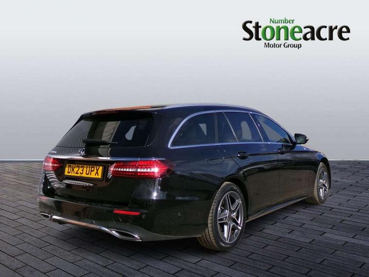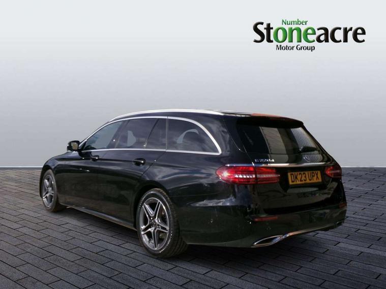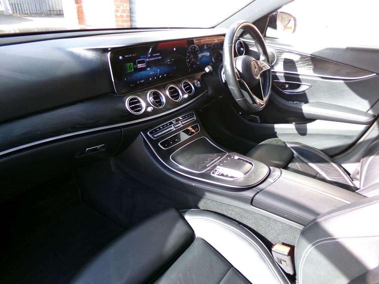 Attention assist, Blind spot assist, Brake wear warning display, Cockpit display 10.25" widescreen digital instrument cluster, Cruise control with variable speed limiter, Direct steer speed sensitive steering, DYNAMIC SELECT with a choice of driving modes (ECO, Comfort, Sport, Sport+ and Individual), Easy-pack tailgate - Powered opening/closing automatically, ECO start/stop function, Emergency call service, High resolution 10.25" multimedia colour display, MBUX voice control activated by keywords "Hey Mercedes", Mercedes connect me, Outside temperature display, Park assist with rear view camera, Remote boot release, Service indicator (ASSYST), Smartphone integration via Android Auto/Apple CarPlay, Media Interface, USB and Bluetooth interface, Status display for rear seat belts in instrument cluster, Touchpad without controller, Traffic sign assist, Trip computer in multifunction display showing current fuel consumption, Wireless charging, 25 litre AdBlue tank, 66 litre fuel tank, 9G TRONIC 9 speed automatic transmission, Agility control sports suspension with selective damping system and lowered by 15mm, Diesel particulate filter, Incorrect fuelling protection, Rear air suspension with level control, 2 USB ports in centre console, 2 USB ports in the rear, MBUX multimedia system with DAB digital radio and touchpad including satellite navigation, 3rd brake light, Adaptive brake lights, Aerial integrated in rear window, AMG bodystyling front and rear aprons in polished aluminium, Body colour door mirrors, Chrome pins diamond radiator grille, surround in high gloss black, single louvre in chrome with insert in high gloss black and integral star, Chrome roof rails, Electric windows with one touch opening/closing and obstruction sensors, Electrically adjustable and heated door mirrors, Illuminated front door sill panels with Mercedes-Benz lettering, LED High Performance headlamps including integral LED daytime running lamps and adaptive highbeam assist, LED rear lights, Privacy glass Includes rear side windows and rear windscreen, Rain sensor with automatic headlight activation, Rear side wing doors, Rear wiper, Tail lights, Top surround of side windows in polished aluminium, Visible twin pipe exhaust system integrated into bumper, 3 seat bench in 2nd row, 3 spoke multifunction flat bottom AMG steering wheel with chrome inserts and touch control buttons, trimmed in black nappa leather, 40:20:40 split folding rear bench seat, Artico man-made leather upper dashboard and beltlines with contrast stitching, Automatic child seat recognition sensor, Black door pins, Black roof lining, Central stowage compartment with 12 V socket in centre console, USB socket for use with Android Auto and Apple CarPlay, Courtesy lights in rear grab handles with reading light functionality, Floor mats with AMG lettering, Four way partially front electric seat adjustment, Front centre armrest with stowage compartment, Glasses compartment in overhead control panel, Glove compartment - lockable, air conditioned and illuminated, Head restraints for driver and front passenger (four-way adjustability) and in rear (two-way), Heated front seats, Interior lighting - 64 colour Ambient lighting, Leather upholstery, Seat occupancy sensor for front passenger seat, Single front passenger seat, Steering column manually adjustable for height and reach, Steering wheel multifunction with gearshift paddles, Steering wheel touch control buttons for audio and onboard settings, Sunvisors with illuminated vanity mirrors, THERMOTRONIC automatic climate control system with 3 climate zones, Mirror pack - E Class, Seat comfort pack - E Class, Stowage pack - E Class Estate, 3x3 point rear seatbelts, Active bonnet pedestrian safety measure which detects an impact and raises bonnet, Active brake assist, Adaptive brake system with HOLD function and brake drying in the wet, Airbags - sidebag for driver and front passenger with combined thorax/pelvis bag, Anti-lock braking system (ABS), Childproof locks manually operated for rear doors and electrically operated for rear power windows, Driver and adaptive front passenger airbags, Drivers knee airbag, Electronic parking brake, Electronic Stability Programme, Hill start assist, ISOFIX child seat attachment points two outer rear seats, Perforated brake discs with Mercedes Benz lettering, Pre-Safe anticipatory safety system, Tyre pressure monitoring system, Warning triangle and first aid kit, Window airbags, Alarm system/interior protection/immobiliser, Central locking with interior switch, automatic locking and crash sensor with emergency opening function, Chrome surround in electric key, Open pore black ash wood trim and centre console in black open pored ash wood, 18" AMG 5 twin spoke light alloy wheels painted in tantalite grey with high sheen finish, Summer tyres, TIREFIT with tyre inflation compressor,