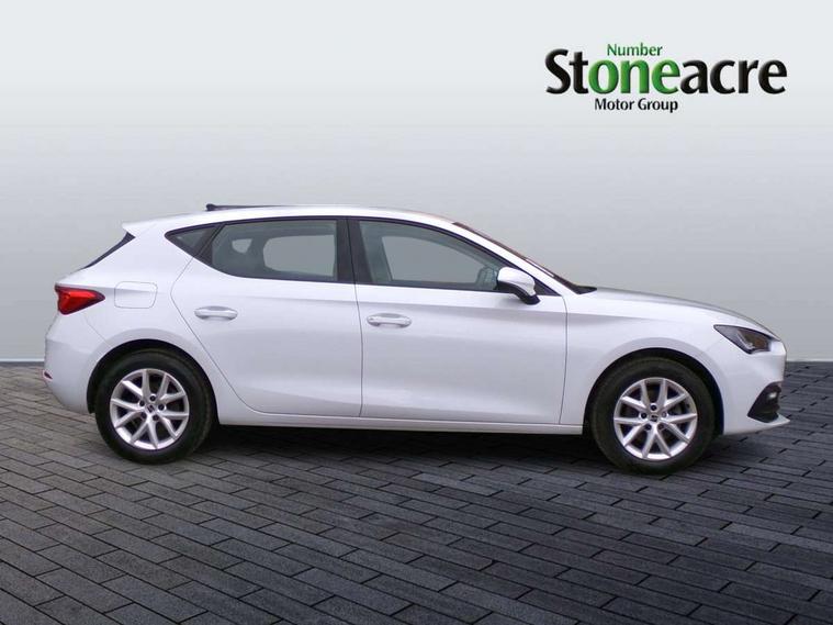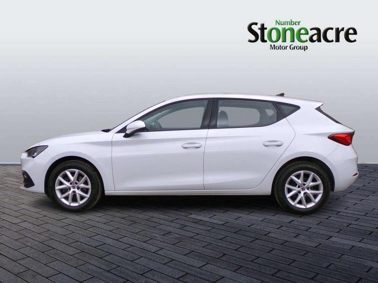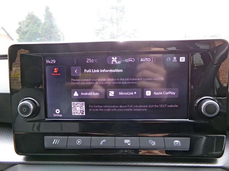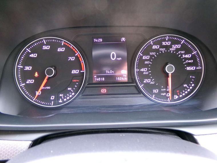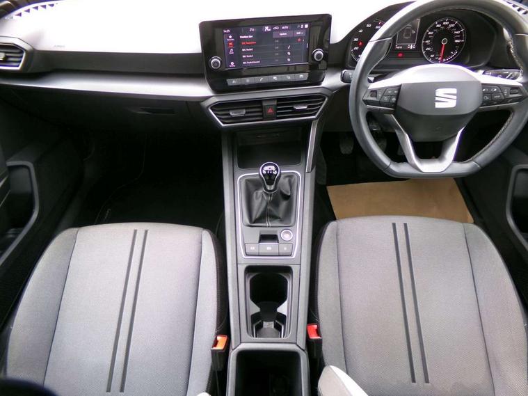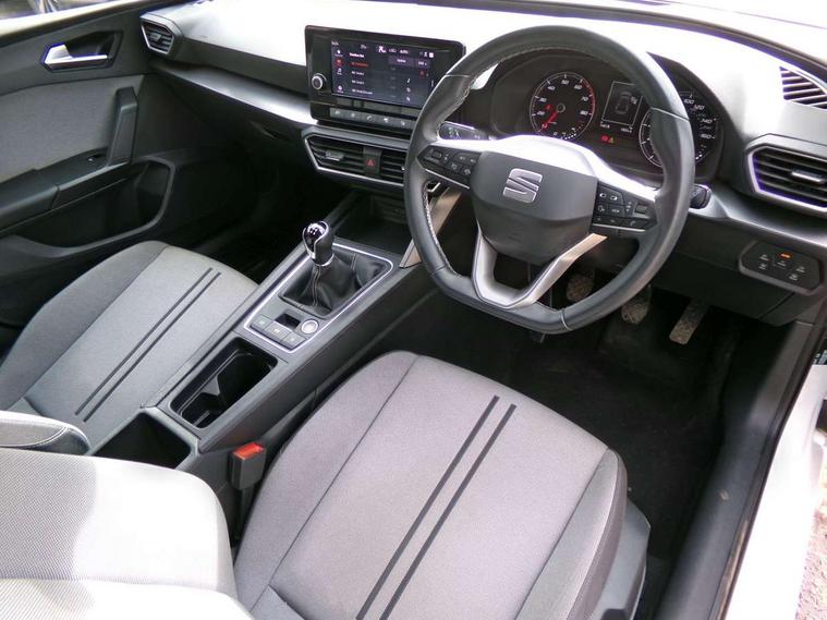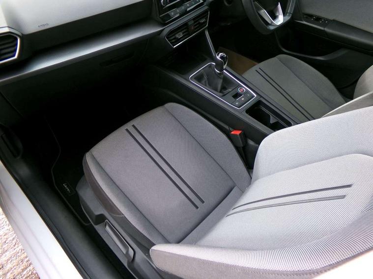 Cruise control with speed limiter, E-call, Front assist with forward collision warning braking reaction to vehicles, pedestrians and cyclists, Full link smartphone integration with Mirror Link, Wired Apple CarPlay and Wired Google Android Auto, Lane assist, Lockable tailgate, Power assisted speed sensitive electro-mechanical steering, Rear parking sensors, RPM, trip computer, outside temp gauge, instrument light brightness, low fuel warning light, lights on reminder, gearshift indicator, Service interval indicator, Start/stop system with regenerative braking, Two USB Type C ports in front, Standard suspension, XDS electronic differential lock and dynamic traction support, 7 speakers, Auxiliary input socket, Body colour door handles, Body coloured bumpers, Body coloured exterior mirrors with integrated LED indicators, Dynamic headlight range control, Electric front/rear windows, Electrically adjustable and heated door mirrors, LED front fog lamps with cornering function, LED headlights and LED tail lights, LED rear fog lamp, Manual dimming rear view mirror, Rain sensor, Rear coast to coast lighting, Rear side wing doors, Rear wash/wipe, Separate daytime running light with automatic headlight control, Third brake light, Welcome light silhouette from exterior mirrors, 12v power point in centre console, 3 seat bench in 2nd row, 60/40 split rear bench seat, Air conditioning, Driver seat lumbar adjustment, Driver/passenger manual seat height adjustment, Dust/pollen filter, Folding boot cover, Front and rear height adjustable headrests, Front and rear reading lights X 4, Front seatback storage pockets, Grey headlining, Height/reach adjust steering wheel, Illuminated glove box interior lighting, ISOFIX points in outer rear seats with top tether anchorage points, Leather flat bottomed, perforated steering wheel and leather gearstick, Luggage tie-down hooks, Single front passenger seat, Sunvisors with mirror, Two tone cloth upholstery, Media system pack - Leon, 3 point seatbelts on all rear seats, ABS, Brake control system - ESC and brake booster, Child proof door locks, Driver and front passenger airbags with front passenger airbag de-activation, front side and curtain airbags, Electronic parking brake, Extended safety system - seat belt tensioner, window closure and hazard lights, Hill hold control, Rear disc brakes, Seat belt reminder for front and rear seats, Tiredness recognition system, driver alert system, Tyre pressure monitoring system, Anti theft alarm system with interior monitoring in cab, backup horn and towing protection, KESSY Go (Keyless start), Locking wheel bolts, Chrome interior detailing, 16" Urban alloy wheels with 91V tyres, Tool kit,