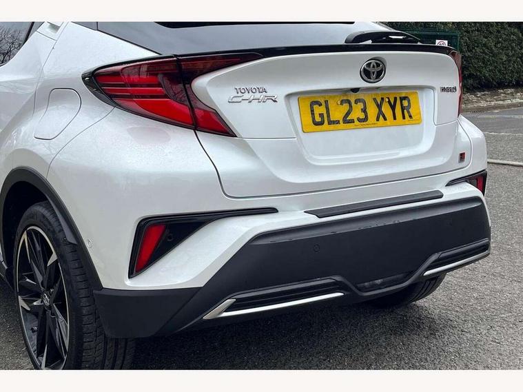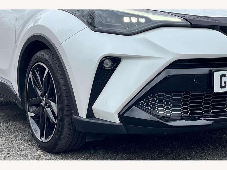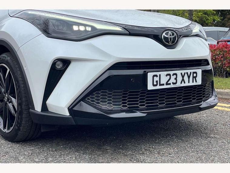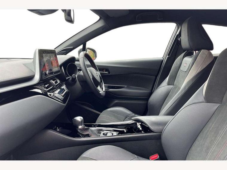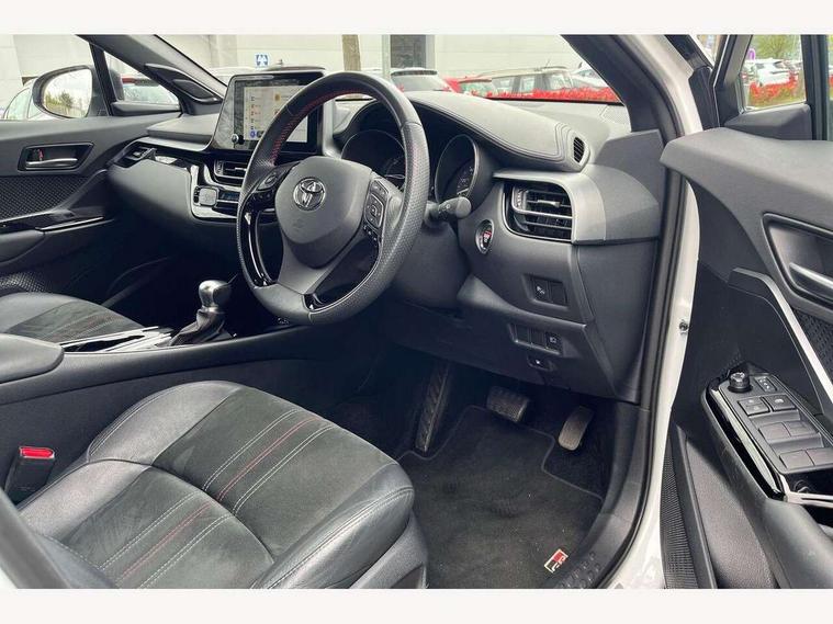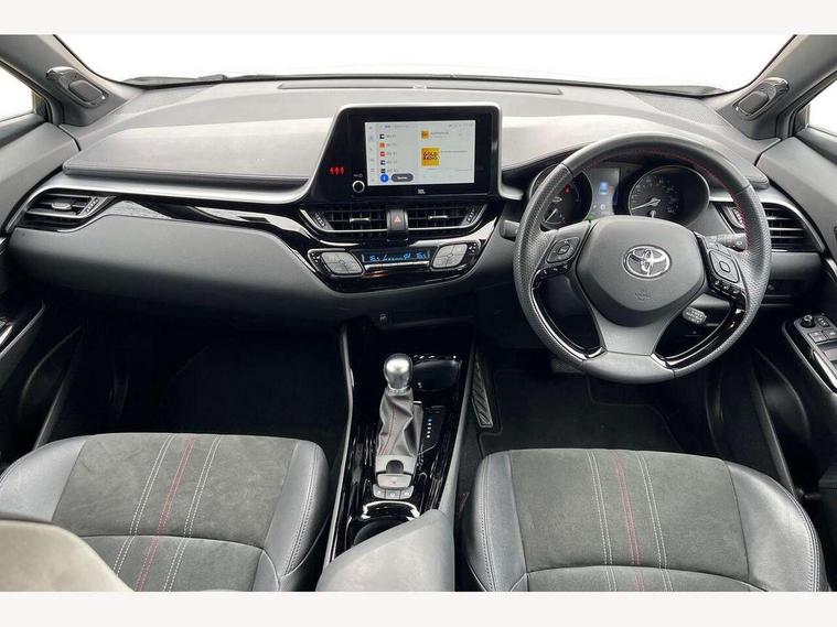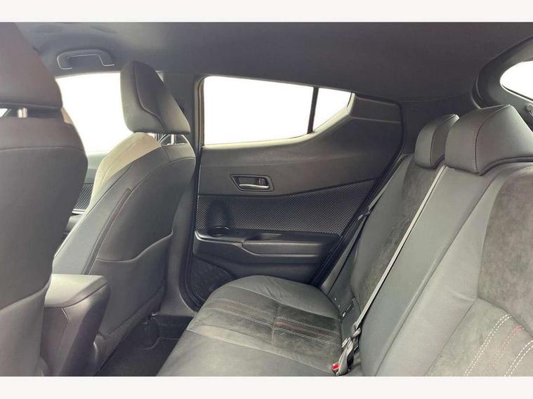 4.2" coloured TFT screen for multi-information display, Adaptive cruise control, Apple car play and Android auto, Bluetooth connectivity, E-call, Electric power steering, Hybrid system indicator, Lane departure alert with steering control, Lane trace assist, Push button tailgate release, Remote boot door release in cabin, Remote boot door release in key, Reversing camera, Road sign assist - RSA, Simple Intelligent parking assist, Smart voice assist, Touch 2 Go navigation system, Trip computer, Voice recognition, Wireless smartphone integration, Vehicle Stability Control (VSC), 6 speakers, AM/FM radio, DAB Radio (Digital Audio Broadcasting), Toyota touch 2 multimedia system with 8" display, USB connector, Wi-fi connectivity, Adaptive front light system, Adaptive LED Headlights, Anti-jam protection on power windows, Auto high beam, Auto up and down function on all power windows, Automatic headlight levelling, Automatic headlights, Automatic headlights cut-off, Black and body coloured rear bumper, Black upper front grille, Body colour door handles, Body colour door mirrors, Body coloured front bumper, Boot door release with push button, Chrome front lower bumper, Electric heated door mirrors, Follow me home headlights, Front and rear power windows, Front spoiler lip in black, Headlight cut off reminder, Honeycomb lower front grille, LED daytime running lights, LED fog lights, LED front light guide, LED High mounted stop light, LED rear brake lights, LED rear combination lights, Noise reduction layer on front windows and windscreen, Power adjustable door mirrors, Privacy glass, Rain sensor, Rear sequential indicators, Rear side wing doors, Rear spoiler, Rear tailgate, Rear window defogger, Rear window wiper, Shark fin antenna, UV-filter on driver and passenger windows, UV-filter on rear windows, Variable front intermittent wipers, 12v power outlet - front, 3 rear headrests, 3 seat bench in 2nd row, 3 spoke perforated leather steering wheel, 60/40 split folding 2nd row rear seats, Adjustable rear headrests, Adjustable speed limiter switch on steering wheel, Assist grips front and centre pillar, Audio and telephone switches on steering wheel, Black front door assist grips, Blue ambient lighting on front cup holders, Blue ambient lighting on front doors, Boot light, Chrome interior door handles, Cloth upholstery, Driver and front passenger personal light, Driver and front passenger Whiplash Injury Lessening seats, Driver and passenger seatback pockets, Dual zone automatic air conditioning, Floor mats, Front cupholders, Front head restraints, Front sports seats, Glovebox with internal light, Hard tonneau cover, Heated driver and front passenger seats, Hooks for luggage holding net, Humidifying Nanoe air purifier, Illuminated entry system, Isofix attachments on outer rear seats, Leather gearshift, Light on driver sun visor, Light on passenger sun visor, Manual telescopic steering wheel, Manual tilt steering wheel, Manually height adjustable driver seat, Manually height adjustable front passenger seat, Manually reclining driver seat, Manually reclining front passenger seat, Manually sliding driver seat, Manually sliding front passenger seat, Microphone on front personal light, Mirror on driver sun visor, Mirror on passenger sun visor, Multimedia switches on steering wheel, Pollen filter, Power adjustable lumbar support on driver seat, Shopping bag hooks, Single front passenger seat, Slow opening on lower glovebox, Voice recognition switch on steering wheel, Tech with parking sensor pack - C-HR, 16 Disk front wheel brake, 3x3 point rear seatbelts, ABS+EBD+Brake assist, Electronic parking brake, Front and rear seatbelt reminder, Front passenger airbag on/off switch, Hill start assist control (HAC), Pre collision system with pedestrian detection, Pre-tensioners and force limiters, Rear door child safety locks, SRS Airbags - Driver + Front passenger, front side, front and rear curtain and driver's knee airbags, Toyota safety sense, Tyre pressure monitoring system, Tyre pressure warning system, Acoustic vehicle alert system (AVAS), Glass-breaking alarm sensors, Immobiliser, Intrusion alarm, Intrusion sensor, Motion sensor alarm, Power door locks, Power passenger window lock, Remote central locking, Black lower dashboard, Black upper dashboard, Piano black console, Silver deco line on upper dashboard, 19" Black machined alloy wheels, Tyre repair kit,