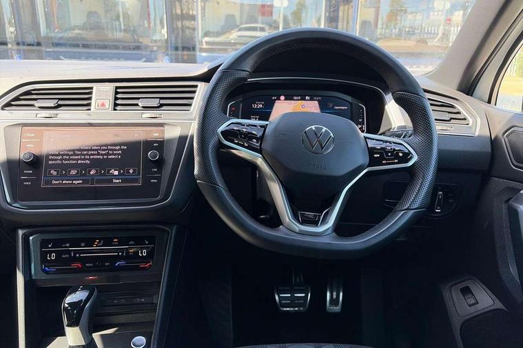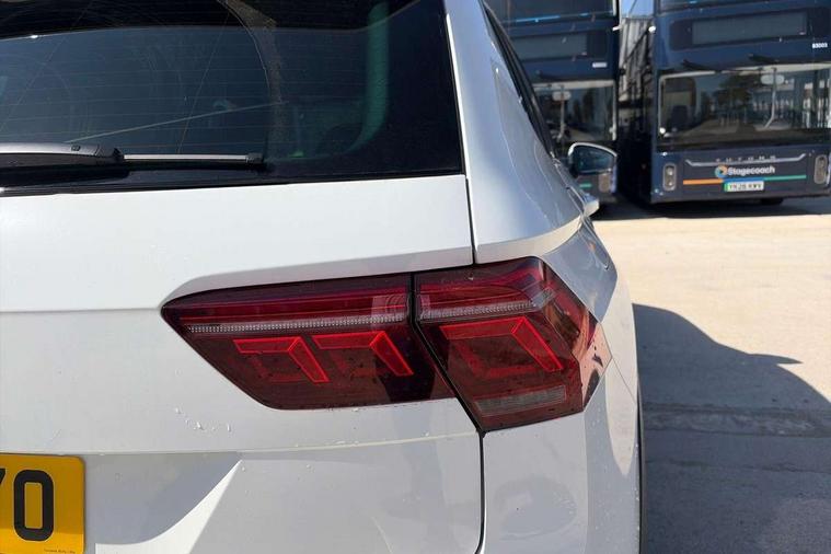 Adaptive cruise control ACC stop and go including speed limiter, App-Connect incl. App-Connect Wireless for Apple CarPlay and Android Auto, Bluetooth phone integration system, Distance control assist, Driver alert system, Driver profile selection, Dynamic road sign display, eCall emergency call system, Electromechanical speed sensitive power steering, Engine start/stop button, Lane keeping system Lane Assist, Lights on warning, Multifunction front facing camera, Outside temperature display, Premium multifunction display with multi colour display, Remote control boot opening, Rev counter, Revision / skills operating concept travel assistant, Service interval indicator, Speed limit display, Start/stop system with regenerative braking, Trip computer, Warning sound and light for doors and tailgate open, Battery regeneration during braking, Diesel particulate filter, Misfuel prevention device for diesel engine, Selective Catalytic Reduction, XDS electronic differential lock for improved traction and handling, 4 X 20 watt output, 8 Speakers, Diversity antenna for FM reception, Radio, SD card slot, Simultaneous pairing of 2 compatible mobile devices, SMS functionality - read, compose and send SMS messages using touch-screen display, Title and cover art display, USB C ports, Auto dimming interior rear view mirror, Automatic headlight control system, Body colour door handles, Chrome moldings on the side windows, Coming/leaving home lighting function, Dynamic headlight range control, Front and rear electric windows, Heated rear window, High level 3rd brake light, Laminated safety glass windshield, heat and sound insulating, LED headlamps with LED separate daytime running light and dynamic cornering light, LED rear combination lamps, LED rear number plate lights, License plate carrier in front and rear, Poor weather light and cornering light, R Line body kit, R Line side sills, Rain sensor windscreen wipers, Rear exhaust tailpipe, Rear fog lamp, Rear side wing doors, Rear spoiler in R style, Rear windscreen washer and wiper with interval delay, Side and rear windows in heat insulating glass, Trailer Stability Programme, Unique R Line badging, Windscreen wipers/ intermittent wipe + 4 position delay, 12V outlet in center console rear and in luggage compartment, 12V outlet in front and tray, 2 cup holders in front, 2 LED front reading lights, 2 LED rear reading lights, 3 bench rear seats in 2nd row, 3 rear headrests, 4 load lashing points, 40:20:40 split folding rear seats, Air Care Climatronic 3 zone automatic climate control with enhanced air filter and controls in the rear, Backrest release for left front seat, Black headlining, Brushed stainless steel pedals and footrest, Carpet mats in front and rear with decorative stitching in Gray, Climate control unit rear with touch function, Door and side trim panel in foam film, insert in leatherette, Front centre armrest, Front footwell illumination, Front seats head restraints (x-adjustment), Height adjustable front seats, Height/reach adjust steering wheel, Instrument lighting white adjustable panel illumination, Interior light with delay, Isofix Preparation 2 Rear child seats, Leather gear knob, Lockable cooled glovebox, Luggage compartment lighting, Luggage net, Rear bench seat asymetrically split folding, longitudinally movable and folding with load-through hatch and center armrest, Remote unlocking for rear seat backrest, Removable luggage cover, Removable rear headrests, Safety optimised front head restraints, Single front passenger seat, Sliding/reclining rear seats, Standard rear seat release, Storage compartment in driver's door, Storage compartment in passenger's door, Storage compartment in rear doors, Storage compartments in luggage area left and right, Storage tray on dashboard, Sun visors with illuminated vanity mirrors, Top front comfort seats, Variable boot floor, height adjustable and removable, Driver assistance pack plus - Tiguan DSG, 3 point seat belt for centre rear seats, 3 point seat belts with seat belt pretensioners for the outer rear seats, Active bonnet, Curtain airbags for front and rear passengers, Driver/Front Passenger airbags, Drivers knee airbag, Electronic parking brake with auto hold, Electronic Stability Control with driver steering recommendation, ABS, ASR, EDL, EDTC and trailer stabilization, Front assist with autonomous emergency braking (for Adaptive Cruise Control ACC up to 130 mph), Front disc brakes, Front passenger airbag deactivation, Front side airbags, Height adjustable front 3 point seatbelts + pretensioners, Hill hold control, Manual child proof rear door locks, Pedestrian monitoring system, Power assisted brakes, Proactive passenger protection system in combination with front assist, Rear disc brakes, Rigid safety cell with front and rear crumple zones, Two tone horn, Warning sound and light for front seat belts if unfastened, Anti theft alarm system with interior monitoring, backup horn and towing protection, Anti theft wheel bolts, Electronic engine immobiliser, Tool kit,