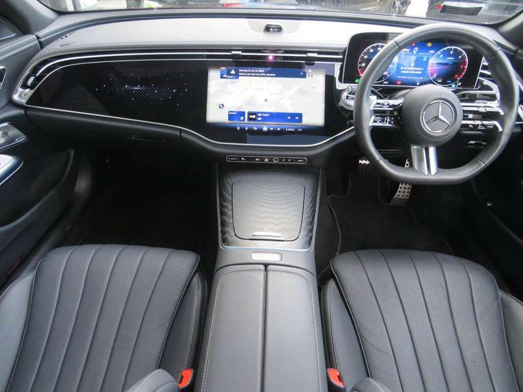 12.3" Driver display screen, 14.4" central media display, 5G Communications module, Attention assist, Augmented reality navigation, Blind spot assist, Brake wear warning display, Direct steer speed sensitive steering, Easy-pack tailgate - Powered opening/closing automatically, ECO start/stop function, Emergency call assistance, Evasive manoeuvre support, Fluorescent jacket for driver, Hard disc navigation, Head up Display, MBUX navigation premium, MBUX superscreen with 12.3" passenger display and privacy function, MBUX voice control, Mercedes connect me, Outside temperature display, Preinstallation for live traffic, Remote bootlid closing, Remote Services Premium, Selfie and video camera, Service indicator (ASSYST), Status display for rear seat belts in instrument cluster, Trip computer in multifunction display showing current fuel consumption, Wireless charging, Wireless smartphone integration with Apple CarPlay and Android auto, 48V Mild hybrid technology, 66 litre fuel tank, 9G TRONIC automatic transmission, Agility control suspension with selective damping and lowering, Bluetec emission control, Diesel particulate filter, Integrated starter generator Gen 2, Rear air suspension with level control, Sporty engine sound system, 2 USB ports in centre console, 2 USB ports in the rear, Burmester 4D premium sound system, DAB Digital radio, Preinstallation for MBUX Entertainment Plus, Sound visualisation, 3rd brake light, Acoustic glass, Adaptive brake lights, Aerial integrated in rear window, AMG bodystyling, Auto dimming driver's door mirror, Auto dimming rear view mirror, Black radiator grille, Chrome roof rails, Digital air vent control, Electric folding door mirrors, Electric windows with one touch opening/closing and obstruction sensors, Electrically adjustable and heated door mirrors, Heat insulating privacy glass, LED daytime running lights, LED digital light with adaptive highbeam assist plus, Pre-installation for roof rail systems, Rear side wing doors, Rear wiper, Surround lighting with logo projection, 3 seat bench in 2nd row, 4 way lumbar support, Active ambient lighting, AMG brushed stainless steel sports pedals with rubber studs, AMG floor mats, AMG line interior, Automatic child seat recognition sensor, Central stowage compartment with USB socket for use with Android Auto and Apple CarPlay, Comfort seats, Courtesy lights in rear grab handles with reading light functionality, Folding rear seat backrest, Front centre armrest with stowage compartment, Glove compartment - lockable, air conditioned and illuminated, Head restraints for driver and front passenger (four-way adjustability) and in rear (two-way), Heated front seats, Illuminated door sills, Multifunction sports steering wheel in nappa leather, Roof liner in black fabric, Seat occupancy sensor for front passenger seat, Single front passenger seat, Steering wheel touch control buttons for audio and onboard settings, Sunvisors with illuminated vanity mirrors, Thermotronic 4 zone climate control, Keyless Go comfort package - E Class, Leather package - E Class, Memory package - E Class, Parking package with 360 degree camera - E Class, USB plus package - E Class, 3x3 point rear seatbelts, Active bonnet pedestrian safety measure which detects an impact and raises bonnet, Adaptive brake system with HOLD function and brake drying in the wet, Airbags - sidebag for driver and front passenger with combined thorax/pelvis bag, Anti-lock braking system (ABS), Automatic front passenger airbag deactivation, Central airbag, Childproof locks manually operated for rear doors and electrically operated for rear power windows, Driver and adaptive front passenger airbags, Electronic parking brake, Electronic Stability Programme, Hill start assist, ISOFIX child seat attachment points two outer rear seats, Knee airbags, Pedestrian protection, Pre-Safe anticipatory safety system, Tyre pressure monitoring system, Warning triangle and first aid kit, Window airbags, Alarm system with interior monitoring, Central locking with interior switch, automatic locking and crash sensor with emergency opening function, Dashcam, Digital vehicle key, Guard 360 degree vehicle protection plus, Increased anti theft protection, Urban guard vehicle protection plus, Centre console trim in open pore black ash wood, Dash trim deleted for MBUX Superscreen, 19" AMG 5 twin spoke bi colour alloy wheels, Summer tyres, Tirefit,