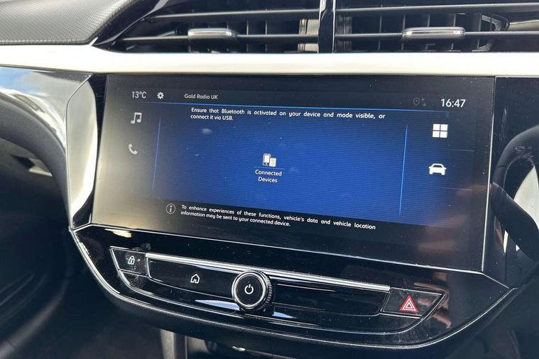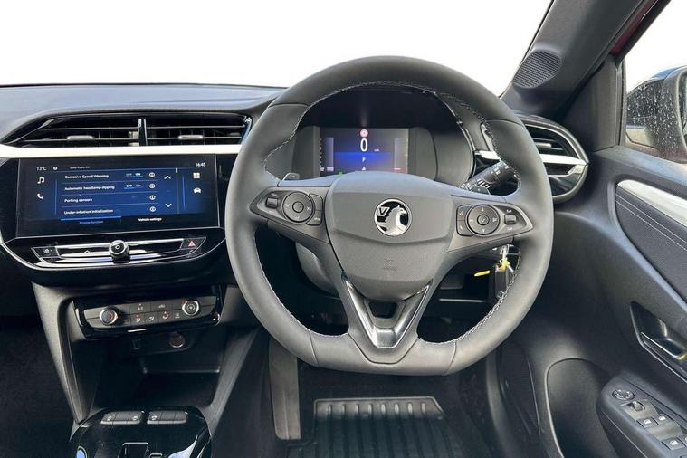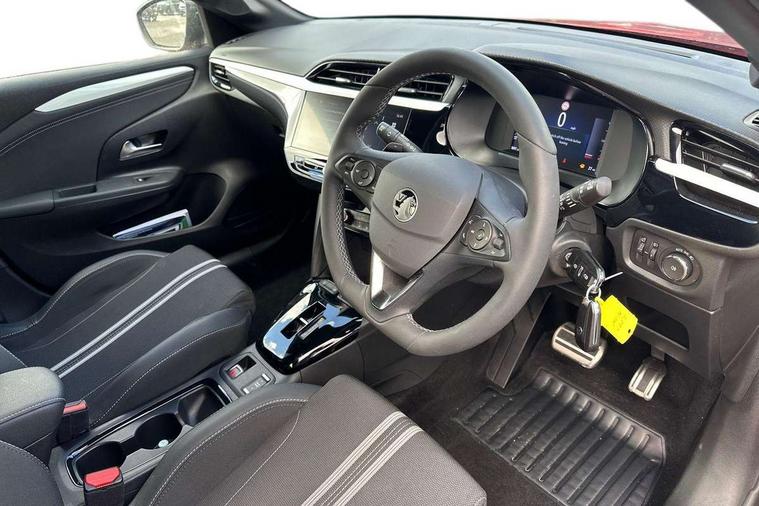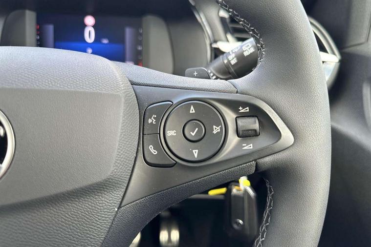 130 degree rear view camera, 7 inch digital instrument cluster display, Auto tele unit 3S vehicle communication system, Breakdown call (b-call), Central facia display with digital clock, outside air temperature and audio information, Cruise control with intelligent speed limiter, Drive modes (sport, normal, eco), Driver drowsiness alert system, E-call, Engine oil life indicator, Front and rear parking sensors, Front camera system, Instrumentation - Speedometer, rev counter, low fuel gauge warning light + water temperature gauge warning light, Lane departure warning, Lane keep assist, Lights on audible warning, Multi function trip computer, RDS with traffic programme, Service indicator, Side blind spot alert, Smartphone projection, Speed sensitive power steering, Speed sign recognition, Start/stop system, Vauxhall connect box, Wireless Apple CarPlay/Android Auto, Electronic returnless fuel system, Petrol Particulate Filter, Under body shield for aero, AM/FM stereo radio, Bluetooth connectivity with A2DP audio streaming function (Advanced audio distribuition profile), DAB Digital radio, Multimedia with 10-inch touchscreen, Six speakers, Steering wheel audio, phone and cruise controls, USB type C port, 3rd brake light, Automatic headlight control system, Black door mirror housings, Black Griffin logo and vizor frame, Black lower side window mouldings, Body colour door handles, Body colour front and rear bumpers, Bonnet/headlight/wiper structure, Corsa lettering in tailgate, Dark tinted rear side windows + tailgate window, Electrically adjustable and heated door mirrors, Electrically folding door mirrors, Electrically operated front and rear windows with safety auto reverse and one touch up/down facility, Electrochromic automatic anti-dazzle rear view mirror, Flexible roof mounted aerial, Glazed tailgate and heated rear window with wash/wipe facility, Hazard warning lights, Headlamps for left side traffic, High beam assist, High gloss black finish B pillar, Intelli-LED headlights, LED daytime running lights, LED tail lamp, Rain sensitive windscreen wipers, Rear fog lamp, Rear reversing lights, Rear side wing doors, Rear wiper, Solar heat absorbing windscreen and windows, Sports front and rear body styling for upper and lower bumper design, Two speed windscreen wipers with variable intermittent wipe, Windscreen and side window demist vents, 12V power sockets, 3 bench rear seats in 2nd row, 4 speed fan with illuminated controls, 4 way manual co-driver seat reach fore/aft, backrest upright/recline, 6 way manual adjustable driver seat height up/down, reach fore/aft, backrest upright/recline, 60/40 split folding rear seat, Air conditioning with air recirculation facility, Alloy effect sport pedals, Banda cloth upholstery, Black headliner, Cabin particulate filter - removes dust, airborne particles and pollen, Driver/passenger sunvisors with vanity mirrors + covers, Flat bottomed leather effect steering wheel, Four adjustable facia vents, Front centre armrest with storage, Front cupholder, Front headrests, Gearshift paddles, Height adjustable head restraints, Illuminated glovebox with lid, Interior courtesy light, Internal chrome door handles, LED boot light, Polyurethane gear knob/lever, Reach and rake adjustable steering column, Rear cupholder, Rear headrests, Right hand drive (RHD), Single dome lamp with dual front reading lamps, Single front passenger seat, Sports style front seats, Standard floor mats, Two litre open door pockets, 3 rear 3 point seatbelts, Anti-lock braking system (ABS), Automatic emergency braking with pedestrian detection, Cornering brake control, Deactivation switch for front passenger's airbag, Drag torque control, Driver and front passenger airbags, front seat side impact airbags, full size curtain airbags, EBD - Electronic brakeforce distribution, Electrical child lock system in rear door latch, Electronic parking brake, Electronic Stability Programme (ESP), Emergency brake assist, Forward collision alert, Front seatbelt unfastened audible warning and warning light, Hill hold and start system, ISOFIX child seat mountings incorporating top tether anchor points located on second row rear seats, Seatbelt pretensioners, Single tone horn, Straight line stability control, Traction control, Tyre deflation detection system, 2 keys one folding with integral remote, Electronically protected audio equipment, Engine deadlock and immobiliser, Freewheeling door locks, Locking wheel nuts, Remote control central locking, Remote control security alarm system, Remote locking fuel filler flap, Steering column lock, Visible vehicle identification number, Silent black fascia with blanc banquise insert, 17" Diamond-cut hi-gloss black alloy wheels,