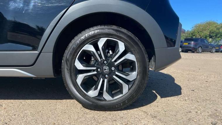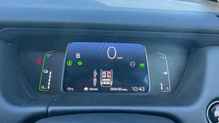 Adaptive cruise control, Adjustable speed limiter, Agile handling assist, Bluetooth hands free telephone connection, eCall emergency call system, Econ mode, Electric power steering wheel with variable gear ratio steering, Emergency stop signalling system, Forward collision warning, Front and rear parking sensors, Honda CONNECT with GARMIN Navigation + 9" touchscreen, AM/FM/DAB/Apple Carplay and android auto, Idle stop, Intelligent speed limiter, Lane departure warning system, Lane keep assist system, Low speed following, Multi-information display, Rear view camera, Road departure mitigation, Tailgate, Traffic jam assist, Traffic sign recognition, Wireless apple carplay, Vehicle stability assist, 'Shark fin' mobile antenna, 180w Power audio system with 4 speakers, 2 USB-C connectors rear, 2x USB Front socket (1 data & 1 charge), Remote audio controls on steering wheel, Aspheric door mirrors, Auto wipers, Automatic headlights with on/off timer, Coming/leaving home function, Black door mirrors, Black headlight extension, Body colour door handles, Body coloured front grille, eHEV emblem, Electric adjustable door mirrors, Electrically folding door mirrors, Exclusive styling includes front and rear bumper, front fog garnish, silver fender, side sill garnish, Front and rear electric windows, Heated door mirrors, High beam assist, LED 3rd brake light, LED daytime running lights, LED front fog lights, LED Headlights, LED rear lights, Manual headlight levelling, Privacy glass, Rear side wing doors, Rear wiper, Roof rails, Single exhaust tailpipe, 3 seat bench in 2nd row, 60/40 split rear bench seat, Cargo net hooks, Climate control air conditioning, Driver and front passenger seat armrests, Driver and passenger front seat pockets, Driver's seat height adjustment, Fabric/Water repellent upholstery, Front accessory power socket, Front head restraints, Front map lights, Front/rear courtesy lights, Heated front seats, Heated steering wheel, Isofix points, Leather gearshift knob, Leather steering wheel, Magic seat flexibility system, Plating interior door handles, Rear head restraints, Single front passenger seat, Sunvisors with vanity mirrors, Tilt/telescopic adjustable steering wheel, Tonneau cover, Trunk light, Vanity mirror illumination, 3x3 point rear seatbelts, Anti-lock braking system (ABS), Brake assist function, Brake hold function, Child locks on rear doors, Collision mitigation braking system, Deflation warning system, Driver knee airbag, Driver SRS airbag (single stage inflation), Driver/Front Passenger airbags, Electronic parking brake with auto hold, Front and rear seat belt with emergency locking retractor, Front and rear side curtain airbag, Front centre airbag, Front side airbags, Hill start assist, Passenger SRS airbag cut-off device, Rear side airbags, Whiplash lessening front headrests, Honda super locks, Immobiliser, Mirrors and windows key fob operation, Remote central locking with 2 remote folding keys, Security alarm, Smart entry + Smart start, Soft pad leather interior panels, 16" 3D chrome H centre cap alloy wheels, Tyre repair kit,