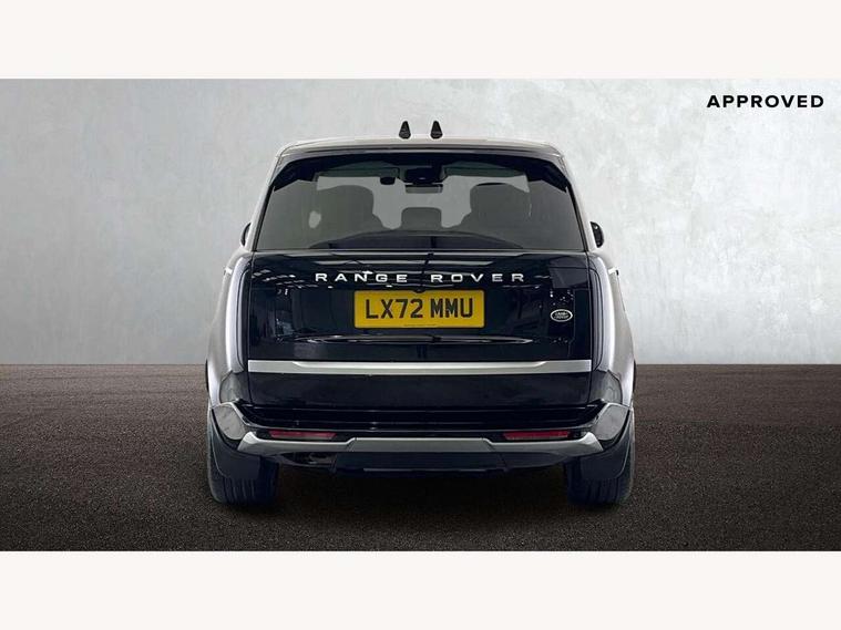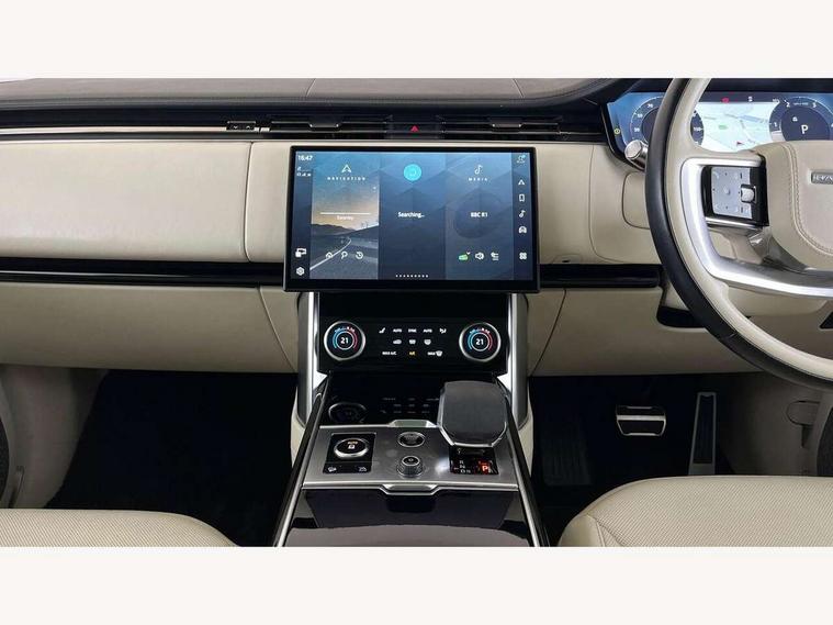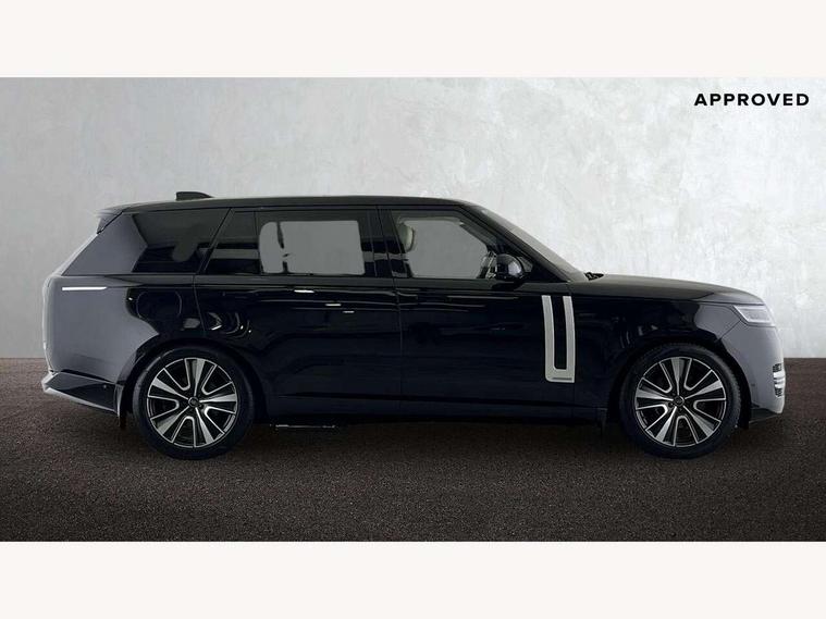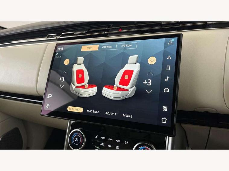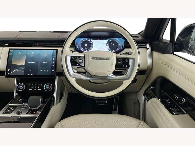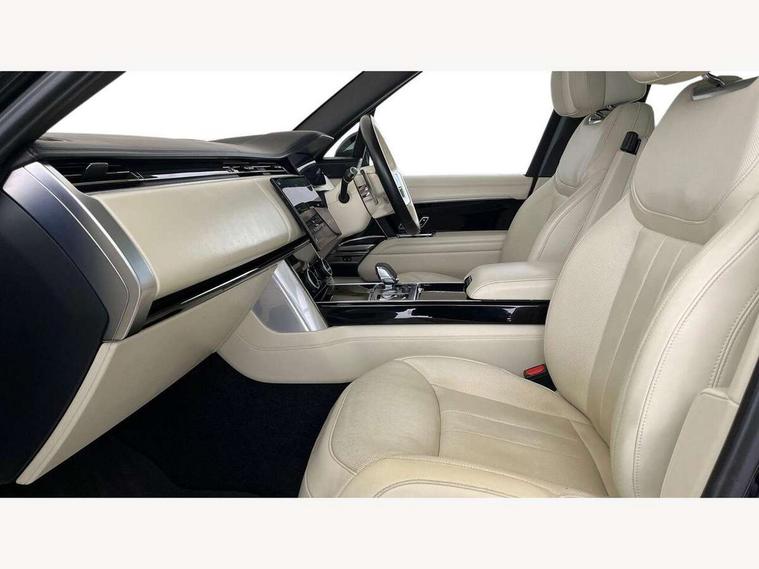 13.1" Touchscreen, 3D surround camera inc frwd traffic detection, vehicle clearance guidance, 3D view, clearsight ground view, manoevure light, 360 parking aid, wade sensing, Adaptive cruise control with steering assist, All Terrain Info Centre, All wheel steering, Android Auto, Apple car play, Blind spot assist, Bluetooth connectivity streaming, Configurable programs, Driver condition response, Eco mode, Electric power assisted steering (EPAS), Emergency call service, Front and rear parking aid, Head up Display, Interactive driver display, Lane keep assist, Powered gesture tailgate/boot lid, Rear collision monitor, Rear traffic monitor, Remote, Traffic sign recognition with adaptive speed limiter, Wi-Fi Enabled with data plan, Wireless device charging with phone signal booster, 8 speed automatic transmission, Active damper technology system, Adaptive dynamics, All terrain progress control, All Wheel Drive (AWD), Automatic access height, Electronic active differential with torque vectoring by braking, Electronic air suspension with dynamic response, Terrain Response 2 Auto, Twin speed transfer box, Digital Audio Broadcast radio-DAB, Meridian 1600W signature sound system, Pivi pro including smart settings, Connected navigation pro, nuance speech, USB socket, Acoustic laminated windscreen, Animated directional indicators, Automatic headlights, Automatic levelling headlights, Centre high mounted stop light, ClearSight interior rear view mirror, Electric windows with one touch open/close and anti trap, Flush deployable exterior door handles, Front and rear recovery eyes, Front fog lights, Headlamp power wash, Heated rear window, Heated washer jets, Illuminated metal treadplates with Autobiography script, Laminated front and rear side glass, LED tail lights, Power fold, auto-dimming, heated door mirrors with approach lights, Rain sensing windscreen wipers, Rear boot, Rear fog lights, Rear side wing doors, Rear wash/wipe, Side repeater indicators in mirror, Solar attenuating windscreen, Trailer stability assist, Winter wiper park position, 12V power sockets, 2 seat bench in 3rd row, 24-way heated and cooled, massage electric front seats with power recline heated and ventilated rear seats and heated third row seats, 3 seat bench in 2nd row, Air quality sensor, Bright metal pedals, Cabin air purification pro, Cabin lighting, Customer configurable single point entry, Driver and passenger front seat armrests, Easy boot loading, Ebony Carpet, Electric rear side window sunblinds, Four zone climate control, Front and rear cupholders, Front and rear grab handles, Front head restraints, Gearshift paddles, Heated steering wheel, Hook in load space, Loadspace cover, Loadspace light, Luggage tie down in loadspace, Multifunction steering wheel, Perforated Semi-Aniline leather upholstery, Rear centre armrest, Rear head restraints, Rear ISOFIX, Single front passenger seat, Soft close doors, SV bespoke carpet mats, SV bespoke full extended leather upgrade, Twin blade sunvisors with Illuminated vanity mirrors, Upper and lower glovebox, Versatile loadspace floor in tailgate, Online pack with data plan - Range Rover, 3x3 point rear seat belts, Anti-lock braking system (ABS), Black brake calipers, Brake hold function, Cornering brake control (CBC), Customer configurable autolock, DSC - Dynamic Stability Control, Electronic brake force distribution, Electronic parking brake, Electronic traction control, Emergency brake assist, Emergency braking, Front airbags with passenger seat occupant detector, Front side airbags, Hill descent control, Hill launch assist, Illuminated seat belt buckles, Low traction launch, Occupant protection assist, Power operated child locks, Roll stability control, Tyre pressure monitoring system (TPMS), Immobiliser, Intrusion sensor and alarm, Keyless entry, Locking wheel nuts, Remote central locking, Noble chrome controls,