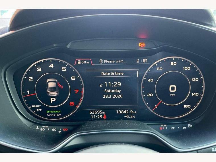 Audi drive select, Audi virtual cockpit - 12.3" high-resolution LCD display with fully customisable instrument cluster, Cruise control + speed limiter, MMI touch panel, Mobile phone preparation with bluetooth interface, Progressive power assisted steering, Service interval indicator, Audi music interface, Auxiliary input socket, Bang + Olufsen advanced sound system, Bluetooth audio streaming, DAB Digital radio, MMI Radio with CD player and SD/XC card slot, Auto headlight range control, Black door mirrors, Body colour bumpers, Electric front windows, Green tinted heat insulating glass, Headlight wash system, High gloss black front grille, LED daytime running lights, LED rear lights, Matt black radiator grille and number plate holder, Privacy glass, Rear diffuser, Retractable rear boot spoiler, S Line body styling, 3 spoke leather multi-function sport steering wheel including paddle shift, Aluminium door sill trims, Black headlining, Electric lumbar support, Extended aluminium look with stainless steel pedals, Front centre armrest, Front head restraints, Front passenger seat isofix location point, Height/reach adjust steering wheel, ISOFIX on outer rear seats, Split folding rear seat, Top tether anchor plate for isofix child seat, 3 point front seat belts, ABS, ASR traction control, Curtain airbags, Driver/Front Passenger airbags, EDL traction control, Electromechanical parking brake, ESP, First aid kit, Front passenger airbag deactivation, Front side airbags, Head airbags, Seatbelt warning, Tyre pressure warning, Warning triangle, Anti theft alarm, Immobiliser, Keyless start, Locking wheel bolts, Remote central locking, Matt brushed aluminium inlays, Tyre repair kit,
