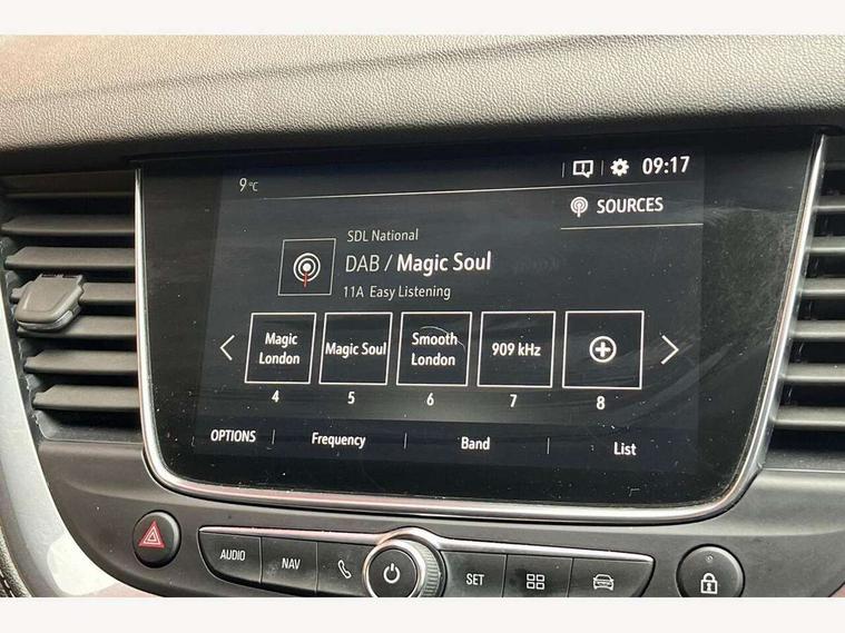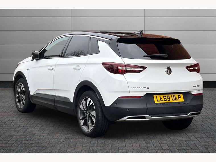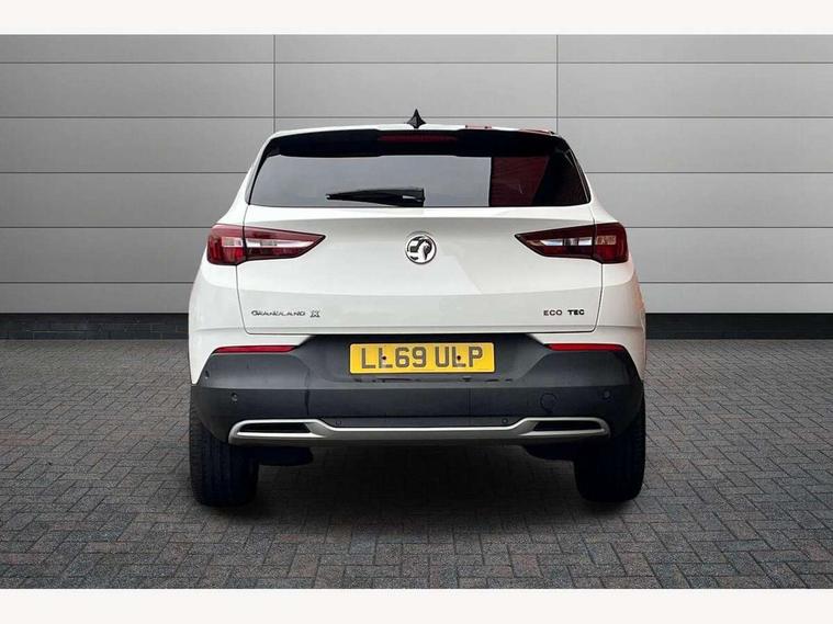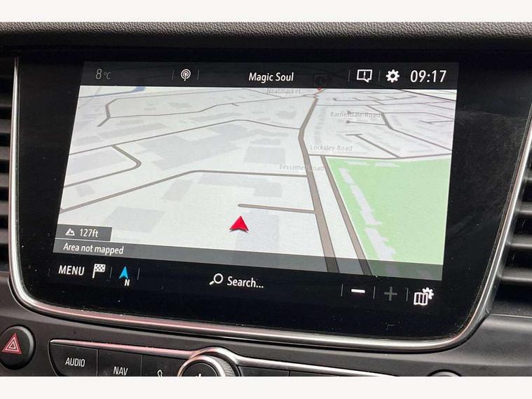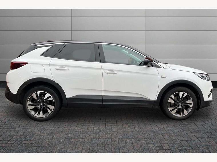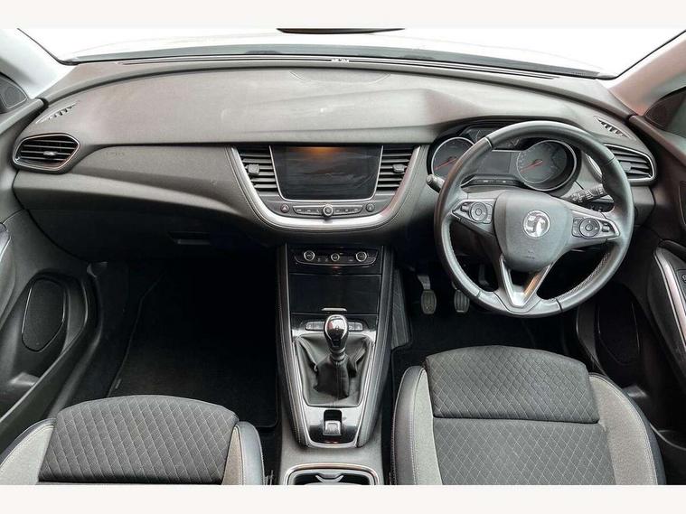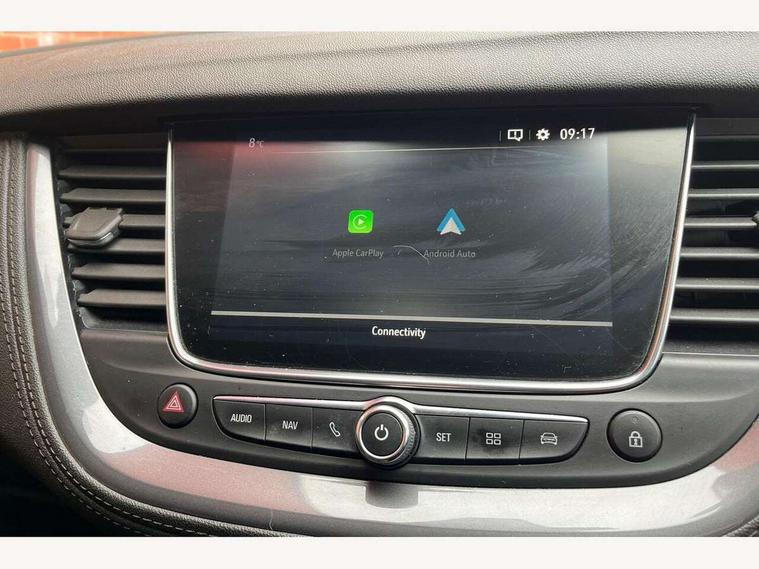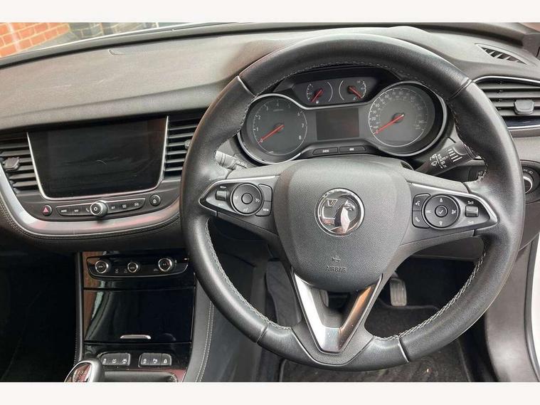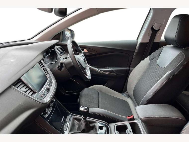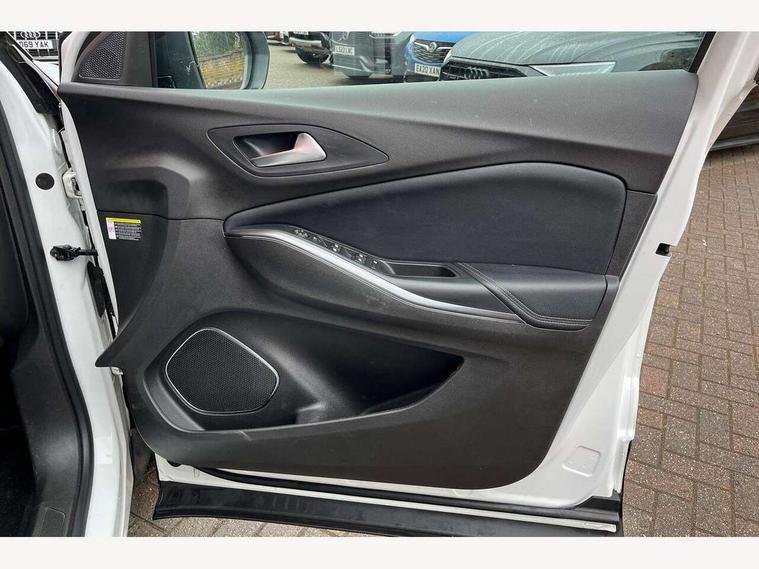 3.5" colour information display, Audible lights on warning, Central facia display with digital clock, outside air temperature and audio information, Cruise control with speed limiter and intelligent speed adaption, Digital water temperature gauge with warning light, eCall emergency call system, Fuel gauge with low fuel level warning light, Gearshift up/down indication light, Multi function trip computer, Nav 5.0 sat nav system + 8" colour touchscreen+DAB radio+RDS traffic programme+European mapping+USB+bluetooth+bluetooth audio streaming+Apple CarPlay, Rev counter, Service interval indicator, Side blind spot alert, Speed sensitive electric power assisted steering, Speed sign recognition, Speedometer, Vauxhall connect including Ecall and connected services, Voice control system, iPod connection, Six speaker - four front + two rear, Steering wheel mounted audio controls, Alloy effect front and rear skid plates, Body colour door handles, Chrome effect bar on front grille, Chrome side window trim, Door to door illumination, Electrically foldable door mirrors with puddle lights, Electrically operated front and rear windows with safety auto reverse and one touch up/down facility with heated rear window, Front fog lights, Gloss black finish B pillar, Halogen headlights with manual beam levelling, Hazard warning lights, High level centre rear brake light, Intermittent rear window wash/wipe, LED daytime running lights, LED tail lights, Rear fog lights, Rear spoiler, Reversing lights, Side protection mouldings, Side window demist vents, Sound absorbing windscreen, Twin electrically adjustable and heated door mirrors, Two speed windscreen wipers with variable intermittent wipe, Two tone black roof with black mirror caps and dark tinted glass, Welcome lighting, Windscreen demist vents, 12V electrical accessory socket in luggage compartment, 3 spoke leather covered steering wheel with satin chrome effect bezel, Alloy effect door sill covers, Ambient centre console downlighter, Ambient interior lighting, Ambient lighting in front doors, Anti submarining front seats, Centre rear head restraint, Chrome effect interior door handles, Covered storage compartment in centre console and in driver armrest, Driver's centre armrest, Driver/passenger sunvisors with illuminated vanity mirrors, Electronic dual zone climate control with air conditioning + advanced predictive logic control using sensor + Charcoal filter + illuminated controls, Four adjustable facia vents, Front and rear passenger assist handles, Front door pockets with 2.6 litre capacity, Front seat back storage pockets, Fully carpeted luggage area, Heated rear windscreen with timed cut-off, Height adjustable and removable front/rear head restraints, Illuminated luggage compartment, Interior courtesy light operated by all doors, Isofix attachment on front seat, Isofix system on outer rear seats, Luggage compartment cover, Reach + rake adjustable steering column, Rear door pockets with 1.8 litre capacity, Rear passenger compartment heating ducts, Rear reading lights, Two drinks holder in centre console, Ventilated glove box with lid, Ergonomic active leather effect front seats pack - Grandland X, Safety pack - Grandland X, Sight and light pack - Grandland X, Versatility pack - Grandland X, 3x3 point rear seatbelts, Active pedestrian safety system, Anti-lock braking system (ABS), Child proof locks on rear doors, CSC - Cornering stability control, Deactivation switch for front passenger front and side impact airbags, Deflation detection system, Deformation zones front and rear, Driver/Front Passenger airbags, Dual seatbelt pretensioners on front seats, EBD - Electronic brakeforce distribution, Electronic parking brake, Energy absorbing steering column, Engine drag torque control, Front and rear seatbelt reminder, Front seat side impact airbags, Full size curtain airbags for driver, front passenger and outer rear passenger seats, Hill start assist, Hydraulic Brake Assist (HBA), Inertia reel lap and diagonal seatbelts for all seats, Load limiters on outer rear seatbelt retractors, Outer rear seatbelt pretensioners, Reinforced passenger safety cell, Side impact protection beams, Switchable electronic stability programme, Traction control, Tyre pressure monitoring system, 2 remote folding keys, Electronically protected audio equipment, Engine deadlock and immobiliser, Locking wheel nuts, Remote control central locking, Remote security alarm system, Visible vehicle identification number, Black door panels with black premium leather effect inserts,
