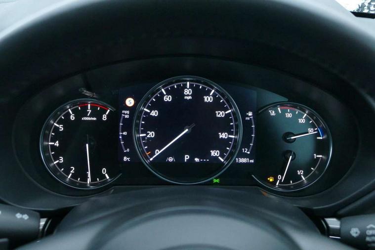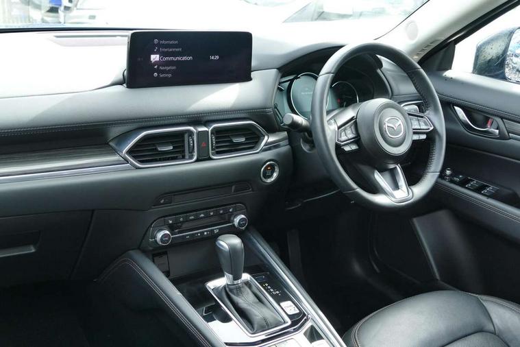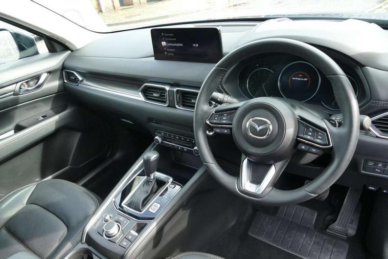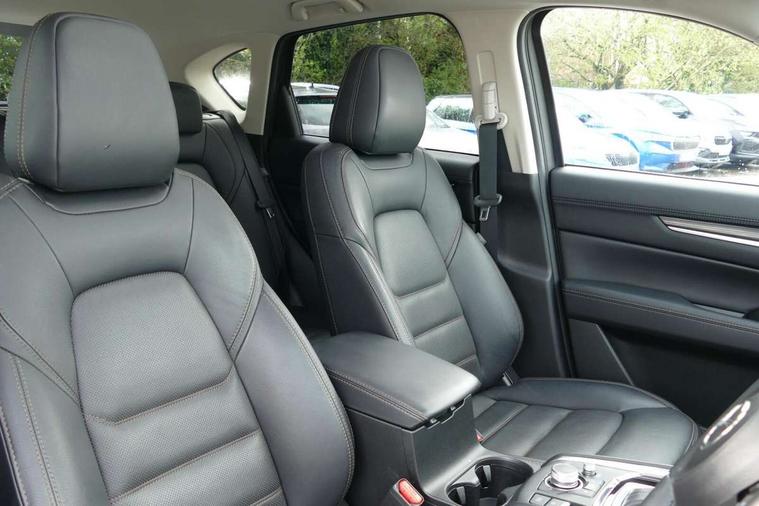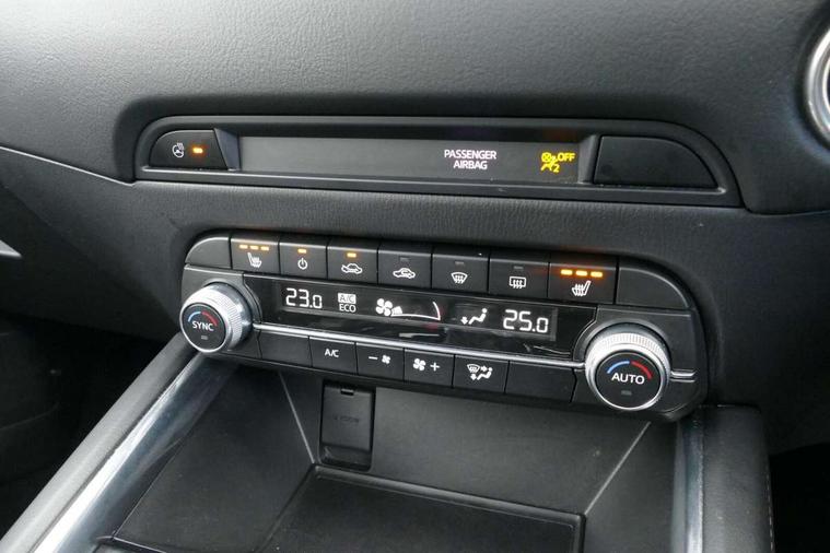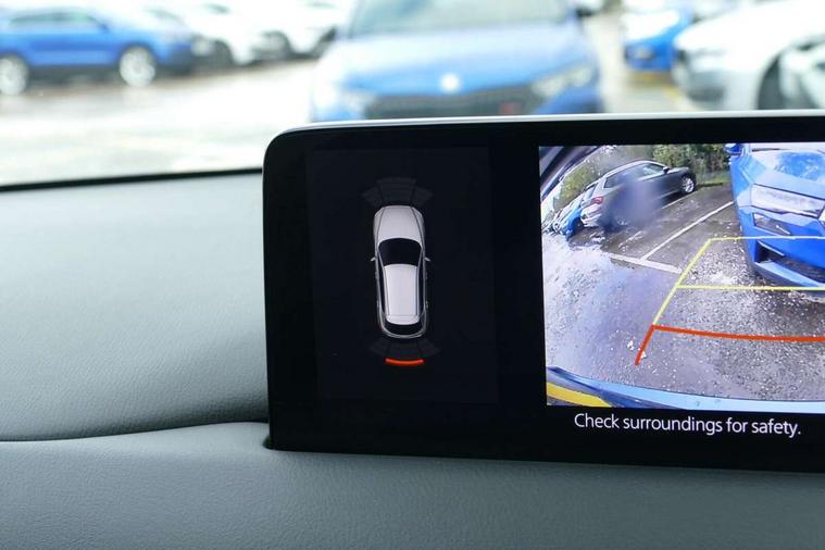 10.25" display with Mazda Connect infotainment, 7" colour TFT display, Advanced blind spot monitoring, Apple car play/Android Auto, Bluetooth connectivity with voice control, Collision prevention assist, Connected services, Cruising Traffic Support, Drive mode selector, Electric power steering, Emergency stop signalling system, Engine start/stop button, Forward collision warning, Front and rear parking sensors, Integrated navigation system, Intelligent speed assist, Lane departure warning system, Lane keep assist, Radar cruise control with Stop and Go, Reversing camera, Service indicator, Traffic sign recognition (TSR), Trip computer, Windscreen projected colour active driving display (HUD) with memory, i-stop, 2 USB sockets in rear, 2x USB sockets in front, 6 speakers, AM/FM radio, Bluetooth audio streaming, DAB Digital radio, Multimedia Commander including separate volume dial, Steering wheel mounted audio controls, Adaptive front lighting system, Auto dimming rear view mirror, Automatic headlights, Black inlay dashboard panel, Body colour door mirrors, Body colour roof spoiler, Body coloured front and rear black lower bumper mouldings, Bright finish signature wing, Coming/leaving home lighting function, Door mirror integrated indicators, Dual chrome tailpipes, Dusk sensitive headlamps, Electric front/rear windows with one touch auto up/down, Front grille in gloss black finish, Gloss black B and C pillars garnish, High beam assist, Intermittent rear wash/wipe, LED auto levelling, LED daytime running lights, LED front fog lights, LED Headlights, LED third brake light, Power folding and heated door mirrors, Power tilt/slide sunroof, Privacy glass (rear side windows only), Rain sensing front wipers, Rear side wing doors, Satin black side mouldings, Scuff plates, Shark fin antenna, Signature LED rear combination lights, Vinyl with wood grain metal inlay door trim panel, Windscreen wiper de-icer, 12v electrical power outlet, 3 seat bench in 2nd row, 3 stage heated front seats, 40:20:40 Karakuri fold-flat seat system, 6 way electric adjustable passenger seat, 8 way electric driver seat with lumbar support + memory, Cargo room flat floor board with waterproof undertray, Driver seat power slide, recline and height adjustment, Driver, Front passenger and two rear grab handles with coat hooks, Driver/passenger front seatback pockets, Driver/passenger sunvisors + illuminated vanity mirrors (drivers with ticket holder), Dual zone climate control, Folding centre armrest with 2 cup holders, Front and rear door pockets, Front centre storage with two cupholders, Front passenger seat power slide, recline and height adjustment, Heated steering wheel, Humidity sensor, Illuminated glovebox, Interior dome light with integral spotlight, ISOFIX child seat anchorage points attached on outer rear seats, Karakuri tonneau cover, Leather upholstery, Leather wrapped steering wheel and gear knob, Light roof lining, Luggage compartment LED lighting, Luggage compartment power outlet, Paddle shifts, Rear air vents, Rear headrests, Rear seat recline, Roof mounted sunglasses holder, Single front passenger seat, Three height adjustable head restraints, Tilt/height adjustable steering wheel, White interior LED illumination lighting, 3 point front seatbelts with pre-tensioners, 3 rear 3 point seatbelts, ABS, Advanced Smart City Brake Support - SCBS, Child locks on rear doors, Driver and front passenger side airbags, DSTC-Dynamic Stability and Traction Control, Dual front airbags, Electronic brake force distribution, Electronic parking brake with auto hold, ESP, Front and rear curtain airbags, Front passenger airbag deactivation, G-Vectoring control, Hill hold assist, Seatbelt reminder front and rear, Single stage passenger airbags, Smart brake support with forward obstruction warning, Tyre pressure monitoring system, Automatic door locking when moving off, Deadlock, Immobiliser, Power door locks, Remote central locking, Smart keyless entry, Thatcham Cat.1 alarm, 19" diamond cut black alloy wheels, Tyre repair kit,