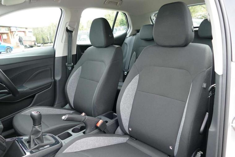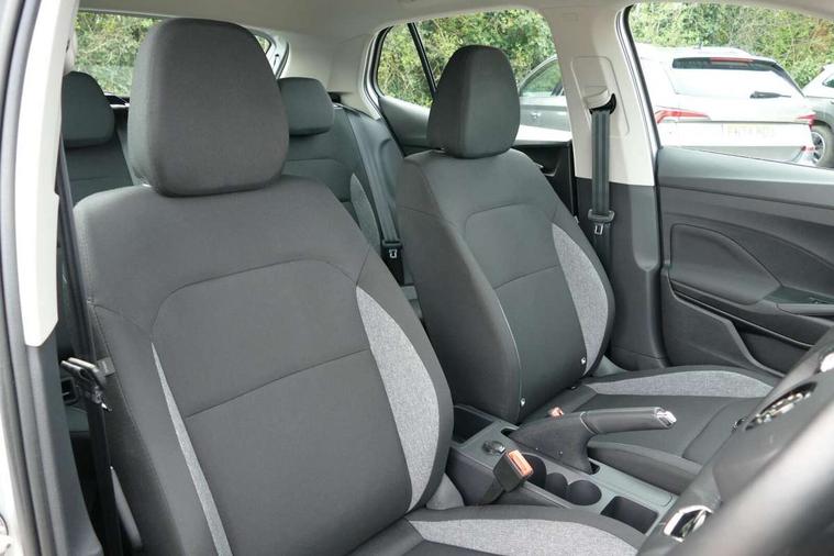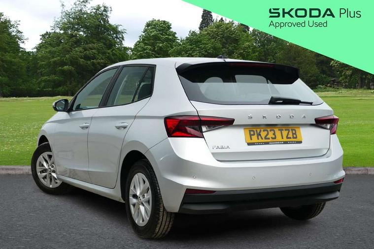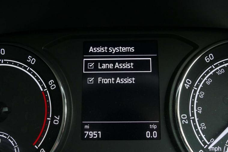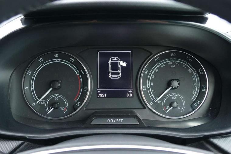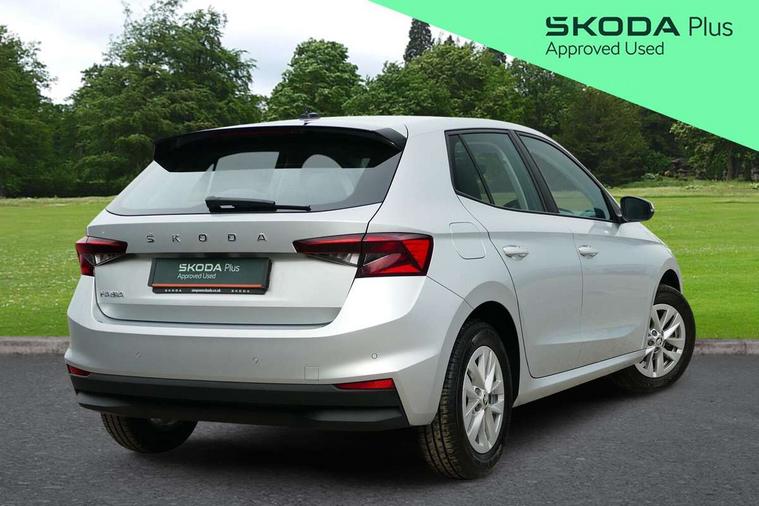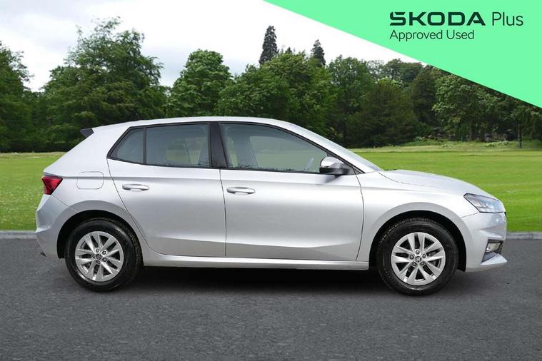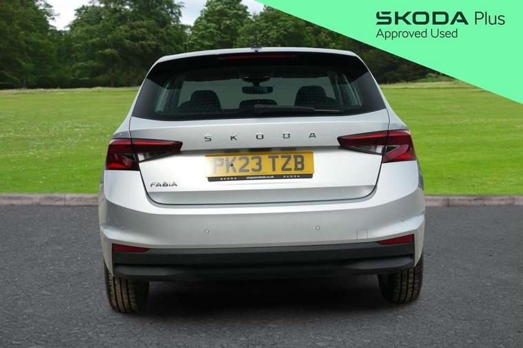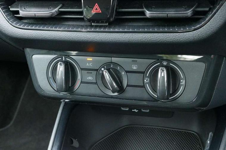 Bluetooth connection, Driver alert system - DAS, Electromechanical power steering, Exterior temperature gauge, Lane assist including road edge detection, Multifunction trip computer in black and white, Service interval indicator, Speed limiter, 2x USB-C in the front (for data transmission and charging), 4 speakers in front, Auxiliary socket for external MP3 player, DAB digital radio reception, Radio Swing with 6.5" colour display, Basic LED Headlights, Basic rear lights, Body colour door mirrors, Body coloured bumpers, Dimming rear view mirror with black frame, Door mirror integrated indicators, Electrically adjustable and heated door mirrors, Electrically adjustable front windows with function auto up/down, Front fog lights, Front window wiper intermittent control, Headlight range control - Automatic, Ice scraper in fuel cap, LED daytime running lights with coming and leaving home feature, Mechanical adjustable rear windows, Rain sensor, Rear LED fog light, Rear side wing doors, Rear window wiper with washing nozzles, Roof mounted spoiler, SKODA tailgate lettering in chrome, Third brake light, 2 reading lights in front and 2 reading lights in rear, 2 spoke leather multifunction steering wheel, 3 rear headrests, Backrest split and folding, Central console with fixed cup holder and storage box, Chrome handbrake release button, Fabric upholstery, Gearshift knob/handle in leather, Grain satin black interior door handles, Hand brake lever handle in leather, Height adjustable front headrests, Height adjustable front seats, Height adjustable steering wheel, ISOFIX and TopTether anchorage points to the outer rear seats, ISOFIX and TopTether on the front passenger seat, Luggage compartment lighting, Manual air conditioning, Manually adjustable lumbar support in front seats, Pollen filter, Rear seat bench unsplit, Single front passenger seat, Storm grey headlining, Sun visors with mirror and airbag label on passenger side, Ticket holder, 3-point height adjustable front seats belts with pretensioner and force limiter, Automatic warning lights in case of crash, Driver and passengers airbag with switch off function, e-Call+, ESC including ABS, MSR, ASR, EDS, HBA and XDS, Front and rear seat belt warning, FRONT ASSIST (AEB City and AEB Inter Urban), Front side airbags, Head airbags, One tone horn, Pedestrian protection, Three rear 3-points safety seat belts with pretensioner and force limiter including stop function for outer rear seat belts, Tyre pressure monitoring system, Anti-theft alarm system including immobiliser, interior monitoring, backup horn, and towing protection, Central locking with radio remote control, interior controls, SAFE function and 2 foldable keys, Black painted air vents, Glossy black decorative trim, Grain satin black central console cover, Grain satin black lower decorative trim, Satin black door and side trim panel in front, Anti-theft wheel bolts protection, Super-low rolling resistance tyres,