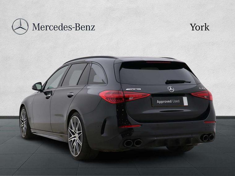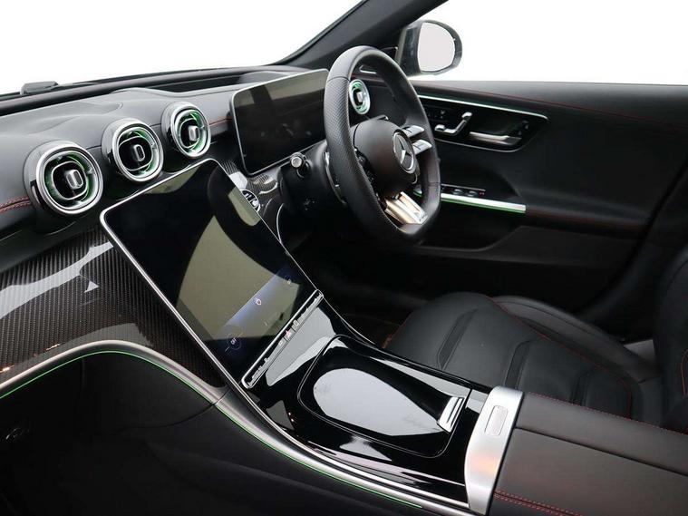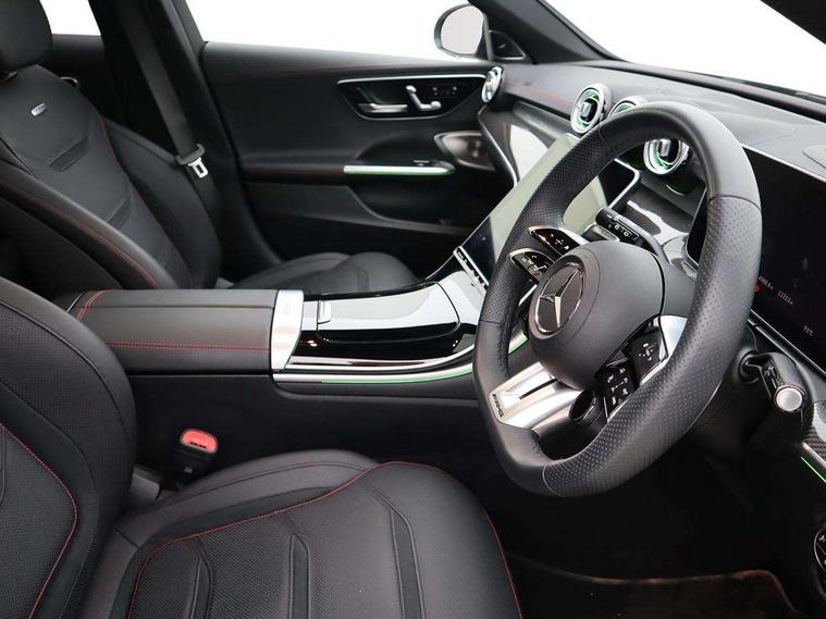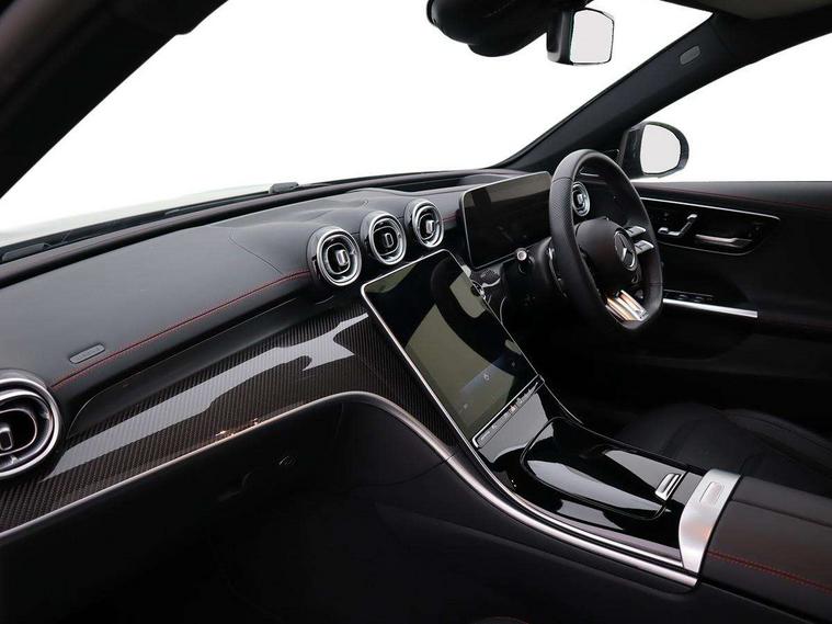 11.9" high resolution multimedia colour display, 12.3" digital instrument cluster display, Active parking assist with PARKTRONIC, AMG DYNAMIC SELECT with a choice of driving modes (Slippery, Comfort, Sport, Sport+, Individual), Attention assist, E-call, Extended MBUX functions, Finger print sensor, Fluorescent jacket for driver, Hard disc navigation, Head up Display, MBUX augmented reality for navigation, MBUX navigation premium, Mercedes me remote services, Outside temperature gauge, Rear axle steering, Service indicator (ASSYST), Smartphone integration, Sports direct steer speed sensitive steering, Status display for rear seat belts in instrument cluster, Tailgate, Traffic sign assist, Wireless charging system for mobile devices, 9G TRONIC 9 speed automatic transmission, AMG Ride Control suspension, Petrol Particulate Filter, Suspension with adaptive damping system, Burmester 3D surround sound system, DAB Digital radio, MBUX multimedia system, Adaptive brake lights, Adaptive high beam assist plus, AMG body styling front apron, rear apron and side skirts, AMG fuel cap, AMG illuminated door sills with AMG lettering and with exchangeable cover, AMG lip spoiler, AMG Real Performance Sound, Black roof rails, Body coloured bumpers, Digital light LED headlamps, Electric panoramic glass sunroof, Electric windows with one touch opening/closing and obstruction sensors, Electrically adjustable and heated door mirrors, Flared wheel arches, Heat insulating dark tinted glass, LED daytime running lights, LED Indicators, LED tail lights, LED third brake light, Mercedes AMG exterior, Noise acoustic glass, Rain sensor with automatic windscreen wiper activation, Rear side wing doors, Rear wiper, 3 seat bench in 2nd row, 40:20:40 split folding rear bench seat, Ambient lighting premium, Ambient lighting with projection of brand logo, AMG floor mats, AMG Performance steering wheel in nappa leather, AMG steering wheel buttons, Auto Mercedes-Benz child seat recognition sensor, Black roof liner, Double cupholder in centre console, Electrically height/reach adjustable steering column, Folding rear seat backrest, Front and rear head restraints, Gearshift paddles on steering wheel, Heated front seats, Illuminated glove compartment stowage, Load compartment cover, Mercedes AMG interior, Rear top tether child seat ISOFIX attachment, Single front passenger seat, Sports seats, Sunvisors with illuminated vanity mirrors, THERMATIC 2 zone automatic climate control, AMG exterior night pack - C Class, Boot comfort package - C Class, Easy pack tailgate - C Class, Interior light package - C Class, Keyless go comfort package - C Class, Memory package - C Class, Mirror package - C Class, Parking package with 360 degree camera - C Class, Stowage space pack - C Class, USB package plus - C Class, 3 rear 3 point seatbelts, Active bonnet pedestrian safety measure which detects an impact and raises bonnet, Adaptive brake system with HOLD function and brake drying in the wet, AMG high performance braking system, Anti-lock braking system (ABS), Child proof door locks, Drivers knee airbag, Drivers pelvis airbag, Dual stage driver/passenger airbags, Electric parking brake, Electronic Stability Programme (ESP), Front centre airbag between driver and front passenger seats, Front side airbags, Silver brake callipers, Tyre pressure monitoring system, Warning triangle and first aid kit, Window airbags for driver, front passenger and rear passenger, Antitheft alarm system, Interior monitoring system and Increased antitheft protection, Central locking with interior switch, automatic locking and crash sensor with emergency opening function, Chrome surround in electric key, Dashcam, Urban guard vehicle protection plus, Carbon fibre trim with centre console in high gloss black, Dashboard, instrument panel and beltlines in ARTICO man made leather in nappa look, 20" AMG 10 twin spoke light alloy wheels aerodynamically optimised in tanatalite grey with high sheen finish, TIREFIT with tyre inflation compressor,