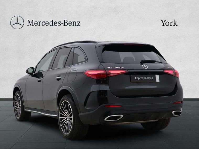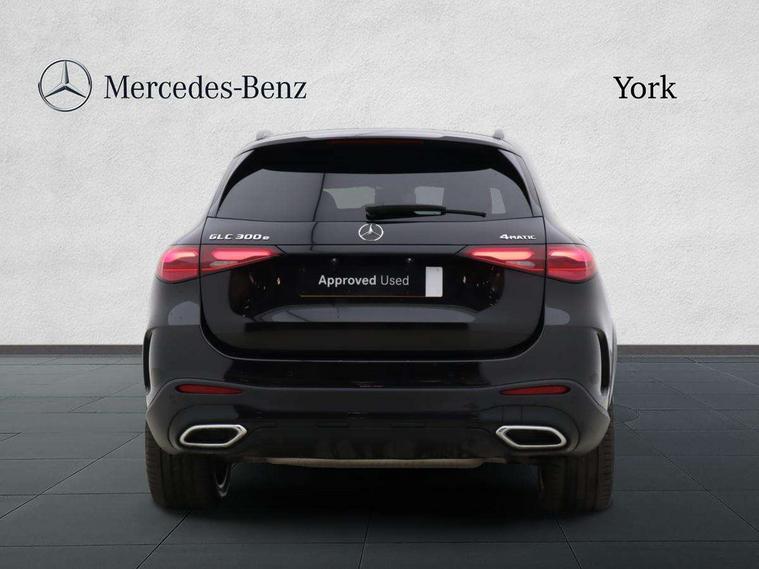 11.9" high resolution multimedia colour display, 12.3" Digital individually configurable instrument display, Acoustic presence indicator, Active lane keeping assist, Attention assist, Blind spot assist, Bluetooth interface for hands free telephone, Collision prevention assist plus, Direct steer speed sensitive steering, DYNAMIC SELECT with a choice of driving modes (ECO, Comfort, Sport and Individual), eCall emergency call system, ECO start/stop function, Fingerprint scanner, Fluorescent jacket for driver, Hard disc navigation, Head up Display, Instrument display in miles with English lettering, MBUX augmented reality for navigation, MBUX navigation premium, MBUX voice control activated by keywords "Hey Mercedes", Mercedes me connect, Multi function trip computer, Outside temperature display, Remote and charging services plus, Remote boot release, Road sign recognition system, Service indicator (ASSYST), Smartphone integration, Status display for rear seat belts in instrument cluster, Tailgate, Traffic sign assist, Wireless charging system for mobile devices in the front, 1 x type 2 and 3 phase 4m straight wallbox cable, 49 litre fuel tank, 4MATIC permanent four wheel drive, 7.4 kW monophase on board charger, 9G TRONIC plus automatic transmission, Alternating current charging system (AC charging), DC Charging system, Petrol Particulate Filter (PPF), Residual engine heat utilisation, Self levelling suspension, Burmester 3D surround sound system, DAB digital radio tuner, MBUX extended functions, Pre installation for Mercedes Benz Link, Sound personalisation, Adaptive brake lights, Adaptive high beam assist plus, Aluminium look running boards with rubber studs, AMG bodystyling front apron, rear apron and side skirts, AMG Line exterior, Auto headlights, Black roof rails, Body colour bumpers, Body colour door mirrors, Digital light LED headlights, Electric panoramic glass sunroof, Electrically adjustable door mirrors, EQ Hybrid badging on front wings, Front and rear electric windows, Headlight washers, Heat and noise insulating acoustic glass, Heat insulating dark tinted glass, Heated rear window, High level LED brake light, Integrated LED daytime running lights, LED indicator lights, LED rear fog lights, LED tail lamp, Motor way mode function and locator lighting, Radiator grille with Mercedes Benz pattern and integreated Mercedes star and louvre in dark grey matt with chrome inlay and black frame, Rain sensor windscreen wipers, Range adjustable headlights, Rear side wing doors, Rear wiper, Transparent Bonnet, Two chrome plated tailpipe trim elements, Variable front intermittent wipers, Welcome and follow-me home light functionality, Wheel arch liners in the vehicle colour, 3 seat bench in 2nd row, 40:20:40 split folding rear seats, Ambient lighting premium with projection of brand logo, AMG floor mats, AMG line interior, Artico man-made leather upholstery, Audio and onboard settings control on multifunction steering wheel, Automatic child seat recognition sensor, Black fabric roof lining, Comfort seats, Double cup holder in centre console, Easy-pack removable load compartment cover, Electrically height/reach adjustable steering column, Front centre armrest with stowage compartment, Front head restraints, Galvanised steering wheel gearshift paddles, Heated front seats, Heated steering wheel, Illuminated door sill panels with Mercedes Benz lettering, Illuminated glove compartment, Instrument panel and beltlines in ARTICO manmade leather in nappa look, Multicontour and climatised front seats, Multifunction sports steering wheel in nappa leather, Partition net, Rear centre headrest, Rear head restraints, Rear top tether child seat ISOFIX attachment, Single front passenger seat, Sports pedals with stainless steel surfaces and rubber studs, Sun visors, THERMATIC automatic climate control, Anti theft protection package - GLC, Boot comfort package - GLC, Easy tailgate pack - GLC, Exterior chrome package - GLC, Interior chrome package - GLC, Interior lighting pack - GLC, Keyless-Go comfort package - GLC, Memory pack - GLC, Mirror pack - GLC, Night package - GLC Urban Edition, Parking package with 360 degree camera - GLC, Stowage space package - GLC 300e/300de, USB Plus Pack - GLC, 3 rear 3 point seatbelts, Anti-lock braking system (ABS), ASR traction control, Automatic front passenger airbag deactivation, Black seat belts, Brake calipers with Mercedes-Benz lettering + perforated brake discs, Child proof door locks, Dual-stage airbags - driver and front passenger, driver knee bag and window bags for driver, front passenger and rear passengers, Electronic parking brake, Electronic stability programme (ESP) with curve dynamic assist and cross wind assist, Front and rear seatbelt reminder, Front passenger seat occupancy sensor, Front seatbelt pretensioners, Hill start assist, Tyre pressure monitoring system, Warning triangle and first aid kit, Automatic door locking, Guard 360 degree vehicle protection plus, Interior protection/immobiliser, Remote central locking, Black open pore aluminium lines wood trim with centre console in black fine structure, 20" AMG multi spoke light alloy wheels in painted black with high sheen finish, Summer tyres, TIREFIT with tyre inflation compressor,