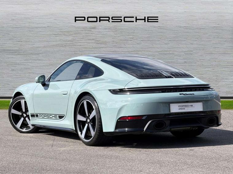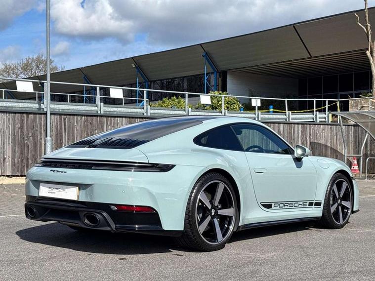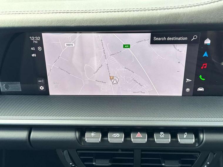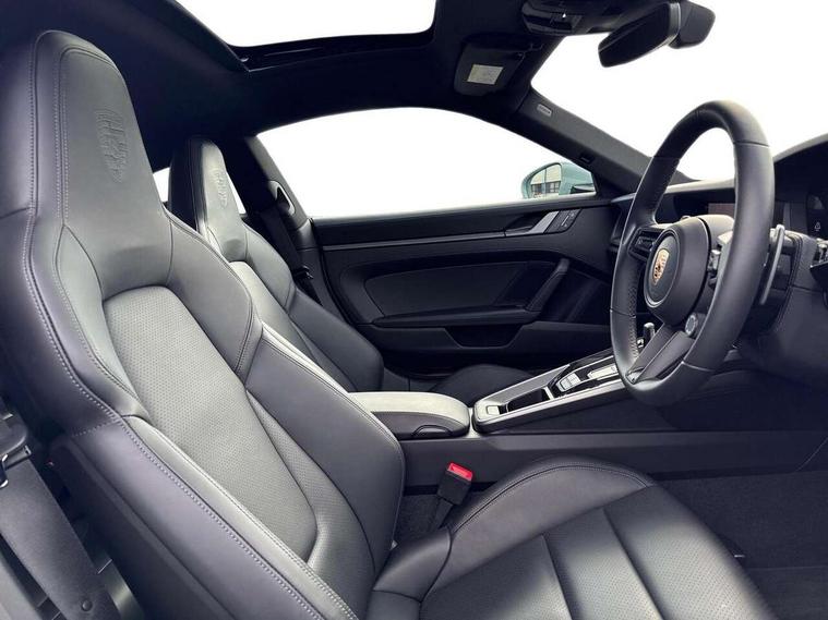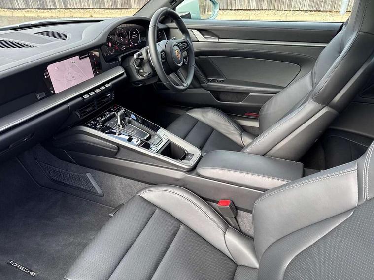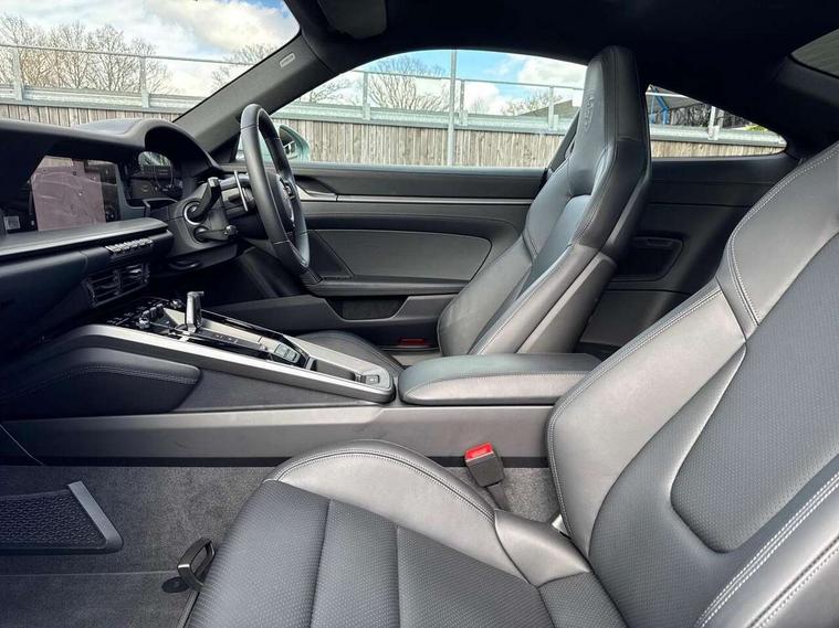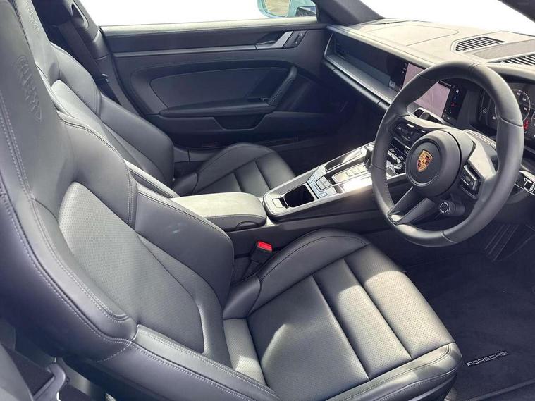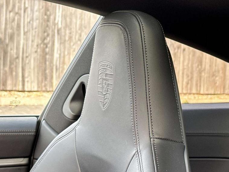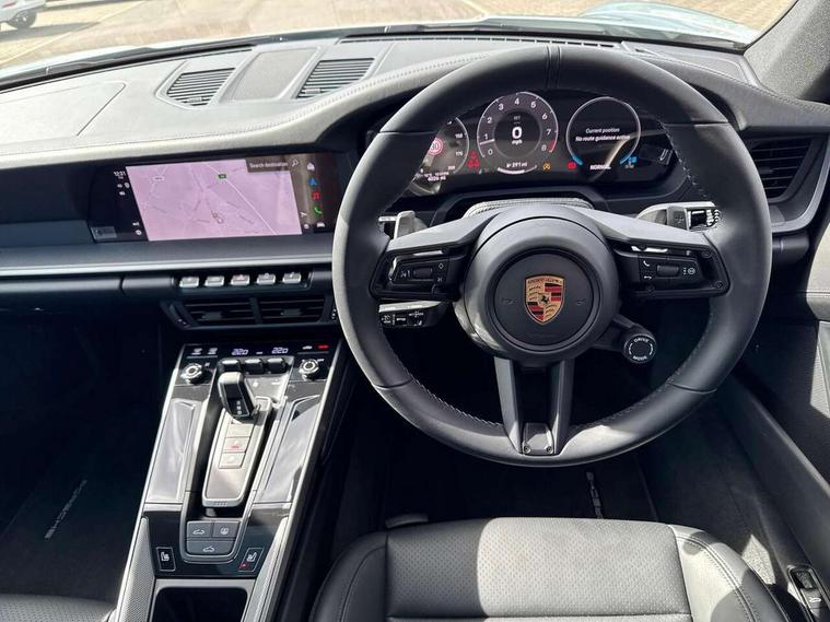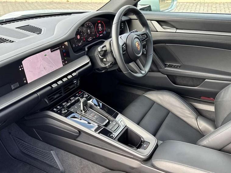 Apple CarPlay, Automatic start/stop system, Driver awareness detection, Emergency call systems eCall and bCall, Gear indicator in rev counter, Lane keep assist, Navigation High, Smartphone compartment with wireless charging up to 15 W, Sports and WET Mode, Stationary management with HOLD function, Traffic sign recognition, Voice control, Warn and brake assist including pedestrian protection, 3.0 liters 6-cylinder boxer engine with twin-turbo, 63 litre fuel tank, 8 Speed Porsche Doppelkupplung (PDK), Porsche Active Suspension Management (PASM), Rear wheel drive, Two gasoline particulate filter, DAB Digital radio, 3rd brake light, Automatic headlight activation including welcome home lighting, Automatically dimming interior and exterior mirrors with integrated rain sensor, Badge on air intake grille, Door handles painted in exterior colour, Electric folding door mirrors with courtesy lights, Fuel/charging cover, Heated rear windscreen, LED daytime running lights, Model designation on rear trim in Light silver, Rear boot, Rear diffusor in louvered design, Rear lid grille with vertical slats in high gloss black, Trim on side skirts in black, Windscreen washer system with aero wiper blades and washer jets, 2-seater with rear engine layout, Delete quilting, Deletion of model logo embossed on headrests, Driver and front passenger illuminated vanity mirrors, Front head restraints, Heated front seats, ISOFIX fastening system, Leather door panel and central armrests, LED footwell lights, LED glove compartment lighting, LED ignition light, LED luggage compartment lighting, LED orientation light, LED reading lights, Lockable glove compartment, Particle/pollen filter with active carbon filter, Single front passenger seat, Steering wheel with manual fore/aft and height adjustment, Two zone auto climate control, USB-C fast charging, Light design package - 911, Sound pack plus - 911, 3 point automatic seatbelts, Airbags, Brake system with brake calipers in black, Electric parking brake, Passenger airbag deactivation, Pedestrian safety, Seat belt warning system for driver and front passenger and rear seat system, Seatbelt pretensioners, Tyre pressure monitoring system, Warning triangle, Alarm system with interior surveillance, Alcohol interlock preparation, Anti-theft wheel bolts, Comfort access system, Keyless drive, Porsche vehicle tracking system (PVTS Plus), Preparation for Porsche Dashcam, TPM valve in silver, Tyre sealing compound and electric air compressor kit,