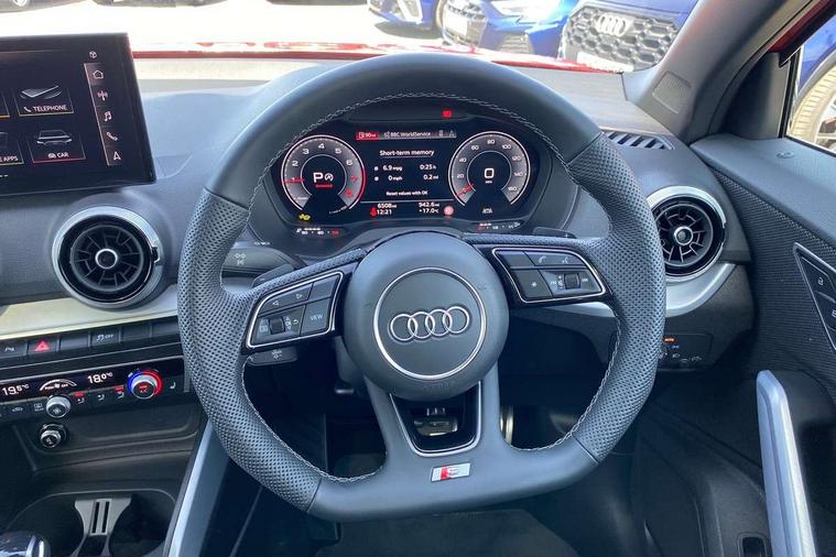 3D map display, Audi connect navigation and infotainment includes innovative services, Audi connect remote and control connects your vehicle to your smartphone, Audi drive select: S tronic - power steering assistance + engine + gearshift (modes: comfort, auto, dynamic, efficiency, individual), Audi smartphone interface - Apple carplay/Android Auto, USB connect, 2xSDXC card readers, voice control for navi, telephone, music and 3rd party apps, Audi virtual cockpit, Automatic start/stop system with recuperation, Bluetooth interface includes bluetooth audio streaming, Camera based traffic sign recognition, Cruise control, Distraction and Fatigue warning, E-call, Jukebox hard drive memory for music (10GB), Lane departure warning, MMI navigation plus with 8.8" touchscreen, Natural voice recognition, Power operated tailgate, Progressive steering, Rear parking sensors, Sport suspension, 6 passive loudspeakers, DAB Digital radio, USB type C port, Audi beam, Auto dimming rear view mirror, Black window trims, Bumper in full body colour paint finish, Electrically adjustable, folding, auto dimming and heated door mirrors with integrated LED side indicators, Front windscreen with grey tinted sunband, LED daytime running lights, LED headlights with dipped beam, high beam, position lights, indicators, LED rear lights, LED third brake light, Privacy glass - dark tinted rear and rear side windows from B-pillar backwards, Rear side wing doors, Rear wiper, Variable front intermittent wipers, Wheel arch trims in manhattan grey, 12V socket in front, 3 seat bench in 2nd row, 3 spoke flat bottomed multi-function leather sport steering wheel with gear shift paddles, 4-way electric lumbar support for front seats including manual seat height adjustment for both front seats, 60/40 split folding rear seat bench, Black carpets, Black cloth headlining, Front and rear head restraints, Front centre armrest, Front sport seats, Front/rear floor mats, Height/reach adjust steering wheel, Illuminated door sill trims with S logo, ISOFIX child seat mounting in front passenger and rear outer seats, Manual air conditioning, Single front passenger seat, Stainless steel pedals, Black styling pack - Q2, 3x3 point rear seatbelts, 6 airbags - Front, curtain and front side airbags, Electromechanical parking brake, Electronic stabilisation control including ABS, ASR and EDL, Front passenger airbag deactivation, Hill hold assist, Pre-sense front with pedestrian recognition, Seatbelt monitoring, Tyre pressure warning light with visual and acoustic warning, Warning triangle and first aid kit, Anti theft wheel bolts, Electronically operated child locks, Remote central door locking, Thatcham category 1 alarm, Aluminium interior element, Black dashboard, Gloss black centre console, Matt brushed aluminium trim inlays, Tool kit,