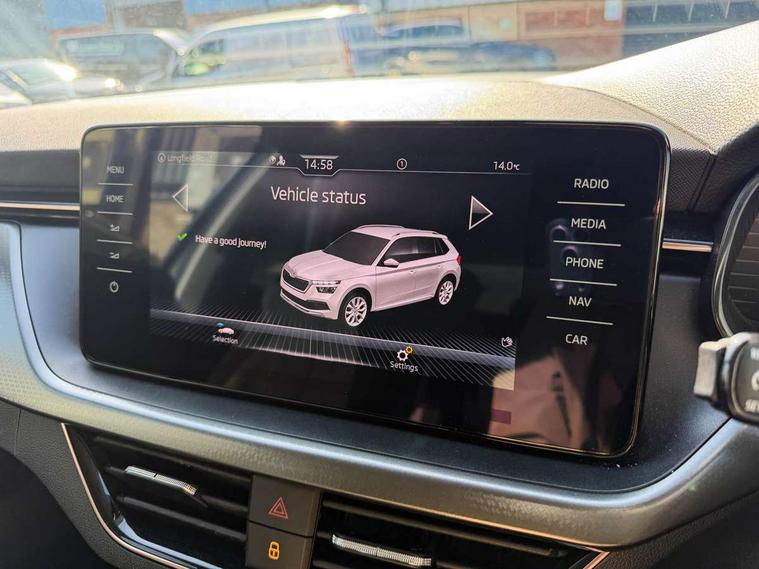Amundsen satellite navigation with 9.2" glass colour touchscreen display, web radio, voice control and traffic sign recognition, Bluetooth system, E-call, Front assist system, Gesture control, PAS, Rear view camera, Service indicator, Speed limiter, Wireless Smartlink for Apple CarPlay (wired for Android Auto), 8 Speakers, Auxiliary input socket, DAB Digital radio, Body colour bumpers, Body colour door mirrors and handles, Chrome grille surround, Dimming rear view mirror with black surround, Electric folding door mirrors, Electrically adjustable and heated door mirrors, Front and rear electric windows, Headlight range control, Heated rear window, LED rear lights with dynamic indicators, LED third brake light, Light sensors, Privacy glass, Rain sensor, Rear fog lights, Rear side wing doors, Rear wiper, 12V Accessory socket in centre console, 3 seat bench in 2nd row, Chrome inner door handles, Dual zone climate control, Front head restraints, Glove compartment with illumination, Ice scraper, Isofix child seat fittings on outer rear seats, ISOFIX on front passenger seat, Manual lumbar support for front seats, Rake/reach adjustable steering wheel, Reading lights, Single front passenger seat, Sun visors with illumination on front passenger, Textile floor mats, Third rear headrest, Top tether for front passenger seat, Umbrella in driver's door, 3x3 point rear seatbelts, Airbags - driver and front passenger, ESP, Front passenger airbag deactivation switch, Front side airbags with curtain airbags, Hill hold control, Manual parking brake, Manual rear child locks, One tone horn, Rear disc brakes, Seatbelt reminder for driver an co-driver, Traction control, Tyre pressure monitor, Anti-theft alarm system with interior monitoring, backup horn, towing protection and remote central locking with SAFE system, Anti-theft wheel bolts, Electronic engine immobilizer, Latice curved decorative insert on the dashboard with hot stamping in copper and white ambient lighting white,