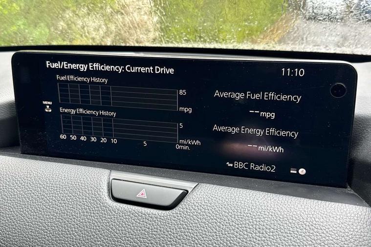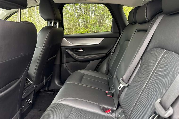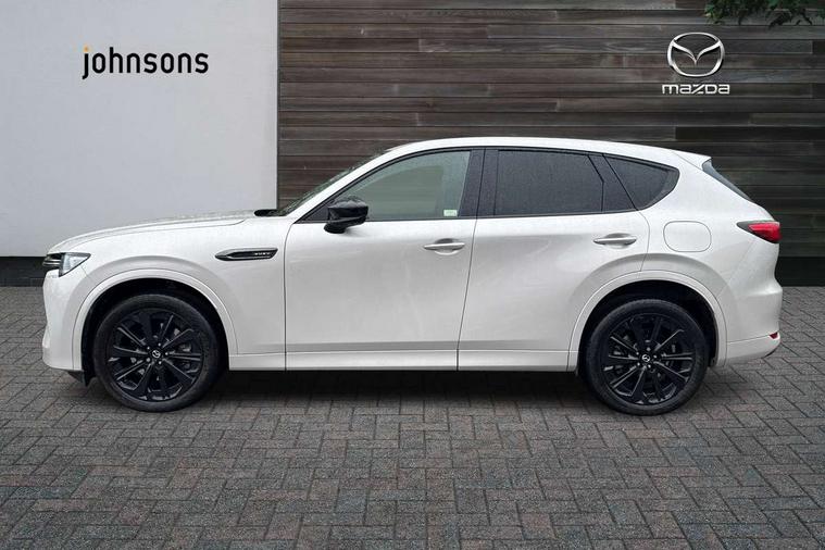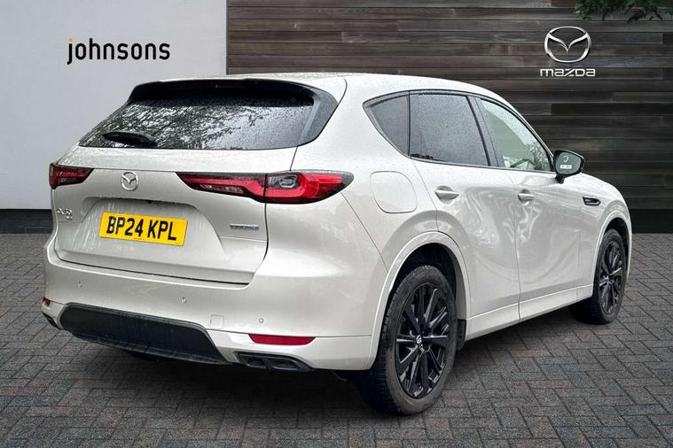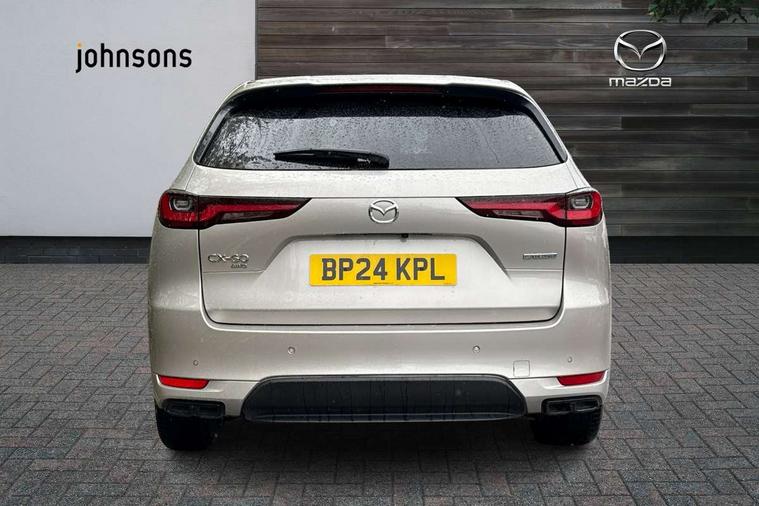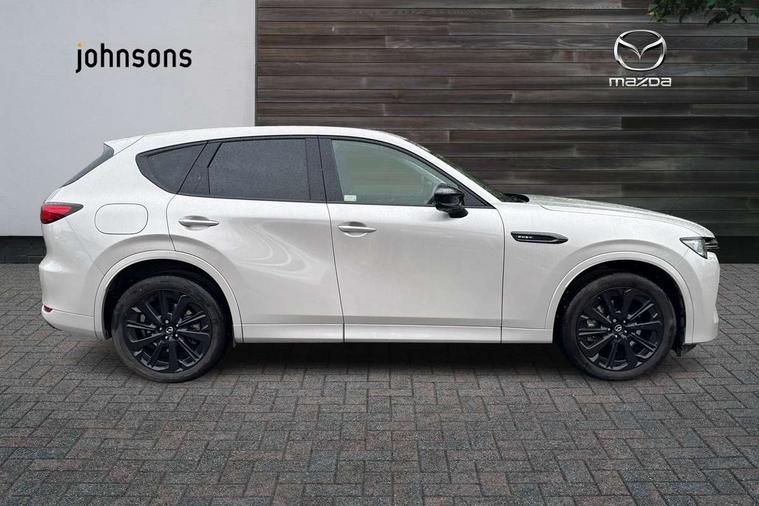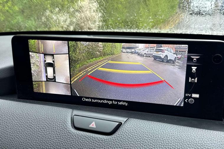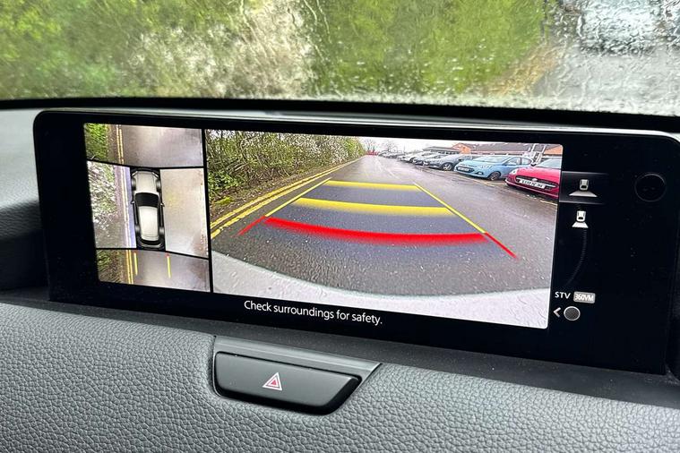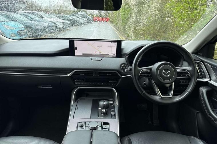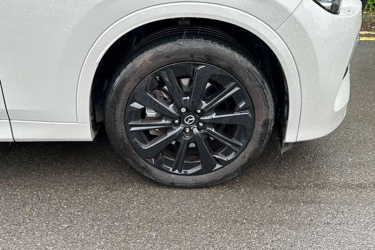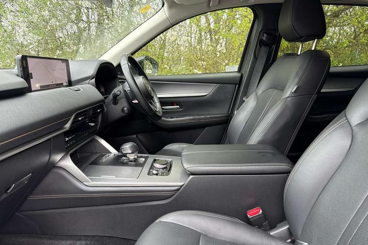 Emergency lane keeping with blind spot assist, Low washer fluid warning light, 12.3" Colour entertainment centre display with mazda connect infotainment, 12.3" TFT Colour display, Adjustable speed limiter, Blind spot assist, Blind spot monitoring with rear cross traffic alert, Cruise control, Distance alert system, Driver attention alert system, Driver Monitoring with personal identification, E-call with GPS, Emergency stop signalling system, Exit warning function, Front and rear parking sensors, Ingress / Egress support and automatic driver position guide, Integrated bluetooth, Intelligent speed assist, Kinematic posture control, Lane keep assist system (LAS) with Lane departure warning system (LDWS), Mazda Driver Personalisation System, Mazda Navigation System with european mapping, Multimedia Commander, PAS, Power lift gate with handsfree function, Power start/stop button, Reversing camera with static guide lines, Speed alert, Traffic sign recognition enhanced with mandated excessive speed warning, Trip computer, Windscreen projected colour active driving display, Wireless apple car play/android Auto, Type 2 Mode 2 cable for AC charging via UK 3-pin plug, 7.2 kw On board Charger, Mi-Drive (Normal, Sport, Off-road, Towing and EV mode), Type 2 Mode 3 cable for AC charging via home or public charge points, AM/FM and DAB radio, Bose surround sound system with 12 Speaker, Bose center point, Bass match and audio pilot technology, Steering wheel mounted audio/bluetooth controls, USB-C inputs (x2 front and x2 rear), Auto dimming driver's door mirror, Automatic headlight levelling, B-pillar and C-pillar garnishes in gloss black finish, Body colour roof spoiler, Body coloured bumpers, Body coloured wheel arch and side mouldings, Coming/leaving home lighting function, Dark plated headlight lense, Dark plating finish signature wing in front grille, Dark plating front side garnish, Differentiated front bumper design to accentuate the intake, Dusk sensing headlights, Electric front/rear windows with one touch auto up/down, Electrically adjustable, heated auto power folding door mirrors with memory, Frameless auto dimming interior rear view mirror, Front kodo turn signal, Front wiper de-icer, Gloss black door mirrors, Headlight washers, High beam control, Honeycomb radiator grille in piano black, LED 3rd brake light, LED headlamps, LED rear signature combination lamps, Rain sensing front wipers with adjustable sensitivity and speed, Rear side wing doors, Rear wiper, Roof pillars and roof lining finished in lighter colour to soften the overall look, Signature LED daytime running lights, Silver decoration panel, 12v power outlet - front, 12V socket in boot, 3 height adjustable rear headrests, 3 seat bench in 2nd row, 40/20/40 split folding rear seats with quick levers in the boot, Ambient lighting, Cargo net, Chrome interior trim accents with steering wheel centre bezel, surround of engine start / stop button and glove box handle, Door panel trim vinyl leather with armrest, Driver and front passenger two rear grab handles with rear coat hooks, Driver and front passenger visors with covered vanity mirror and driver ticket holder, Driver seat electric tilt, slide, recline, height and lumbar adjustment, Driver, front passenger and two rear door pockets, Driver/passenger front seatback pockets, Dual zone climate control air conditioning with rear air vents, Electric telescopic and tilt adjustment steering wheel, Featuring black vinyl leather dashboard trim with titanium coloured accents, Folding rear centre armrest with two cup holders, Front centre storage with two cupholders, Front down lamp with front and rear foot lamps, Front headrests, Front passengers seat electric slide, recline, height and lumbar adjustment, Front seat ventilation with 3-stage setting, Glovebox illumination, Heated front seats with 3 stage setting, Heated leather wrapped steering wheel, Heated outer rear seats with 3-stage setting, ISOFIX child seat anchorage points attached on outer rear seats, Karakuri tonneau cover, Leather upholstery, Leather wrapped gear shift knob, LED illumination luggage compartment, Paddle shift, Practical and spacious front centre armrest storage, Rear seat recline function for rear passenger comfort, Remote fold down rear seats, Roof mounted sunglasses holder, Single front passenger seat, 3 point ELR front seat belts x2 with pretensioners, 3 point ELR rear seat belts, Active bonnet, Anti-lock braking system (ABS), Drivers knee airbag, DSC - Dynamic Stability Control, Electronic parking brake with auto disengage function and auto hold function, Front and rear curtain airbags, Front dual stage driver and single stage front passenger airbags, Front passenger airbag cut-off switch, Front side airbags, Front smart city brake support, Hill decent control, Hill launch assist, Manual rear child locks, Seatbelt reminder for driver/front passenger and rear seats, Traction control, Tyre pressure monitoring system (TPMS), Remote central locking with deadlocking and automatic door lock when driving, Smart keyless entry, Thatcham accredited alarm and immobiliser, Mesh metal film centre console panel, 20" Black metallic alloy wheels, Emergency tyre repair kit,