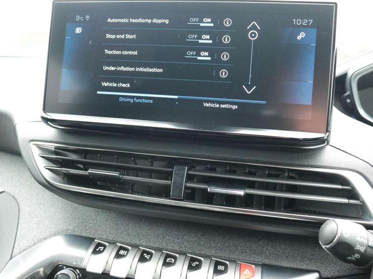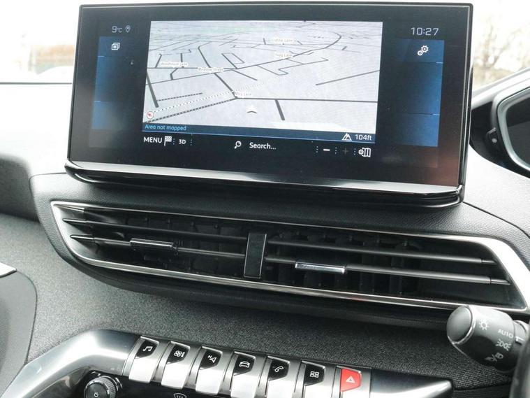 3D connected navigation with 10" HD touchscreen + voice recognition system, Apple car play and Android auto, Bluetooth telephone facility, Drive modes select (Eco, normal and sport), Driving Time Warning (DAA1), Emergency services call system, Extended traffic sign recognition, Exterior temperature indicator with ice warning, Front and rear parking sensors, Lane departure warning system, Mirror screen with mirror link, apple carplay and android auto, Multi function trip computer, Peugeot i-cockpit with compact multi-function sports steering wheel, PEUGEOT i-Cockpit with configurable 12.3" Head-up digital instrument panel, Speed limit recognition and recommendation, Dynamic stability control and electronic anti-skid system, Stop/start function, 6 speakers radio with mp3 compatible, DAB Digital radio, USB socket, Aluminium front door sills, Aluminium longitudinal roof bars, Automatic hazard light activation upon heavy brake application, Automatic triggered rear windscreen wiper in reverse gear, Black diamond roof, Black rubber side window trim, Black with chrome detailed front wing trim, Body colour door handles, Body colour rear roof spoiler with stainless steel edging trim, Body protectors (bottom of front and rear bumpers + wheel arches + protection at bottom of doors) in black, Chrome frameless 'Classic' grille, Chrome rear bumper facia, Dark tinted rear side windows + tailgate window, Diamond Black door mirror shells, Door mirror mounted LED courtesy floor lighting, Eco LED headlights, Electric folding door mirrors with exterior courtesy LED lighting, Electric operated/heated door mirrors, Front and rear door and sill protectors with polished stainless steel insert, Front bumper lower trim in Silver, Front windscreen wiper with magic wash cleaning system, Gloss black B and C pillar and aerodynamic deflector trim, Gloss black front bumper air scoops, Gloss black rear cluster connecting strip, Gloss black windscreen trim, Headlights left on audible warning, Heated rear windscreen with integrated antenna, LED daytime running lights, LED front indicator, LED rear number plate lighting, LED side indicator lights integrated into door mirrors, LED third brake light, One touch electric front/rear windows with pinch protection, Rear LED Peugeot signature 'Claw Effect' lights, Rear side wing doors, Stainless steel door sill scuff plates, Stainless steel roof arches, 1/3 to 2/3 split folding rear seats, 12V Sockets in dashboard, rear cabin and load area, 2 cupholders in front centre console, 2 cupholders in rear armrest, 2 x Rear reading spotlights, 2x Rear coat hooks, 3x Isofix child seat fittings in the front passenger and outer rear seats, 4 Grab handles retractable and damped, Aluminium pedals, Blue ambient lighting for connecting zone, Blue ambient lighting to front door panels, Blue ambient lighting to headup instrument panel, Brumeo fabric trimmed door armrests, Centre front armrest with butterfly wing opening and illuminated storage compartment, Driver seat lumbar adjustment, Driver seat manual adjustment (longitudinal and back rest angle), Dual zone automatic climate control, e-Toggle compact gear selector, Electric power steering with reach and rake adjustable steering column, Flocked glovebox interior, Foldable front passenger seat with picnic table, Footwell illumination, Front interior light with 2 reading spotlights and rear interior light with timer, Front passenger seat manual adjustment (longitudinal and back rest angle), Front seat back map pockets, Gear shift indicator, Height adjustable front seats, Illuminated glovebox, Individual left and right controls in boot for seat folding, Leather steering wheel with detail stitch, LED interior lighting in storage spaces and load area, LED roof interior lighting, Rear bench seat with central armrest and ski hatch, Rear centre console ventilation system, Roof lining - Mistral black, Satin chrome dashboard trim, Satin chrome digital instrument panel and touchscreen trim, Satin chrome front door panel recess trim, Satin chrome interior door handles, Satin chrome scorpion's tail and toggle switch trim, Seatbelt not fastened audible and visual alert for front seats, Seatbelt unfastened on the move audible and visual alert for front and rear seats, Sunvisors with illuminated vanity mirrors, Two position boot floor, Safety Plus Pack - 3008, Visibility pack - 3008, 3x Rear three-point retractable seatbelts with force limiters in the outer rear seats, ABS (Anti-lock Braking System) with EBD (Electronic Brakeforce Distribution) and EBA (Emergency Braking Assistance), Adaptive driver and front passenger airbags with passenger airbag deactivation function, Driver and front passenger side airbags, Electric child locking functionality on rear windows and doors, Electric parking brake, Front and rear curtain airbags, Front optimised safety headrests and 3 x rear retractable headrests with height adjustable, Front three point retractable seatbelts with pre tensioners and force limiters, Front ventilated disc brakes and rear disc brakes, Hill start assist, Two tone horn, Automatic door locking when moving off, Electronic immobiliser, key operated exterior door lock from the left hand door, Perimetric and volumetric alarm with lift and tilt sensor, Peugeot Open and Go System, Remote control central locking with two plip keys, Brumeo fabric Dashboard, front and rear door panel finish, Michelin e-primacy 225/55 R18 102V class A+ tyres, Puncture repair kit including compressor, sealant cartridge and towing eye,